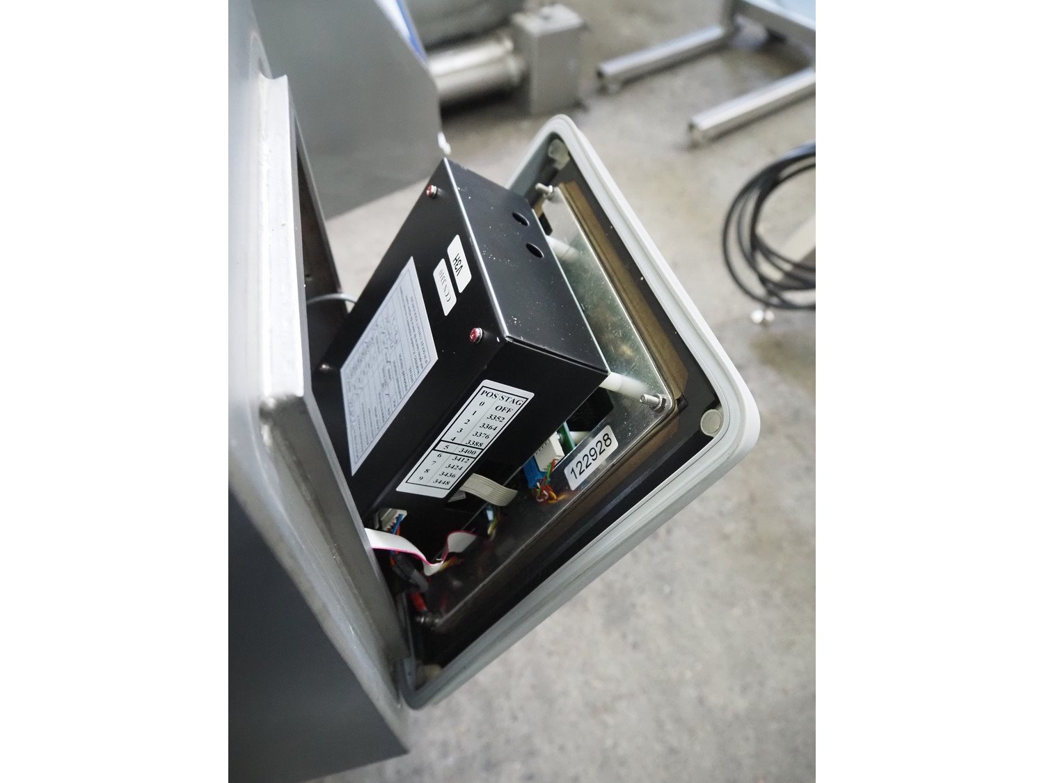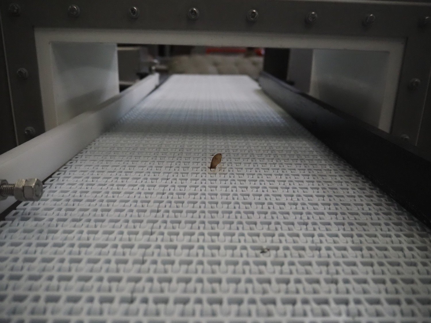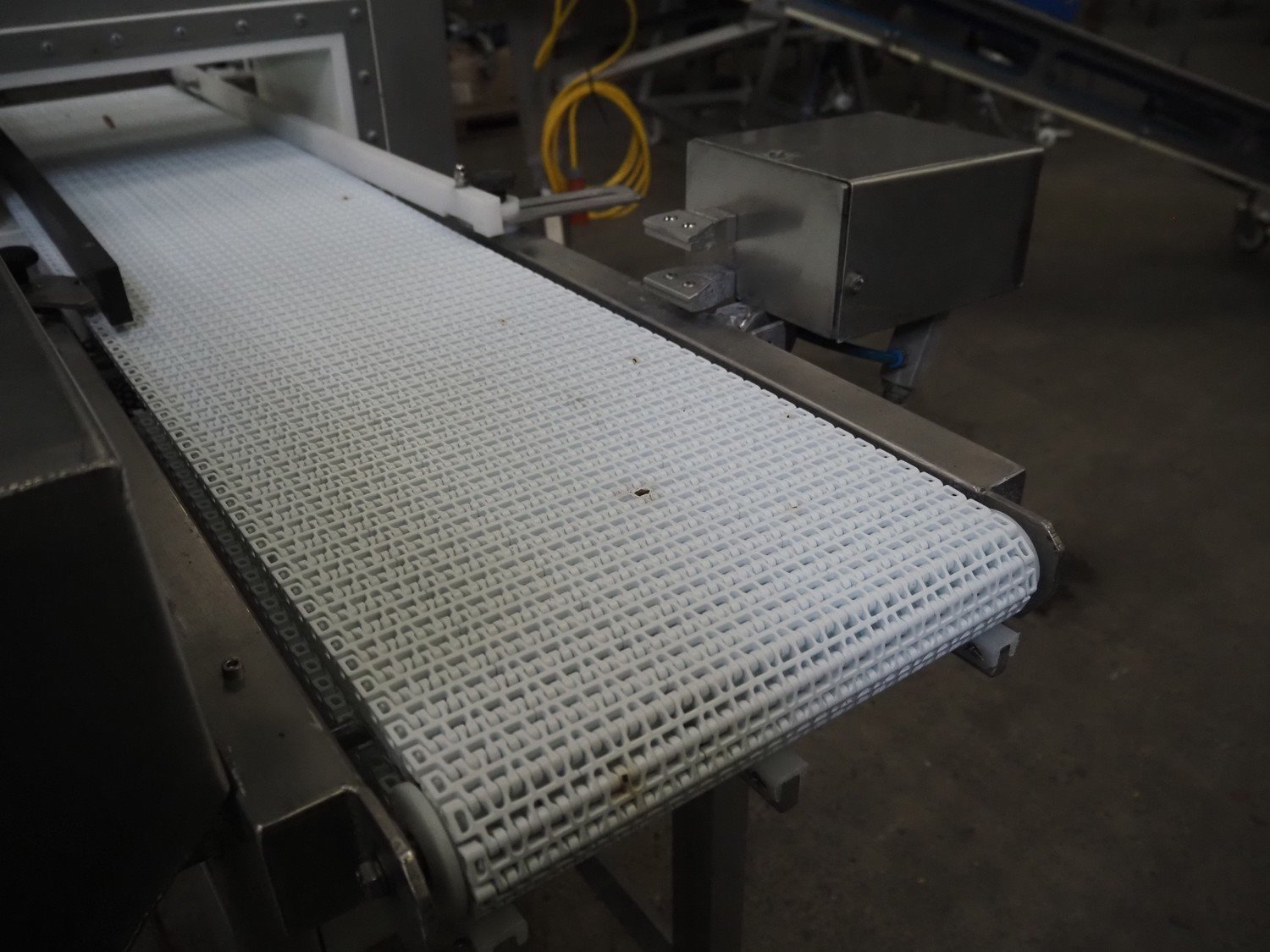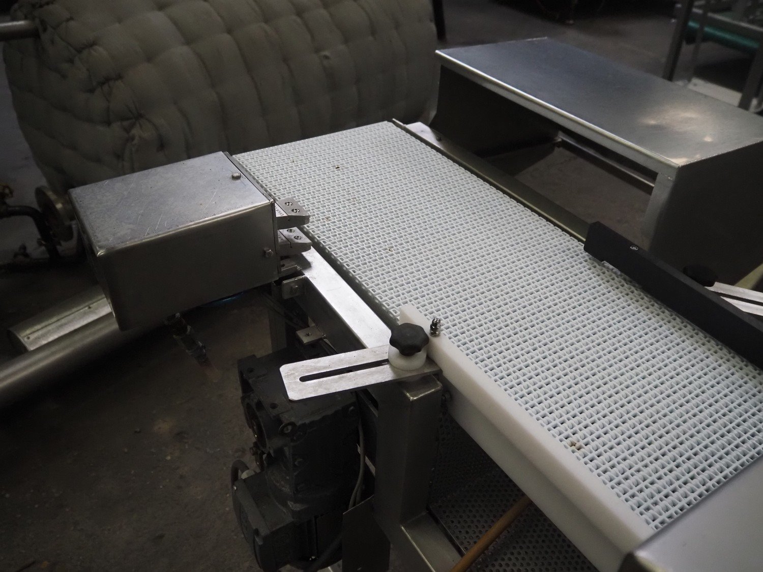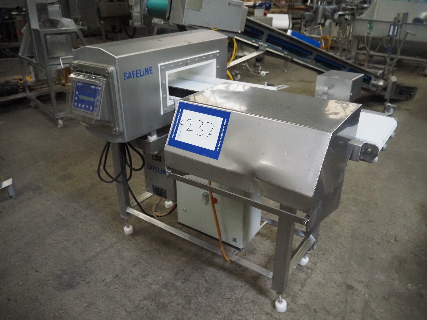 Safeline / Mettler Toledo metal detector with rejector, 100/240 V, 1 Ph, 50/60 Hz, 330 W, plastic mesh belt, belt width: 300 mm, clearance: 350 mm x 110 mm, total dimensions: 1600 mm x 1000 mm x 1170 mm.