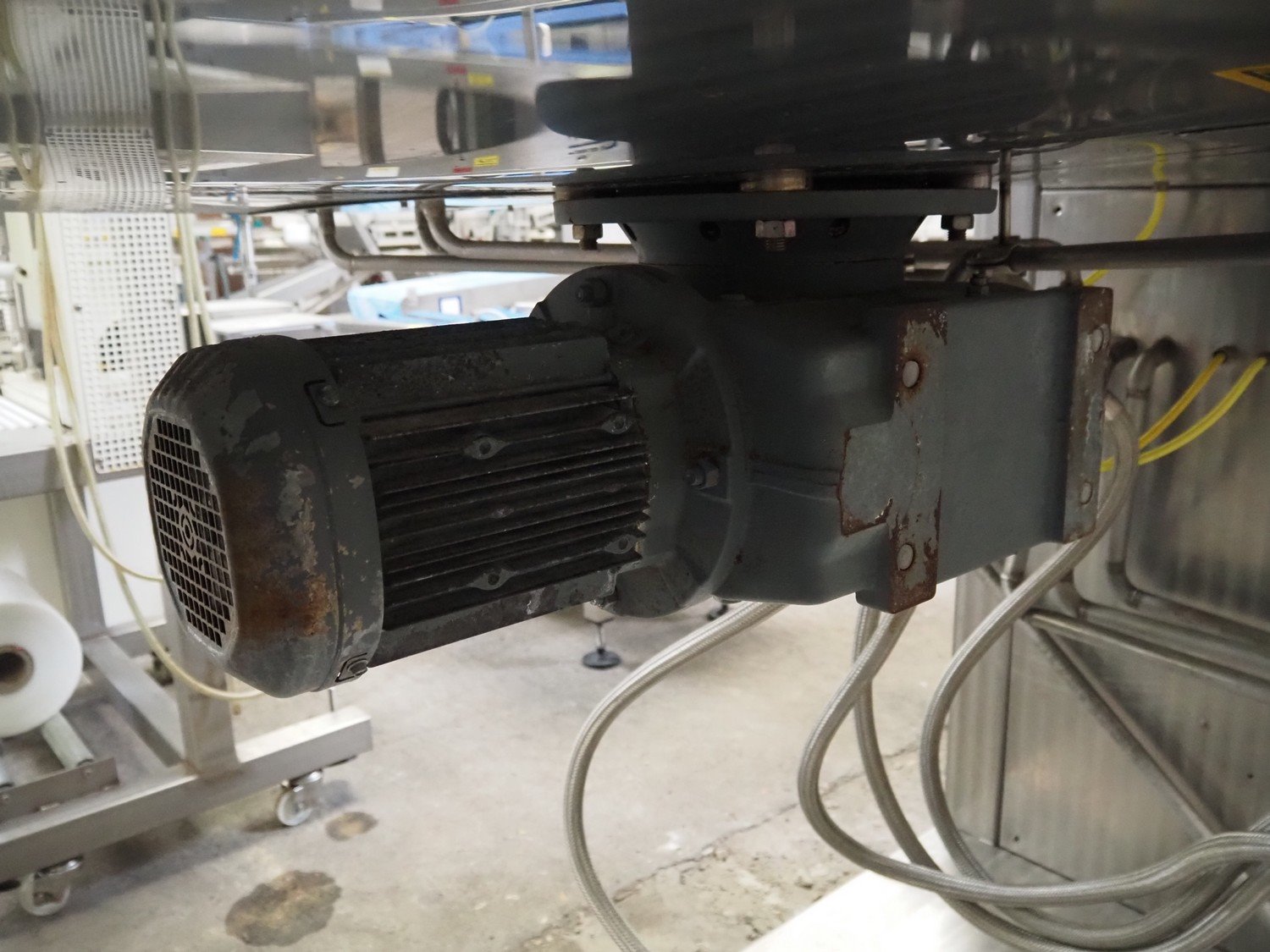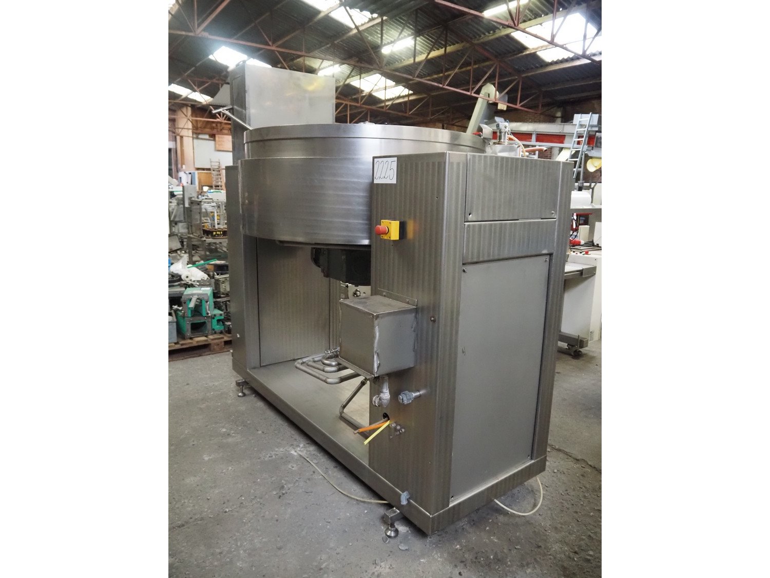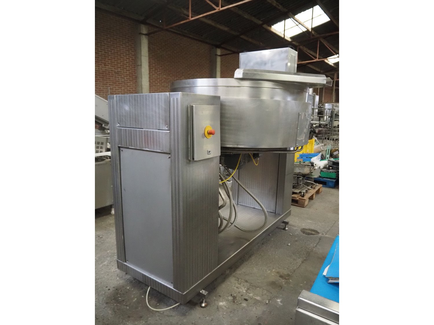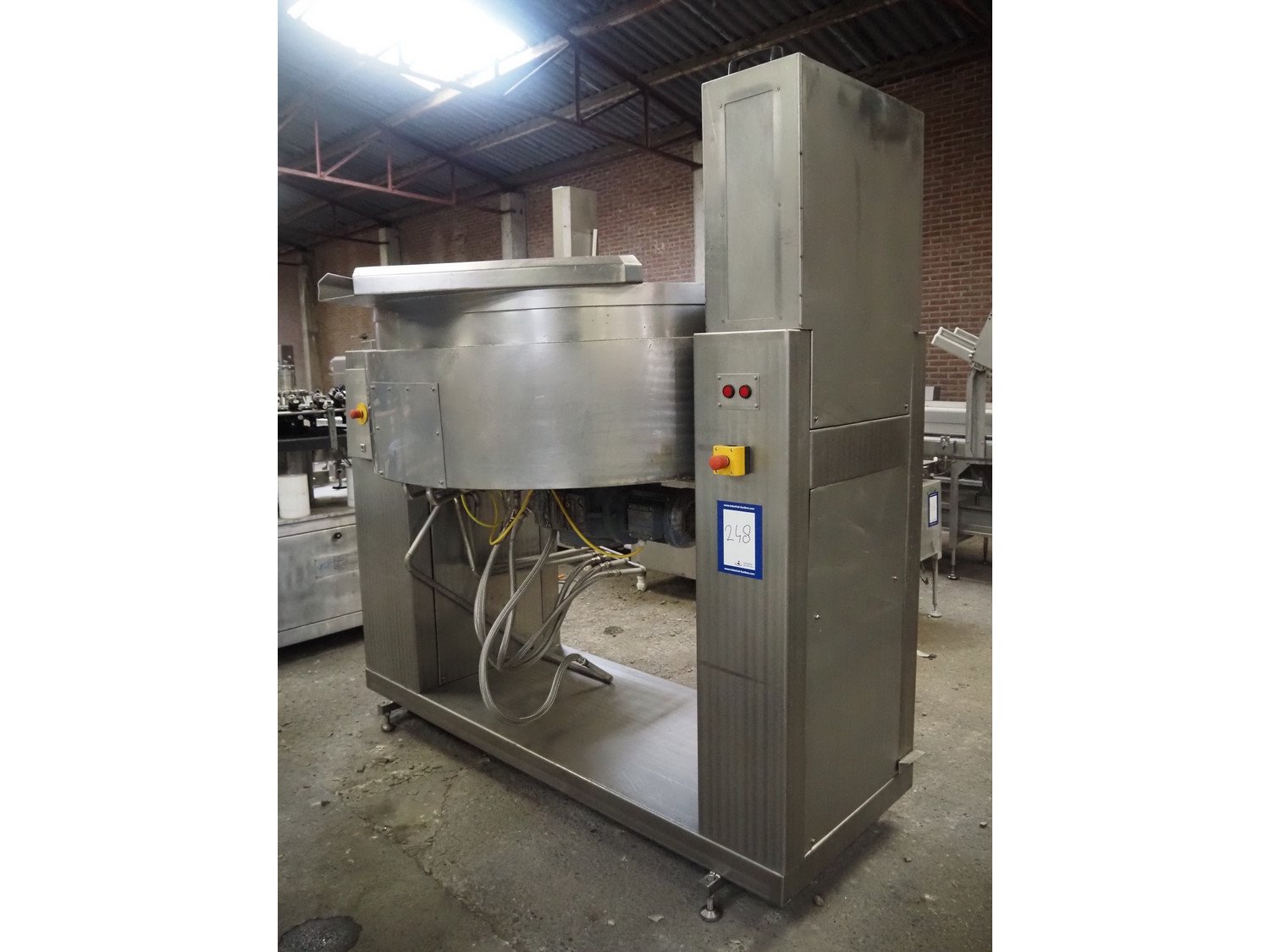 Muvero frying pan with agitator and scrapers, diameter vessel: 1400 mm, height vessel: 500 mm, total dimensions: 2250 mm x 1600 mm x 2450 mm.