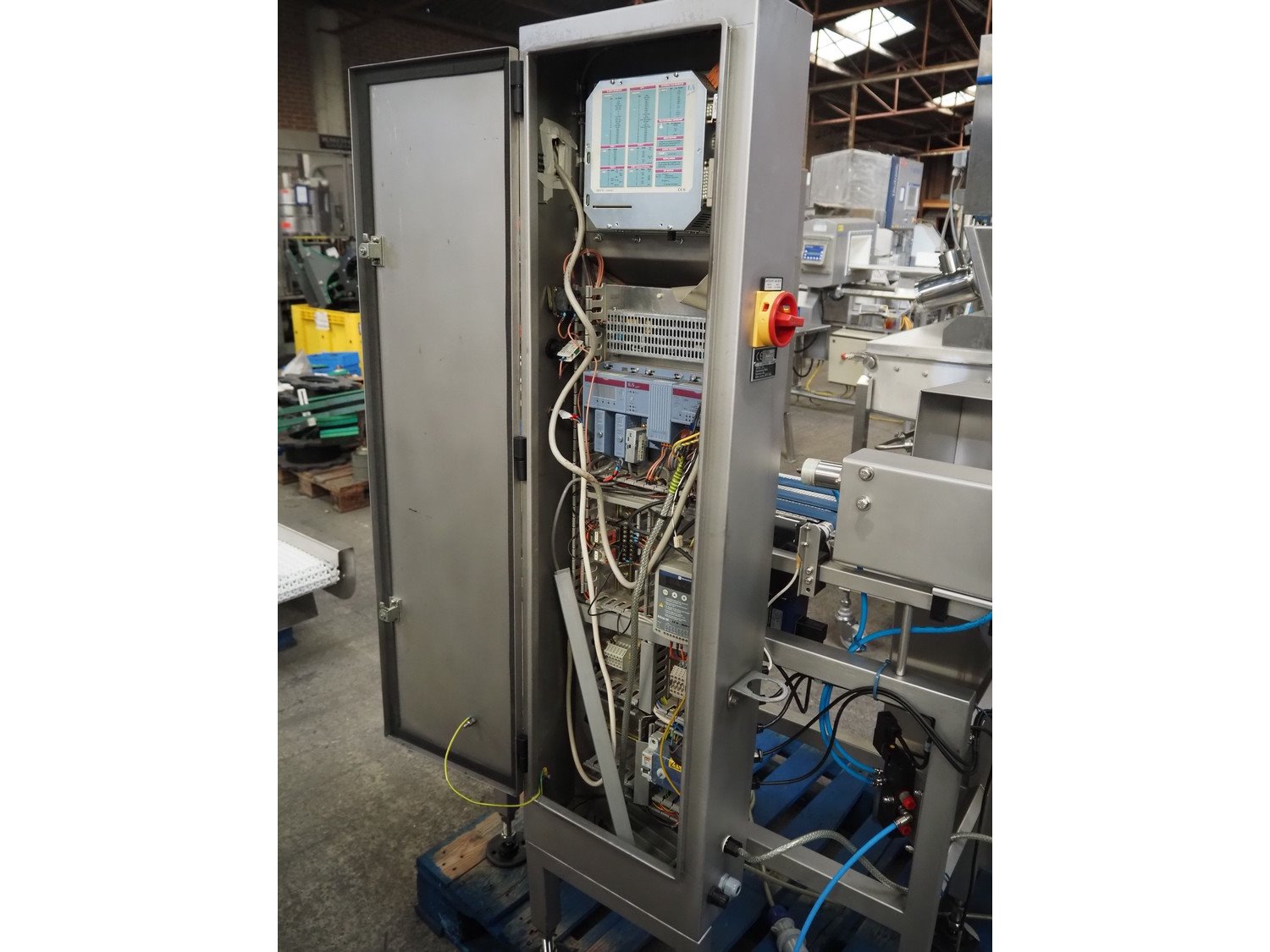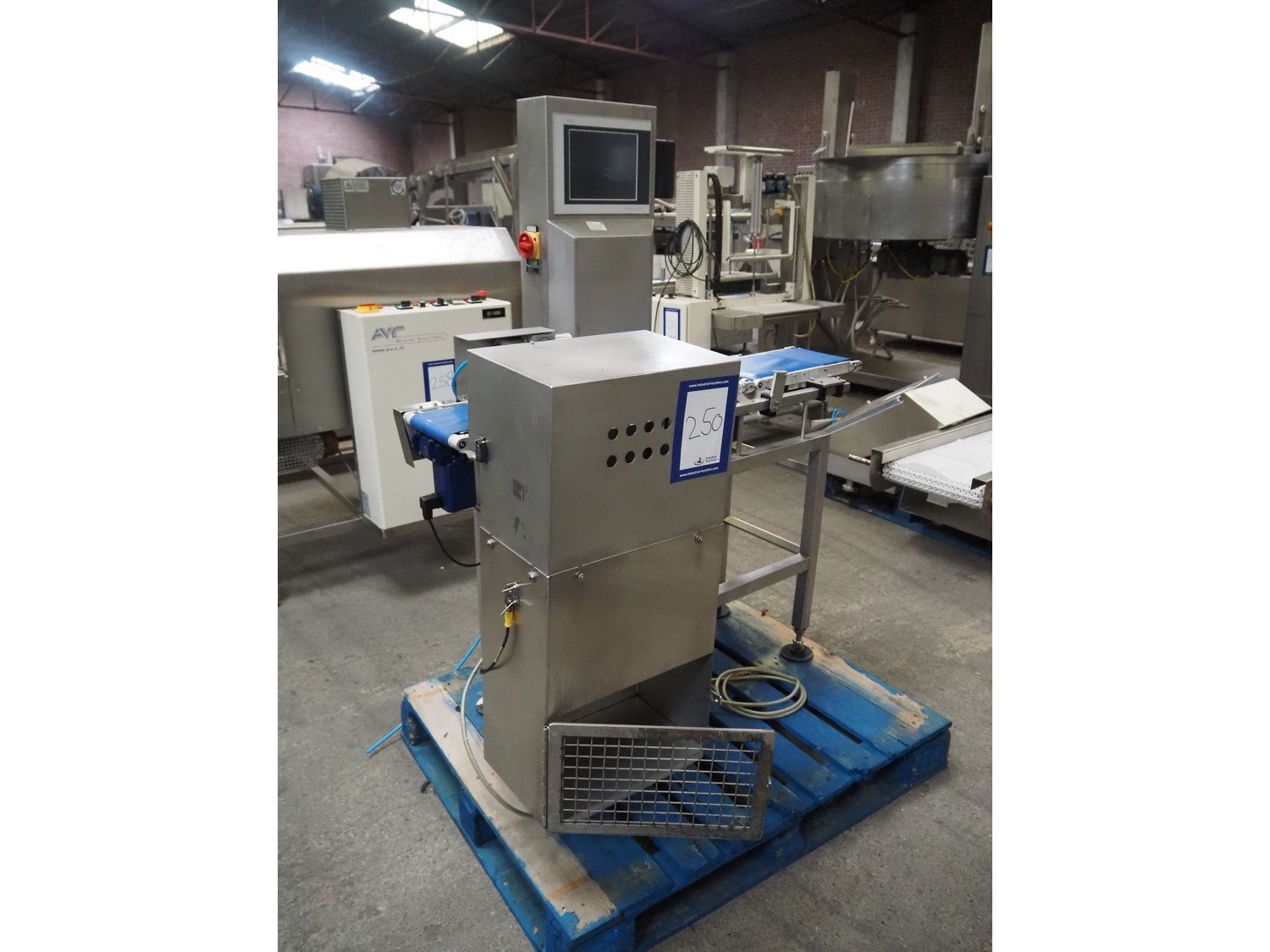 Cintex LTD checkweigher with rejector, type: CS4000, serial number: 81642, year of construction: 2002, 230 V, 1 Ph, 50 Hz, 3 A, plastic belts, belt width: (2x) 205 mm, (1x) 180 mm, total dimensions: 1300 mm x 900 mm x 1570 mm.
