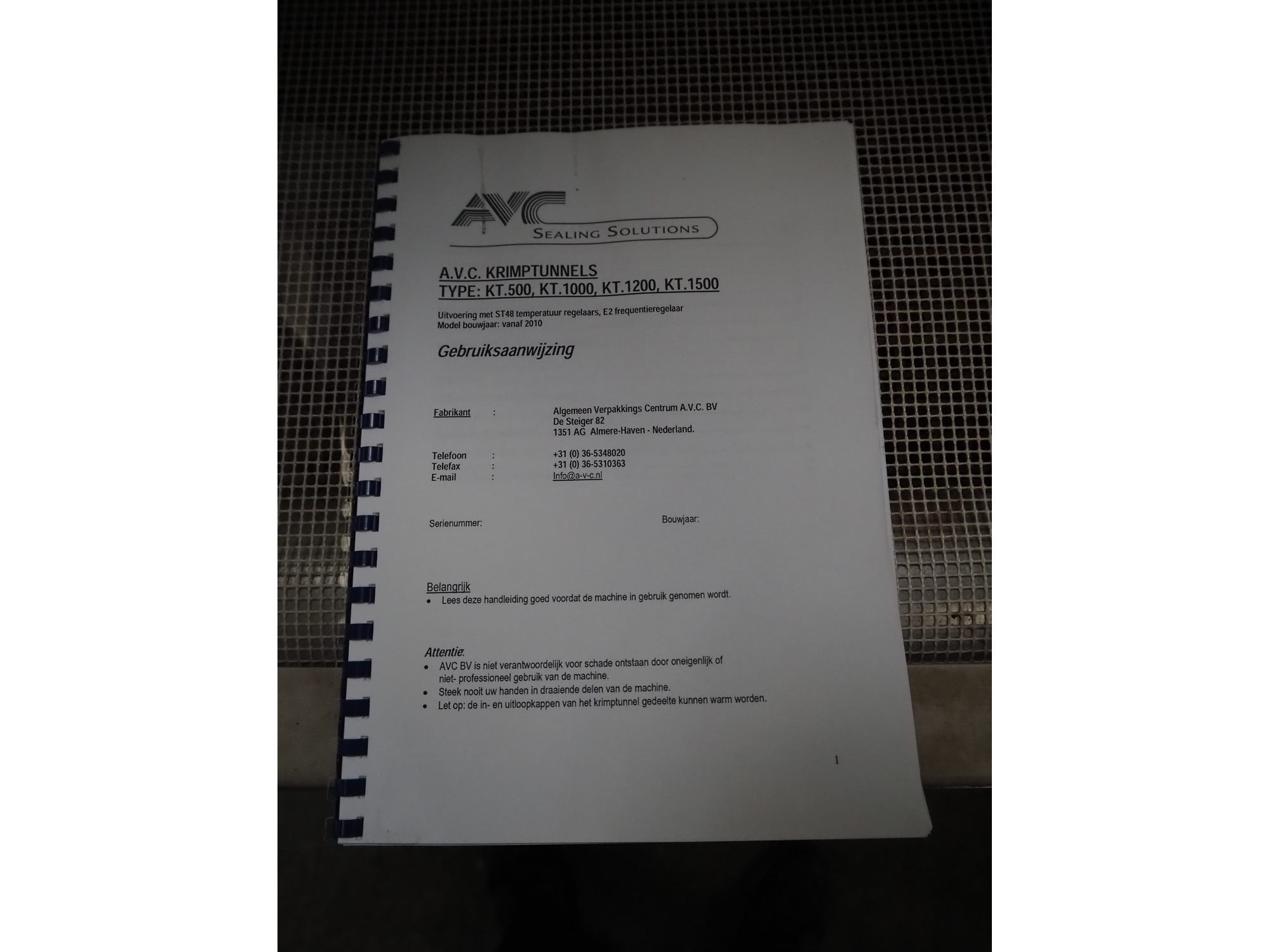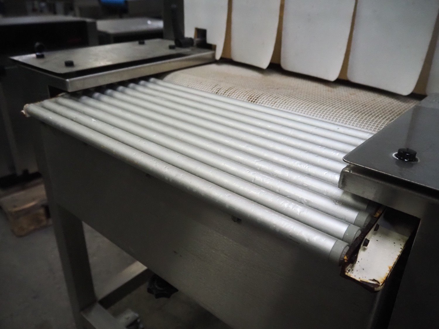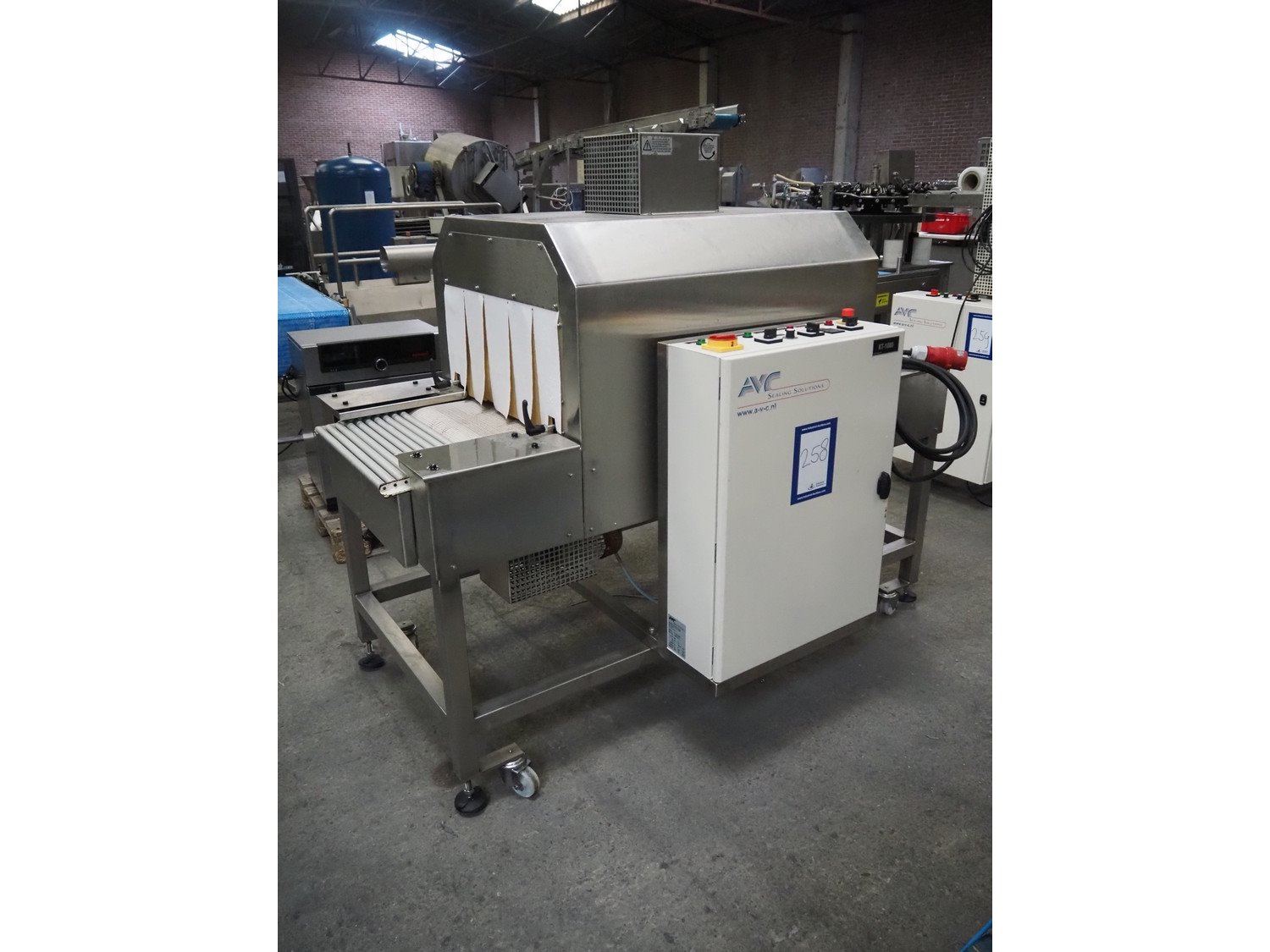 AVC mobile shrinking tunnel, model: KT1000 gaas, serial number: 1903241211, 400 V, 3 Ph, 50 Hz, 25 A, 13 kW, weight: 300 kg, mesh belt, belt width: 470 mm, aluminium rollers, roller width: 520 mm, clearance: 460 mm x 320 mm, total dimensions: 1900 mm x 1150 mm x 1600 mm.
