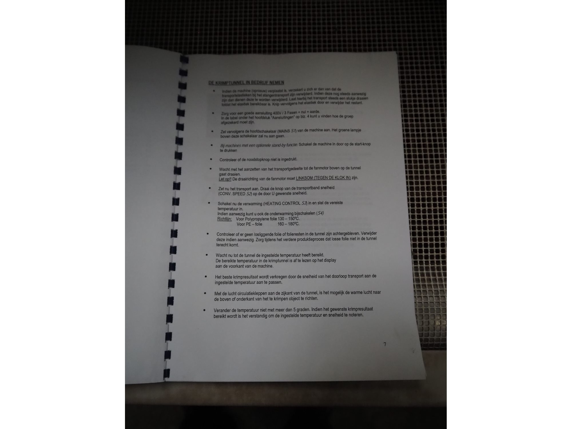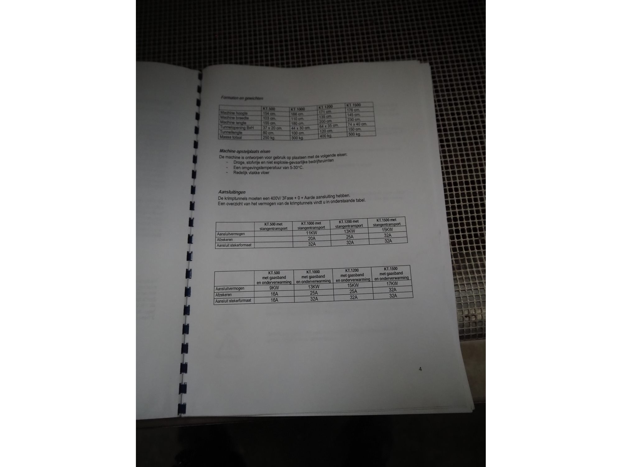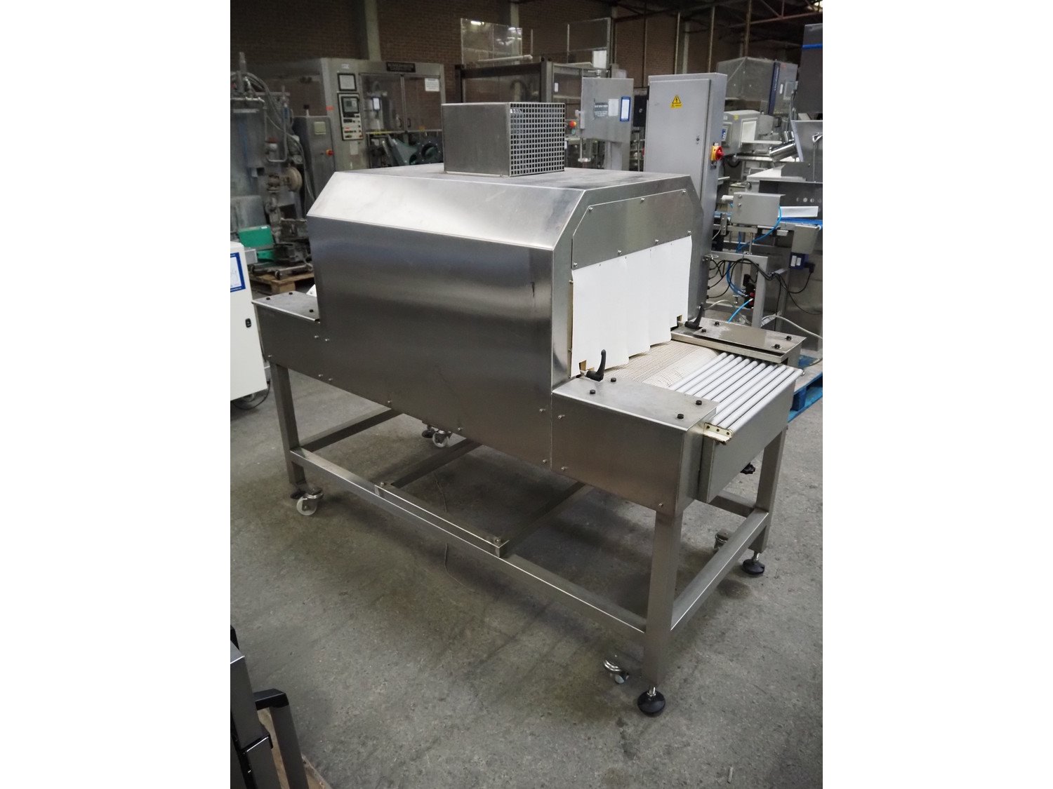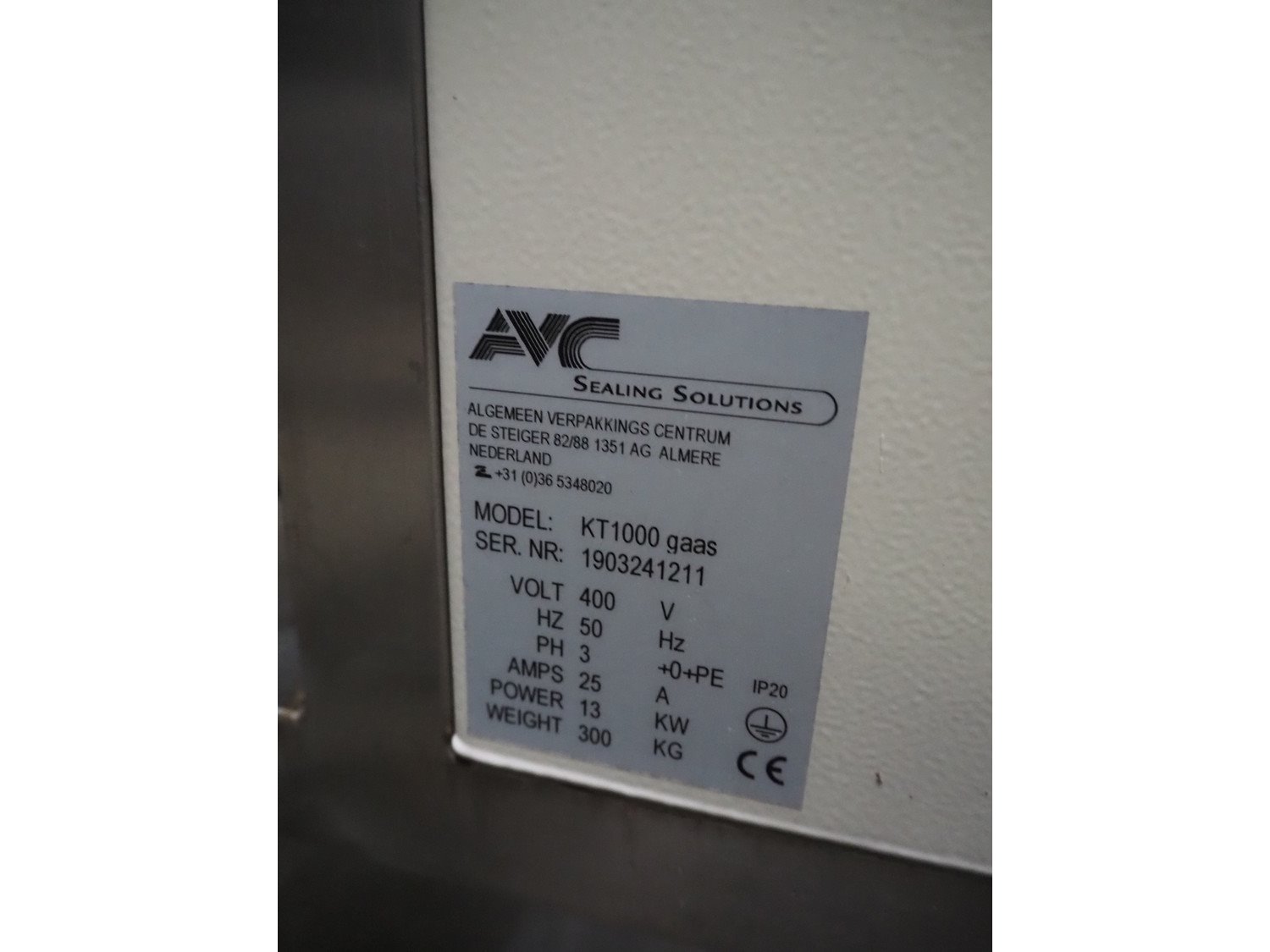 AVC mobile shrinking tunnel, model: KT1000 gaas, serial number: 1903241211, 400 V, 3 Ph, 50 Hz, 25 A, 13 kW, weight: 300 kg, mesh belt, belt width: 470 mm, aluminium rollers, roller width: 520 mm, clearance: 460 mm x 320 mm, total dimensions: 1900 mm x 1150 mm x 1600 mm.
