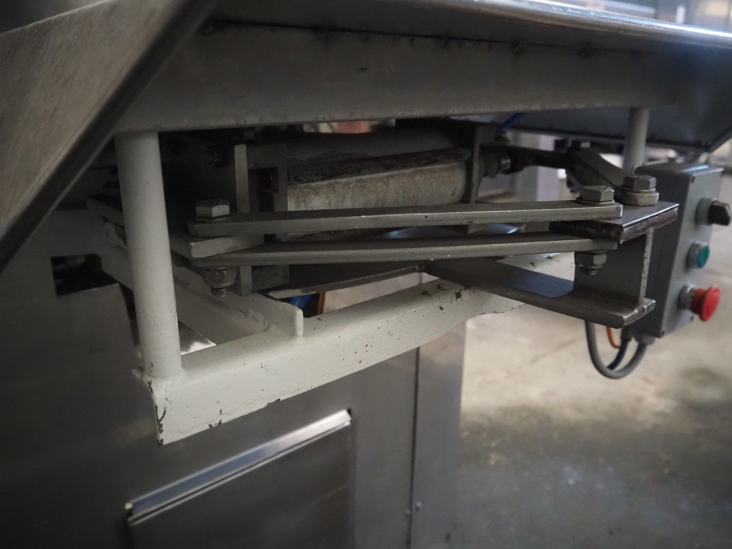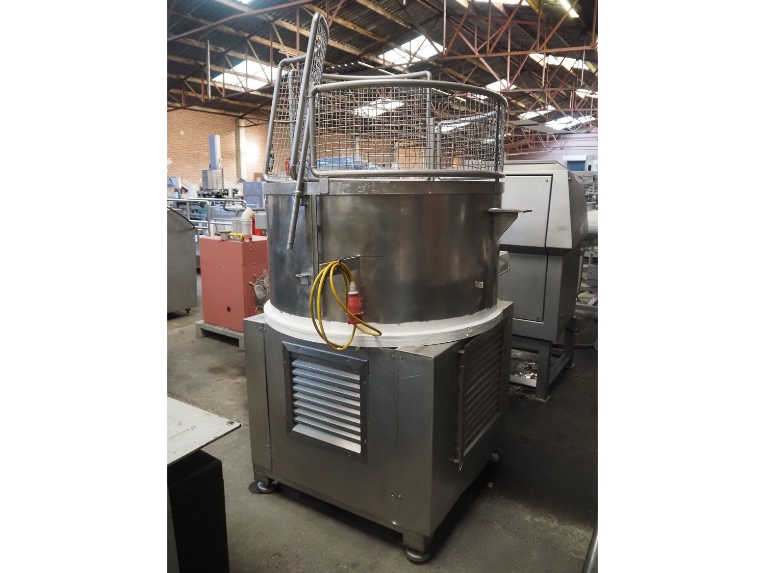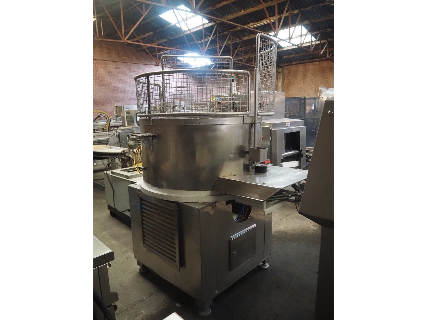 Mixer with bottom valve for unloading, s/s bowl, steel mixer, diameter bowl: 1150 mm, height bowl: 620 mm, total dimensions: 1900 mm x 1700 mm x 2280 mm.