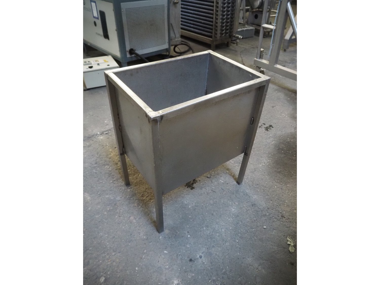 S/s tub, inside dimensions: 600 mm x 400 mm x 500 mm, total dimensions: 650 mm x 450 mm x 790 mm.