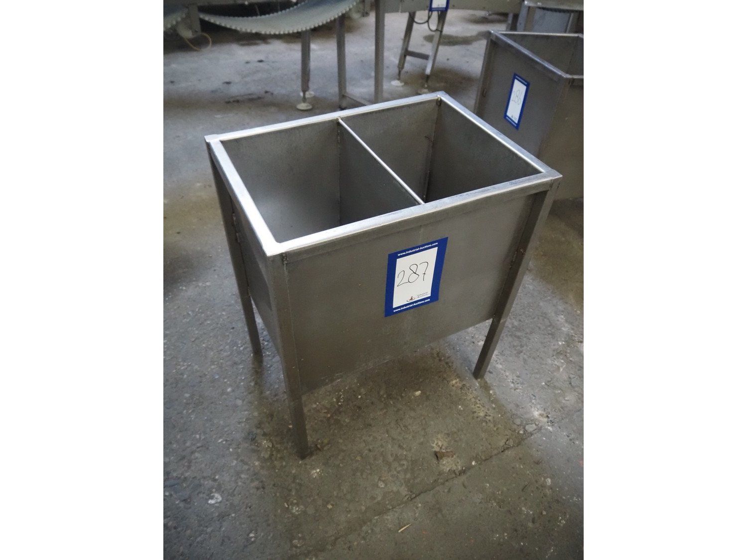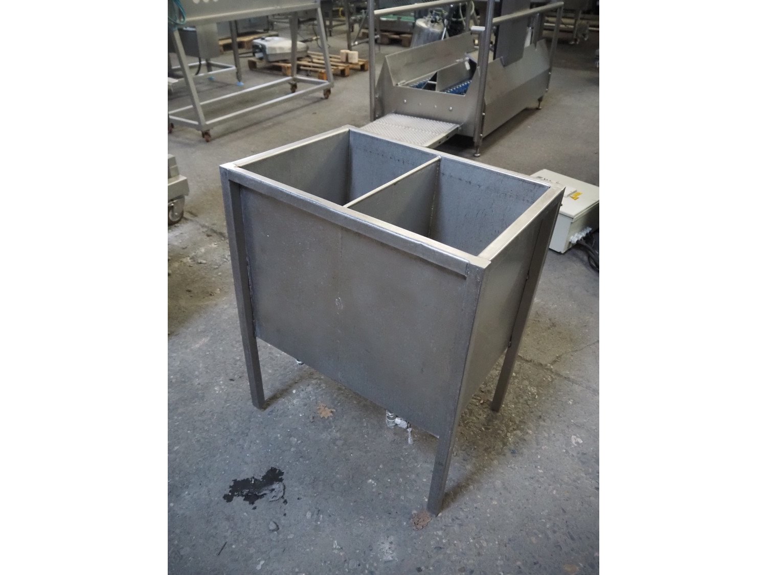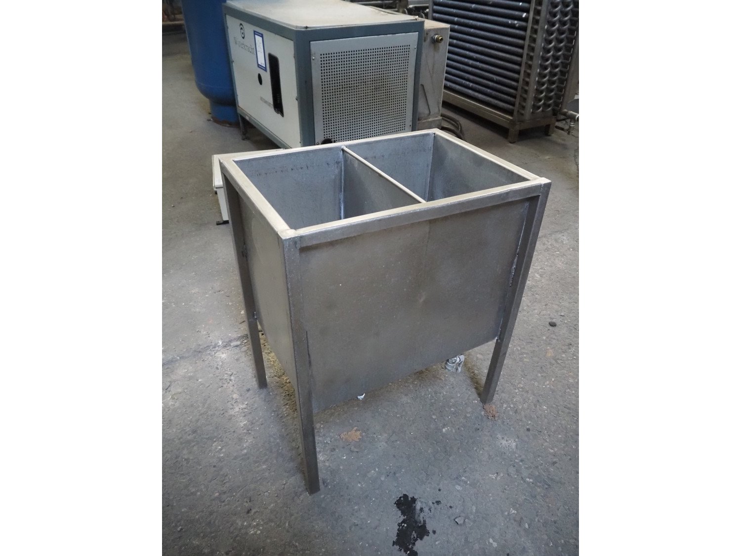 S/s double tub with drain, inside dimensions: (2x) 415 mm x 300 mm x 490 mm, total dimensions: 660 mm x 465 mm x 810 mm.