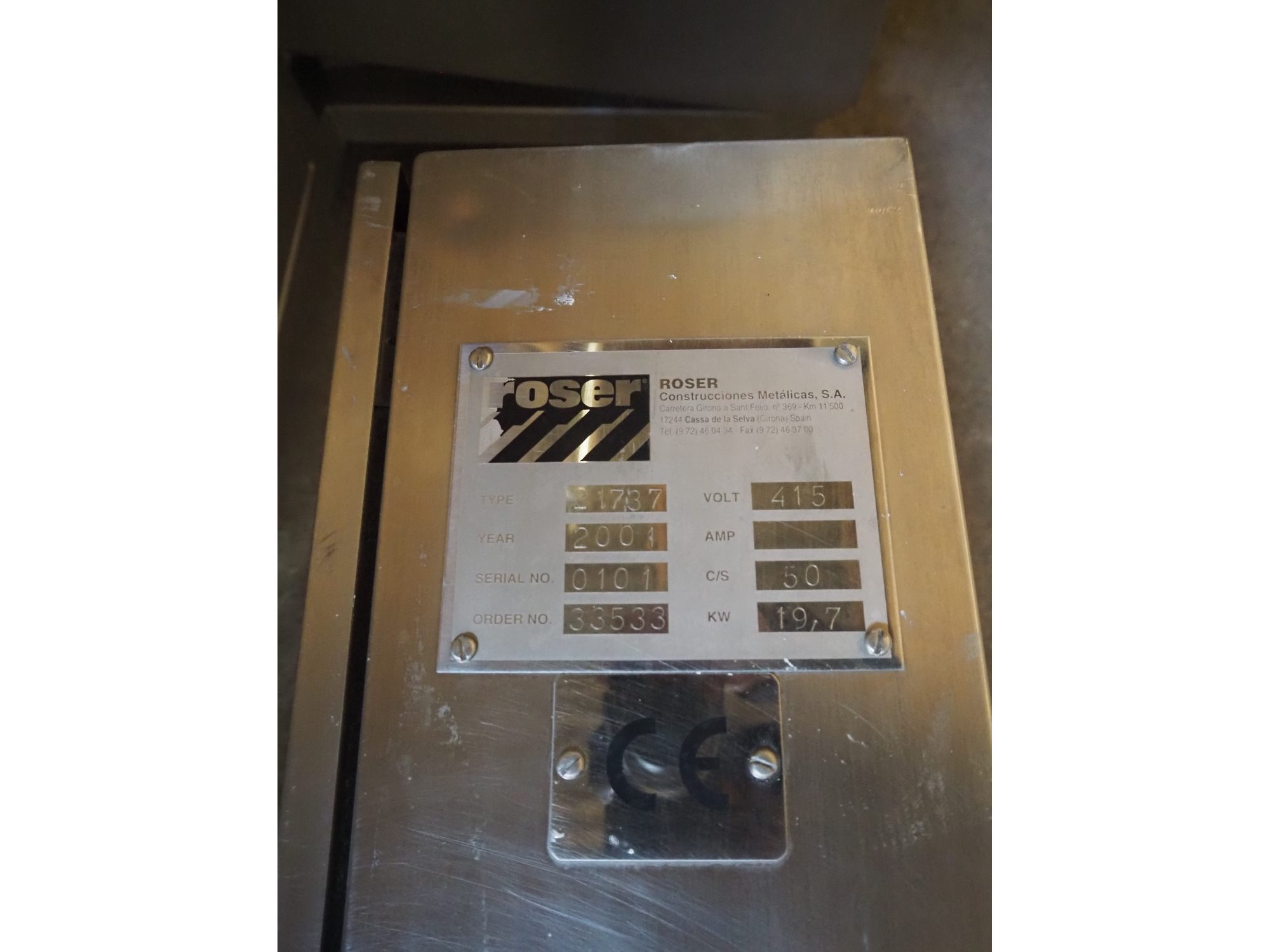 Roser knife basket washing machine, type: 21737, serial number: 0101, year of construction: 2001, 415 V, 19.7 kW, dimensions: 3100 mm x 930 mm x 2160 mm.
