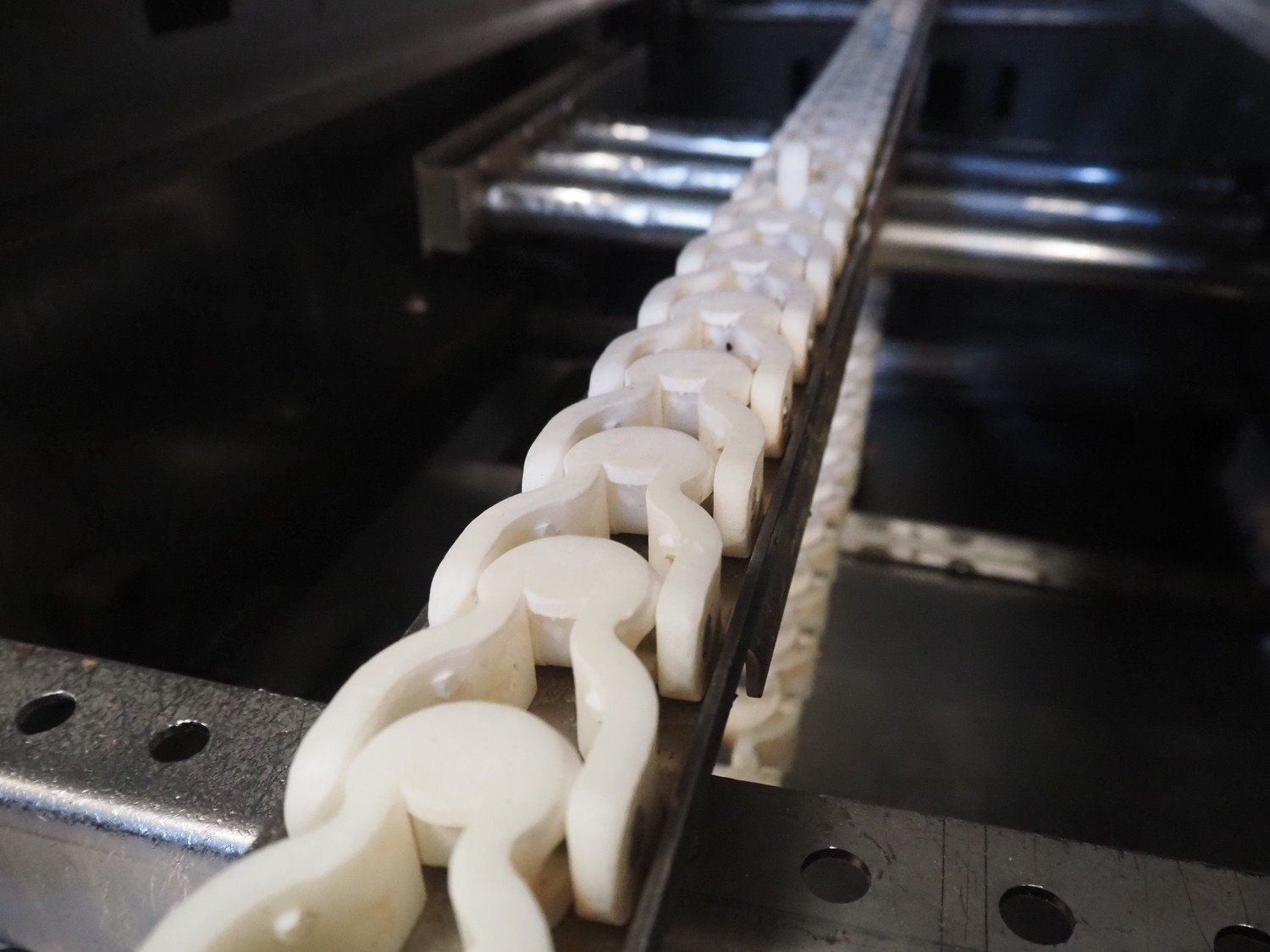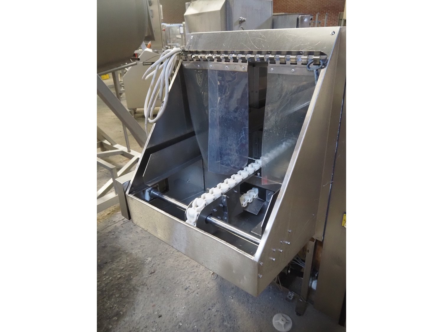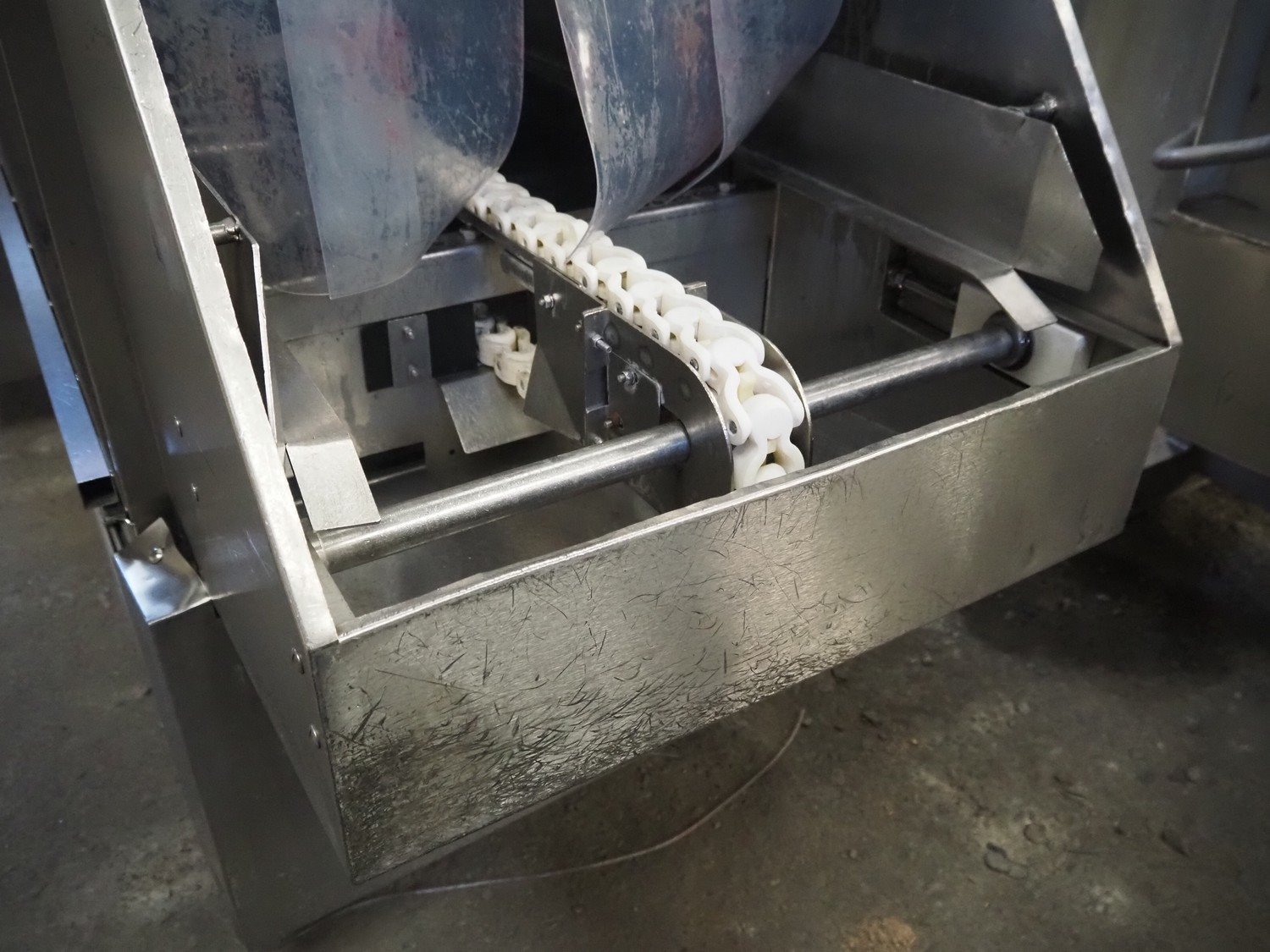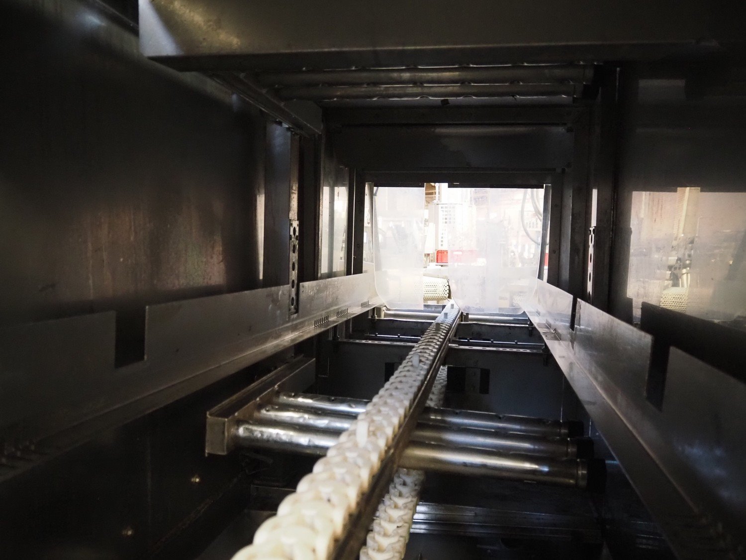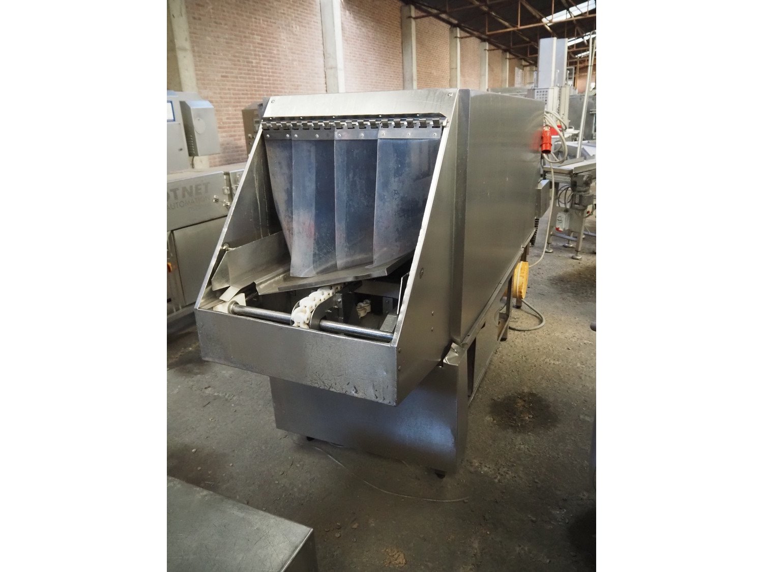 Hobart crate washer, clearance: 600 mm x 450 mm, belt width: 55 mm, divider height: 17 mm, distance between dividers: 340 mm, total dimensions: 3100 mm x 1000 mm x 1490 mm.