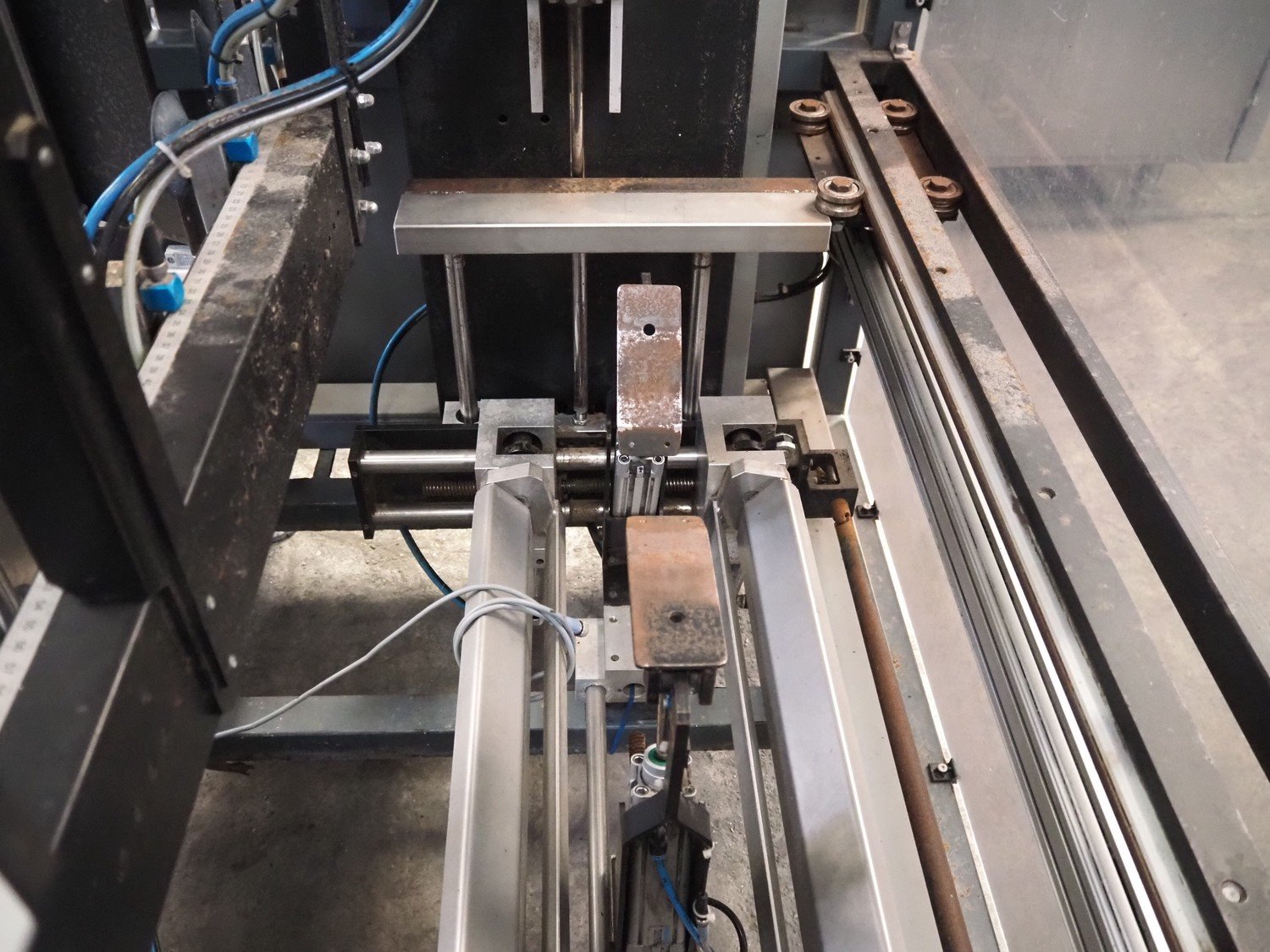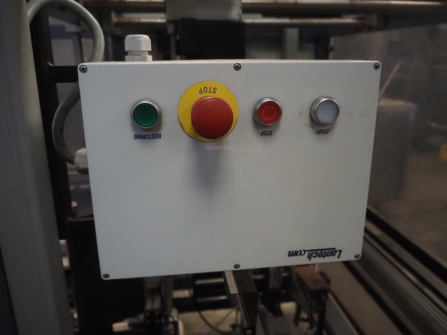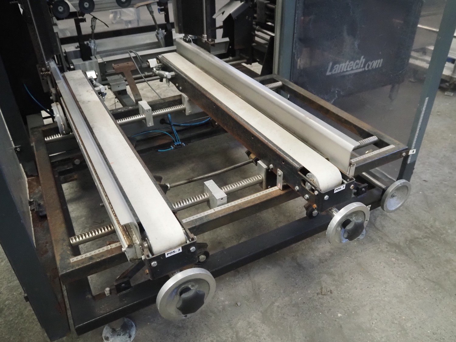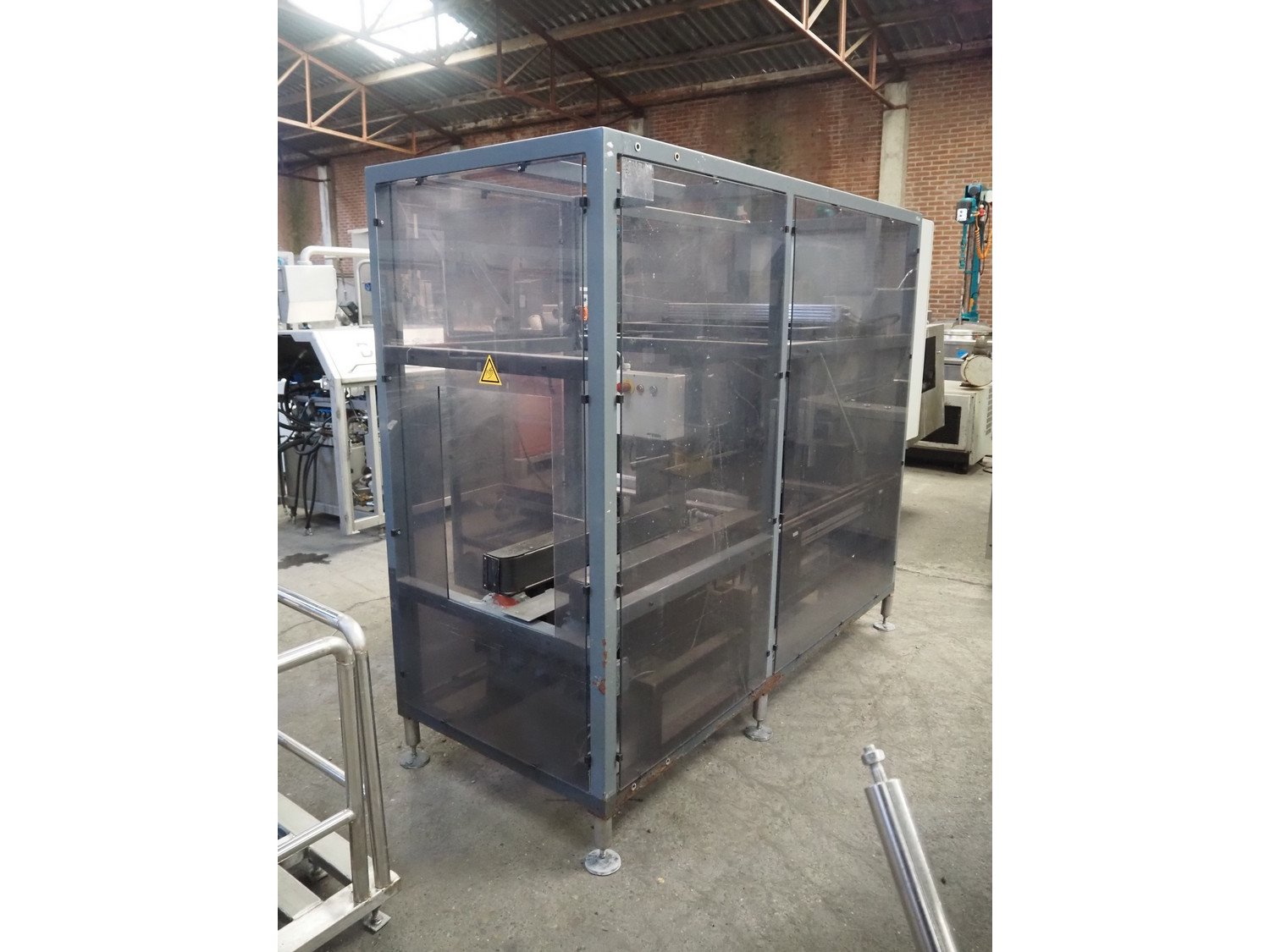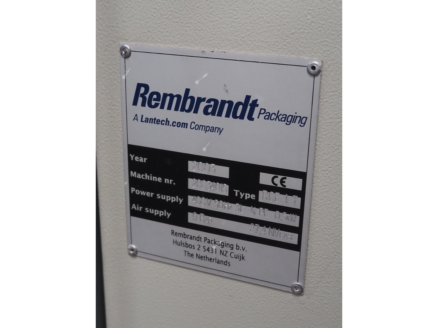 Rembrandt Packaging carton erector, type: RCE-1-T, serial number: 20034015, year of construction: 2003, 400 V, 3 Ph, 50 Hz, 0.5 kW, infeed working width: maximum 910 mm, clearance: 425 mm x 615 mm, distance between belts: 210 mm, total dimensions: 2510 mm x 1700 mm x 1880 mm.