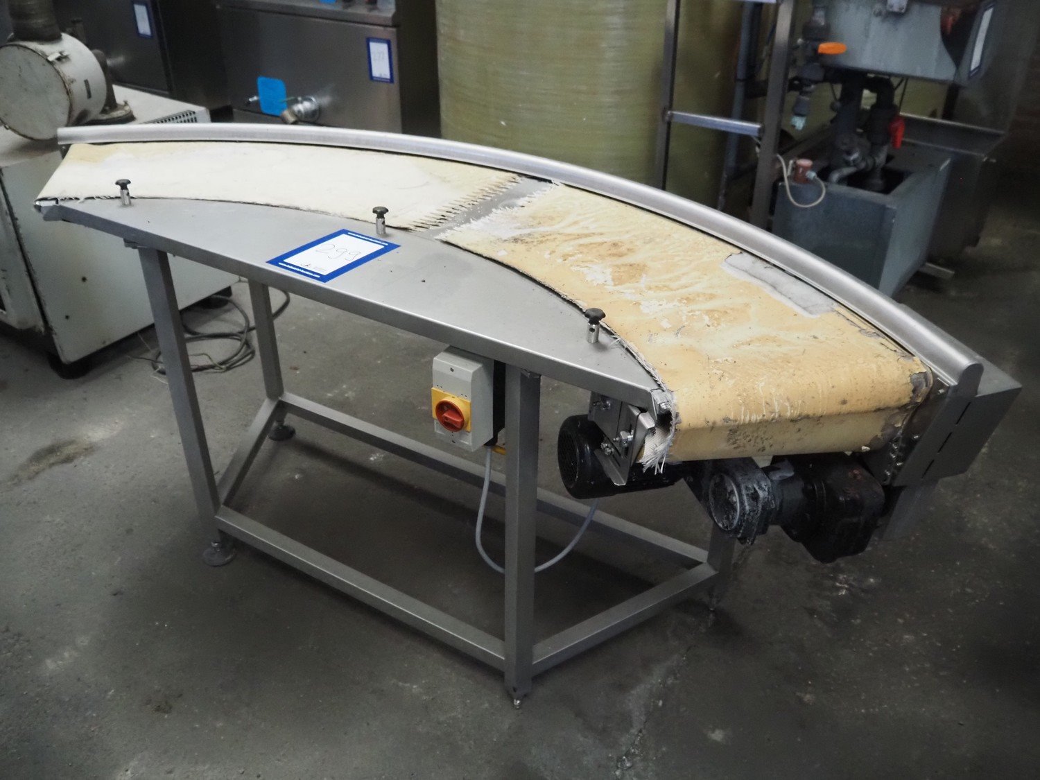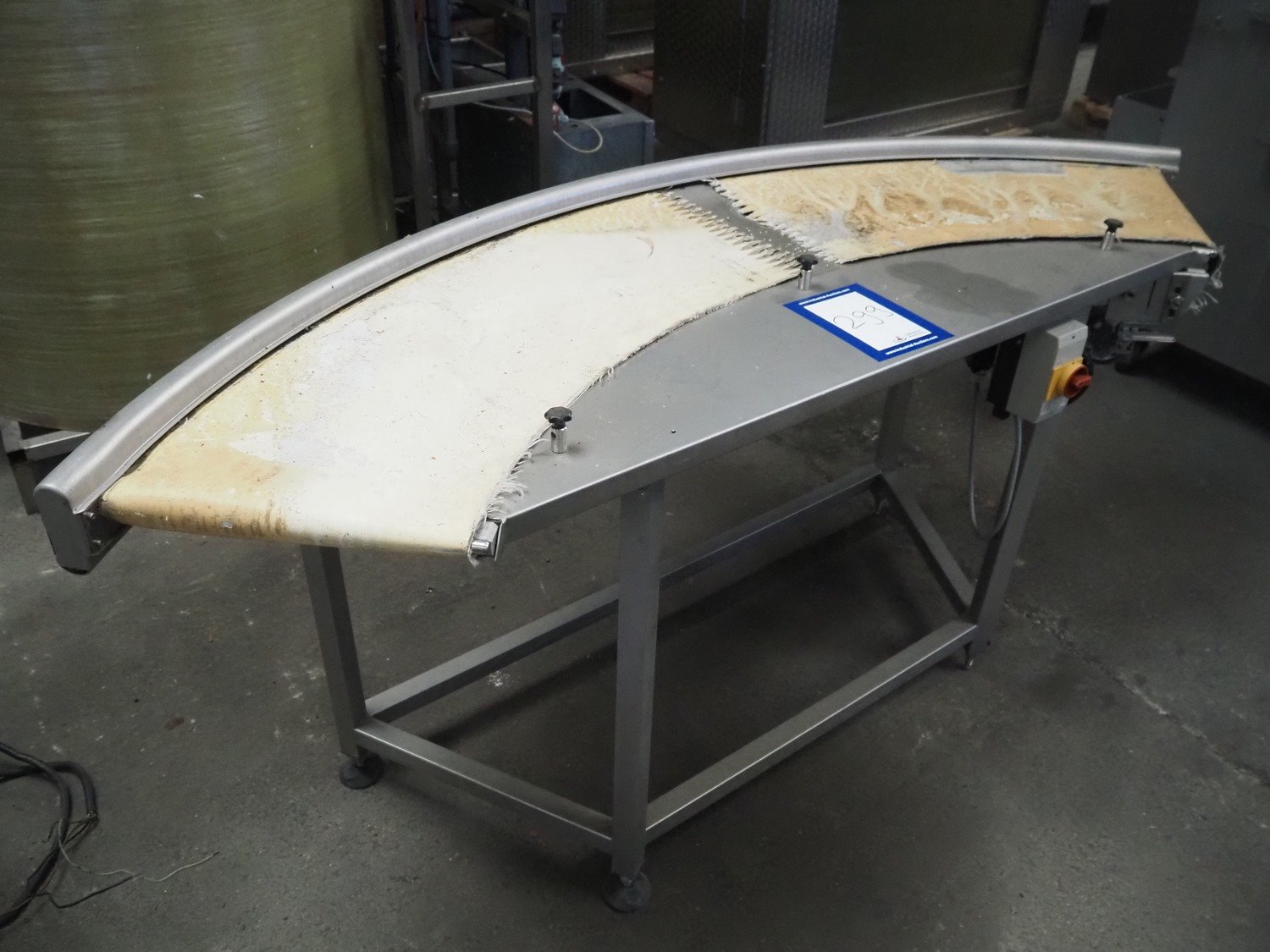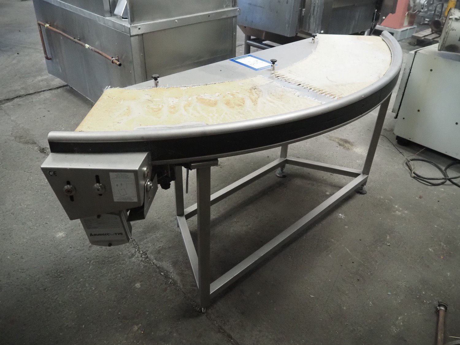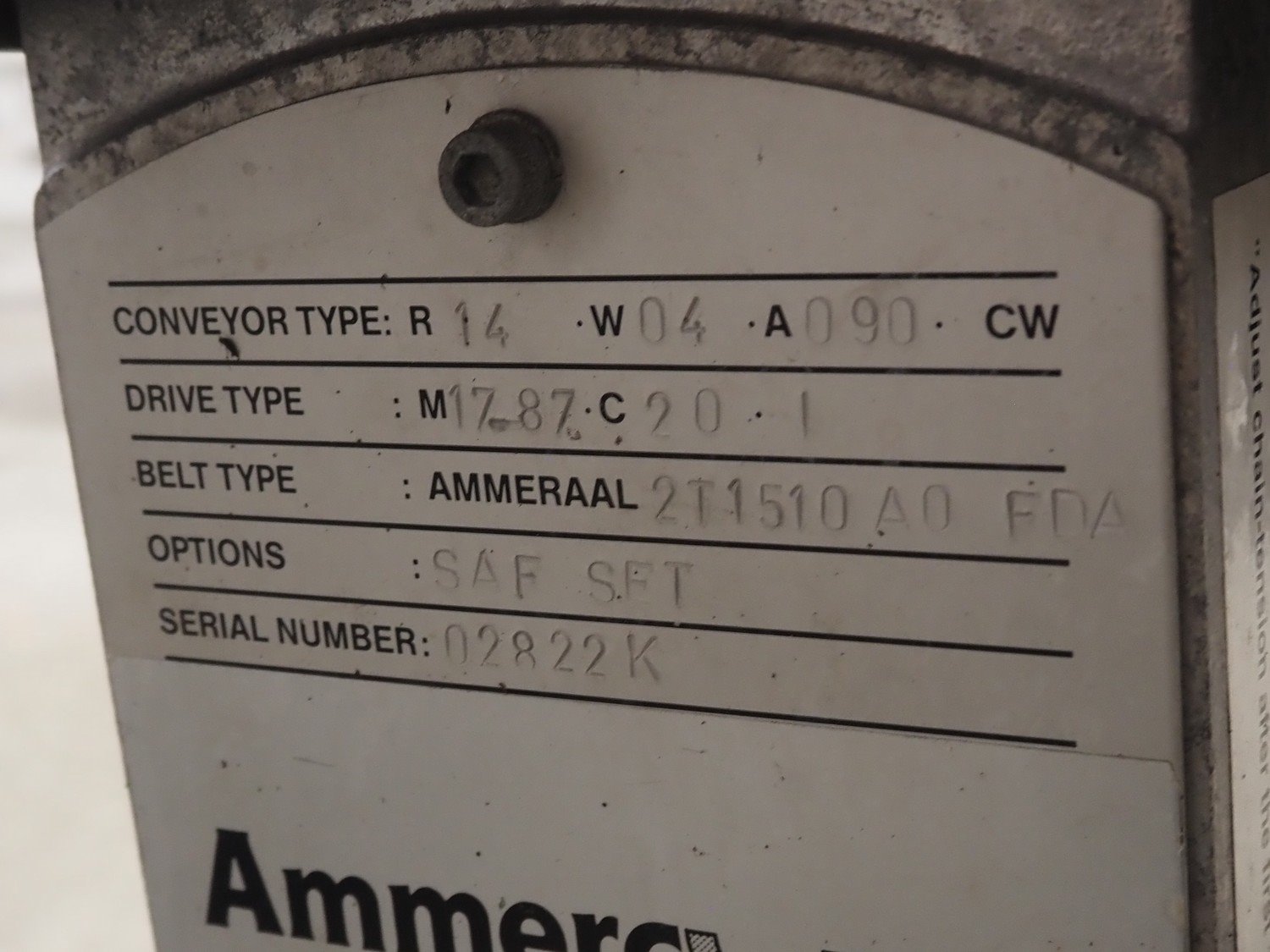 Ammercurve 45° curve conveyor, type: R14, serial number: 02822 K, plastic belt, belt width: 390 mm, total dimensions: 1500 mm x 1500 mm x 920 mm.