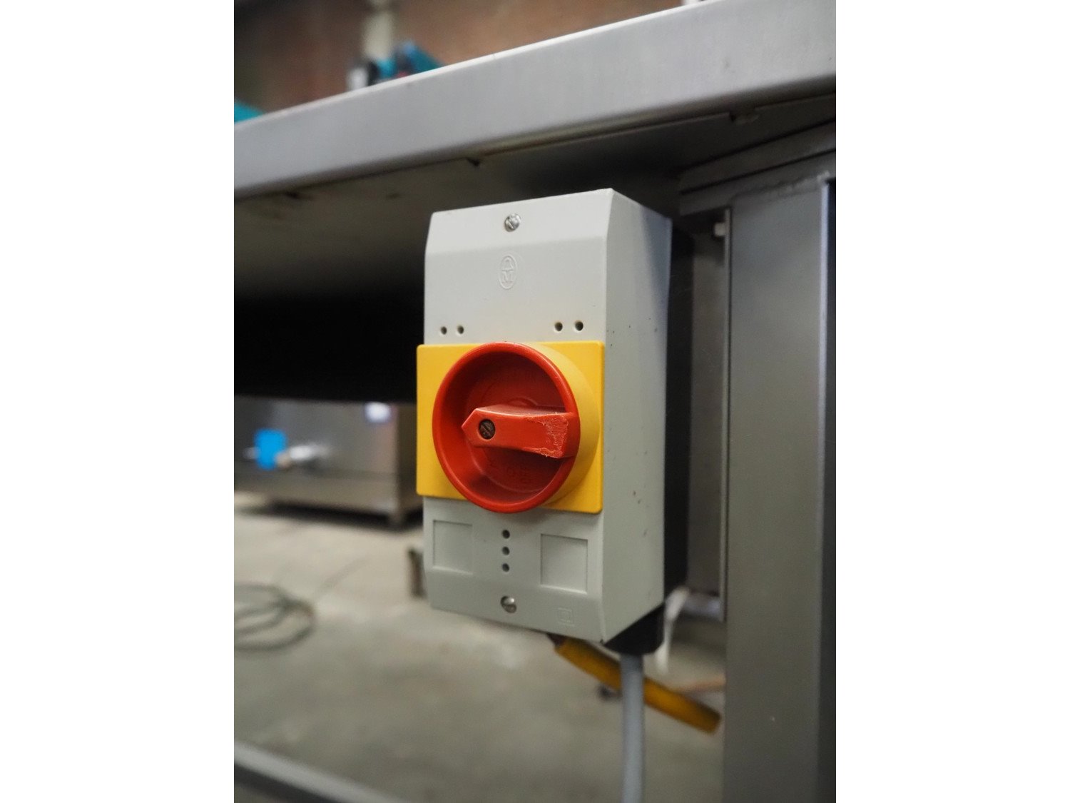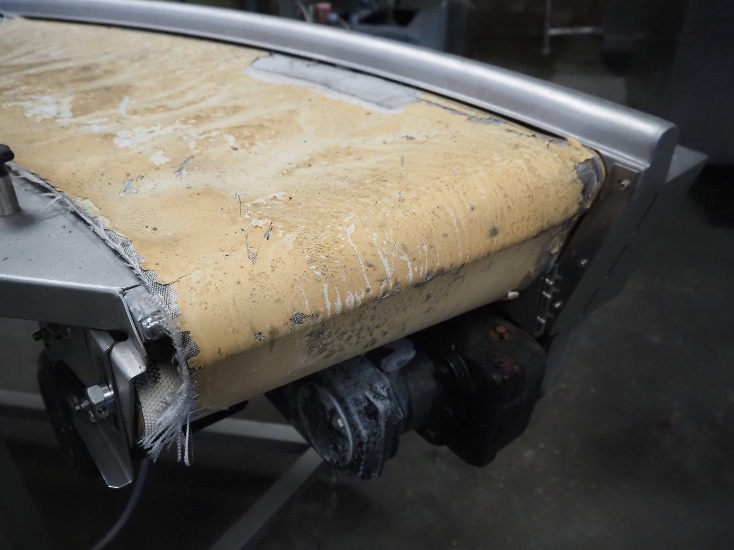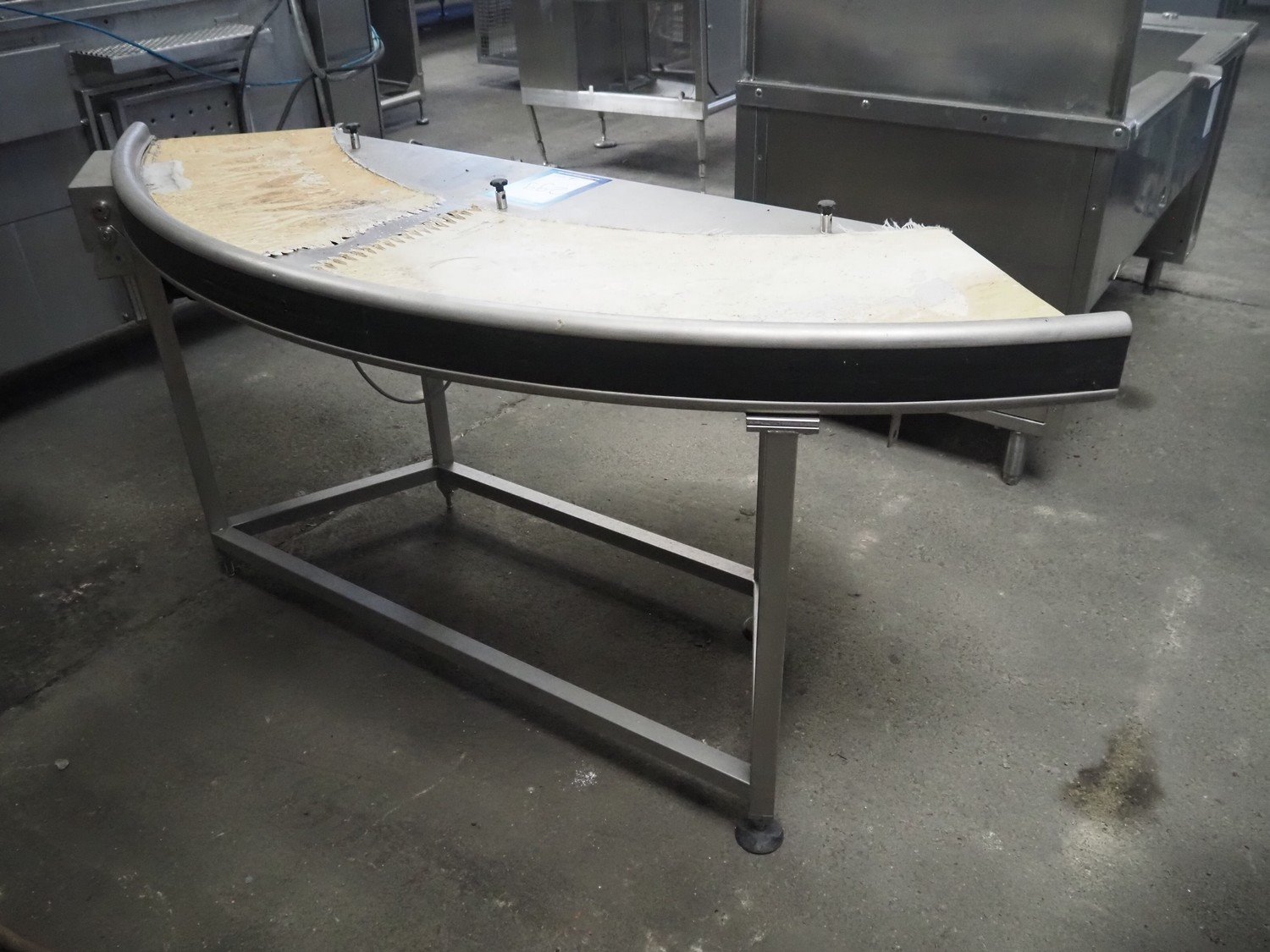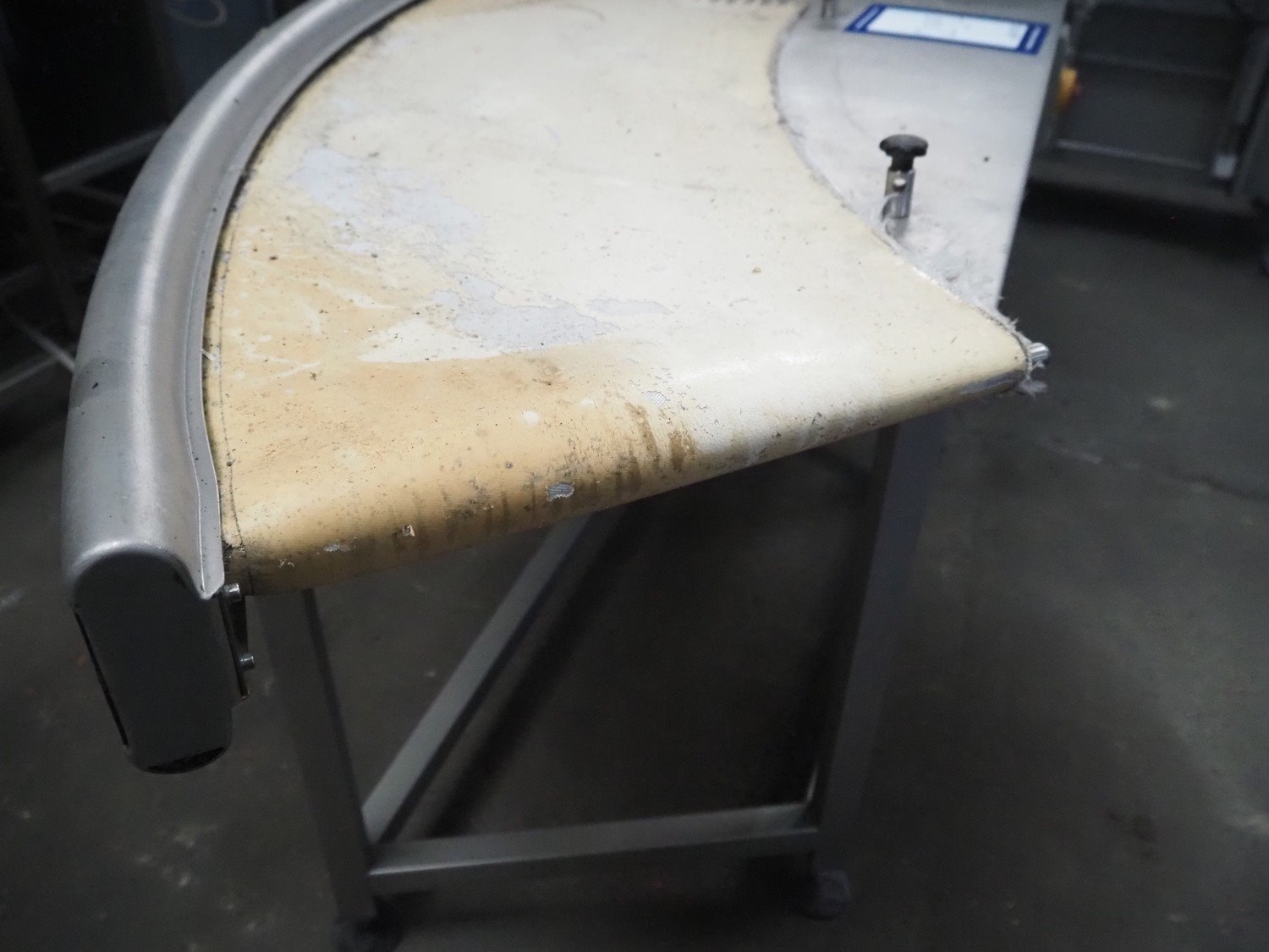 Ammercurve 45° curve conveyor, type: R14, serial number: 02822 K, plastic belt, belt width: 390 mm, total dimensions: 1500 mm x 1500 mm x 920 mm.