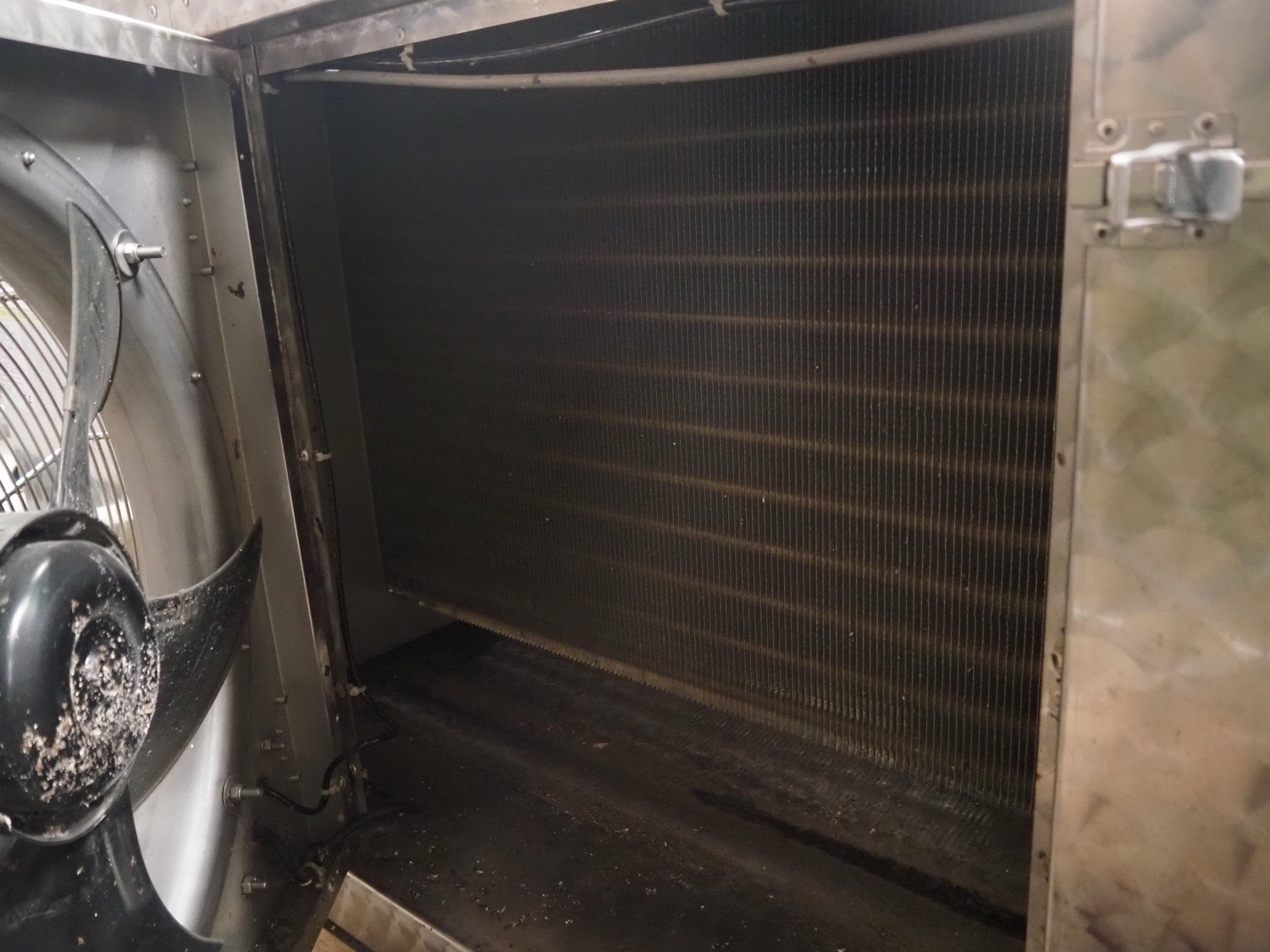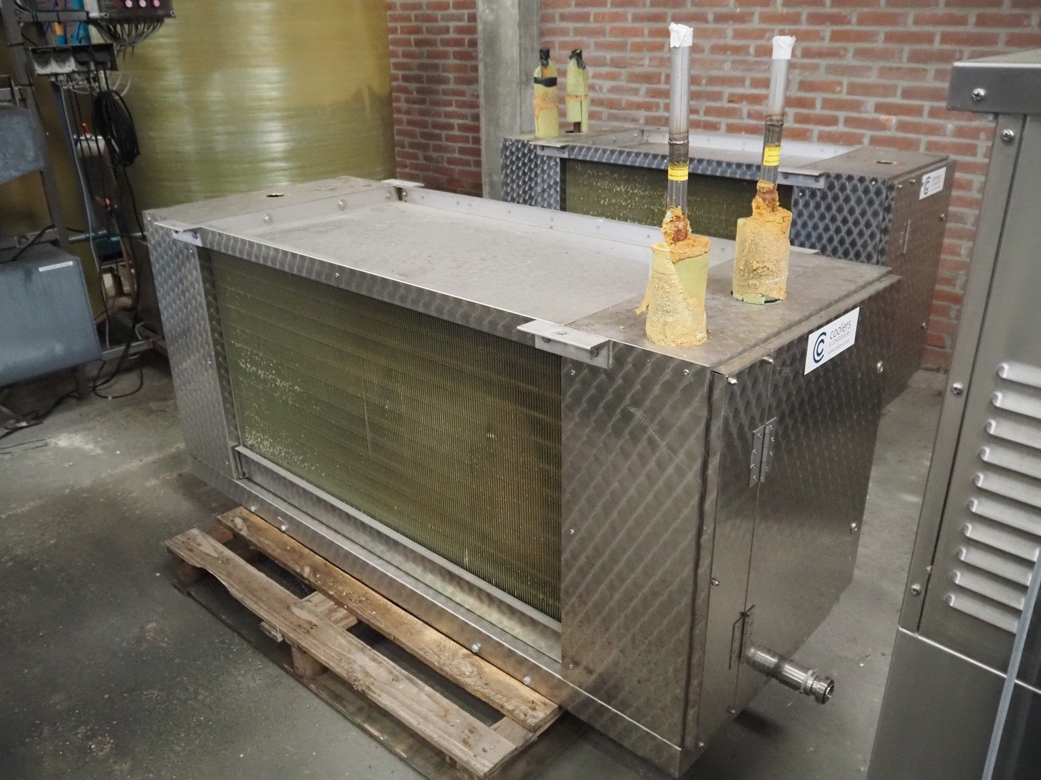 Coolers & condensers s/s evaporator, model: CF 8/13-6R6mm, serial number: SOP0035177-2, 415 V, 3 Ph, 50 Hz, maximum temperature: 100°C, minimum temperature: -50°C, 1 fan, total dimensions: 1850 mm x 900 mm x 1350 mm.
