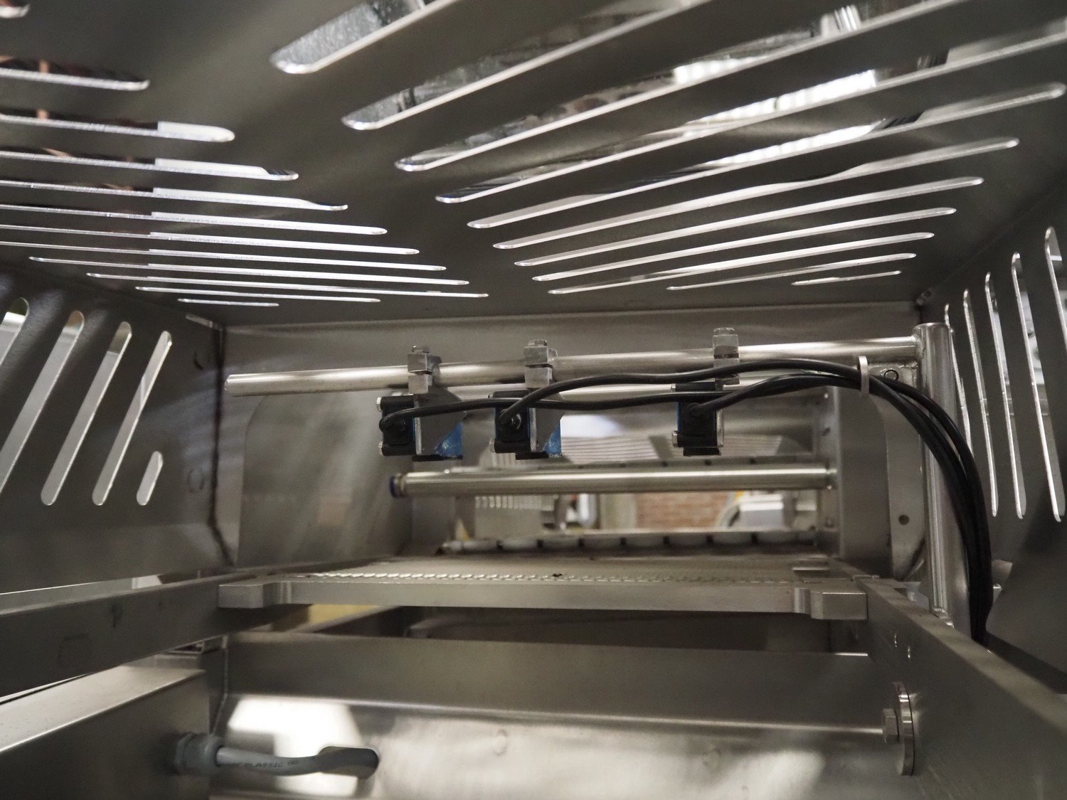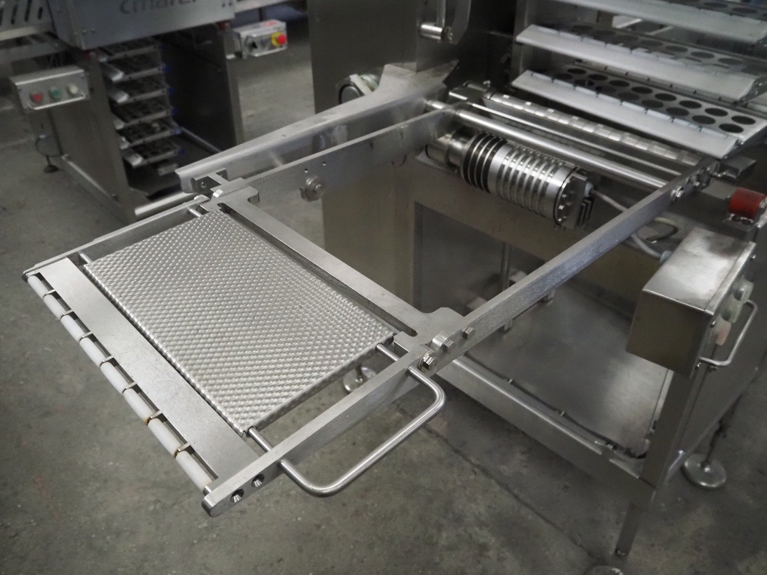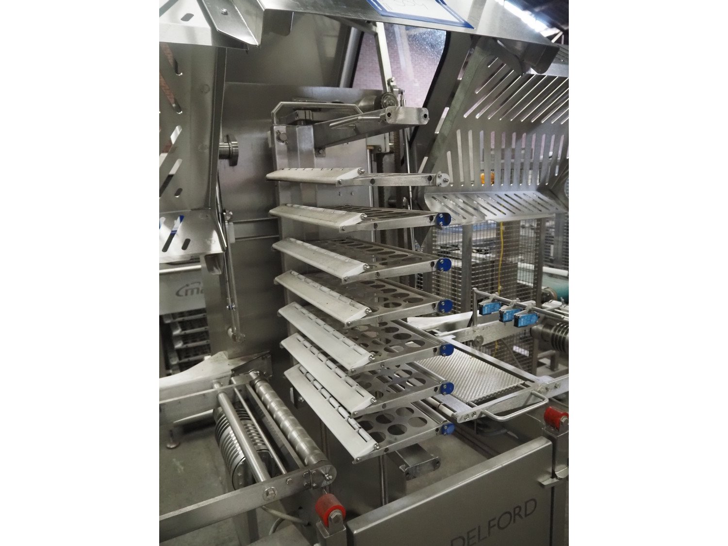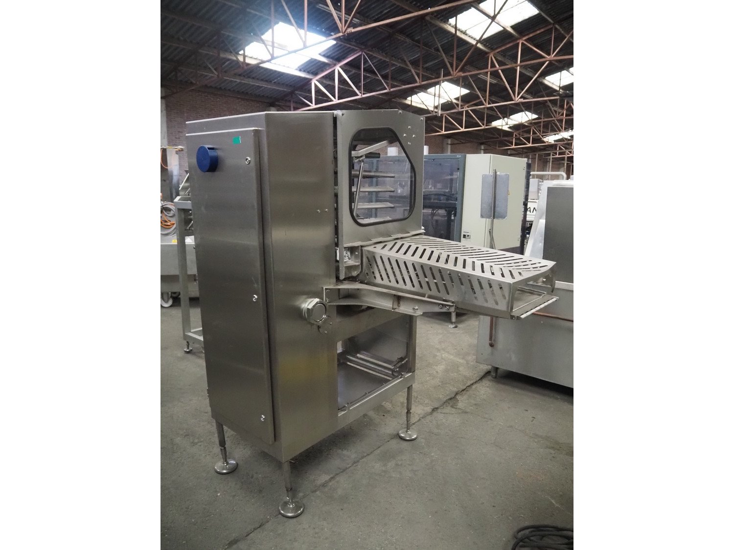 Marel Limited vertical buffer, model: vertical buffer, serial number: 1970011, year of construction: 20-10-2011, 400 V, 3 Ph, 50 Hz, 6/10 A, weight: 410 Kg, belt width: 400 mm, 7 floors, dye: (24x each floor) Ø 40 mm, total dimensions: 2050 mm x 1200 mm x 1900 mm. Incomplete.