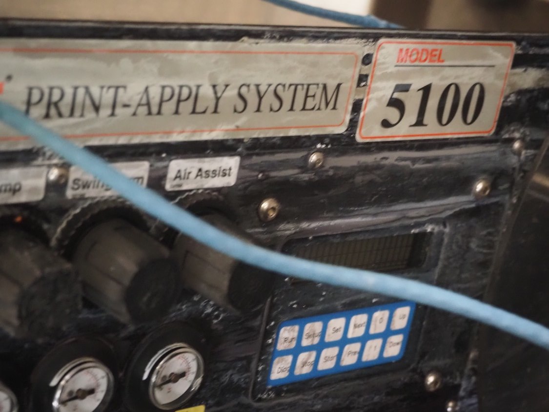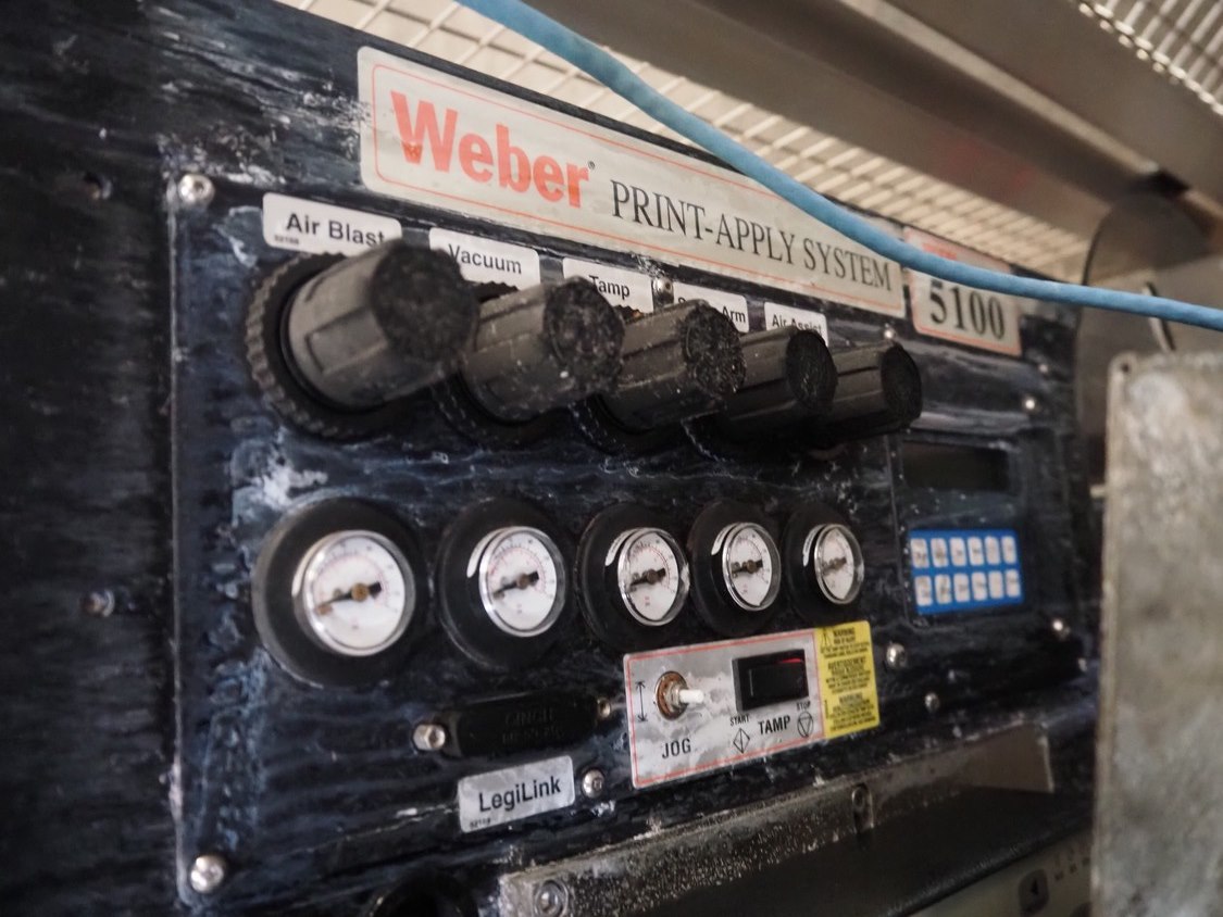 Weber labelling machine, model: W5100-TT-LH-U-S, serial number: WUK060910178A, plastic belt, belt width: 240 mm, total dimensions: 2000 mm x 1200 mm x 1620 mm.