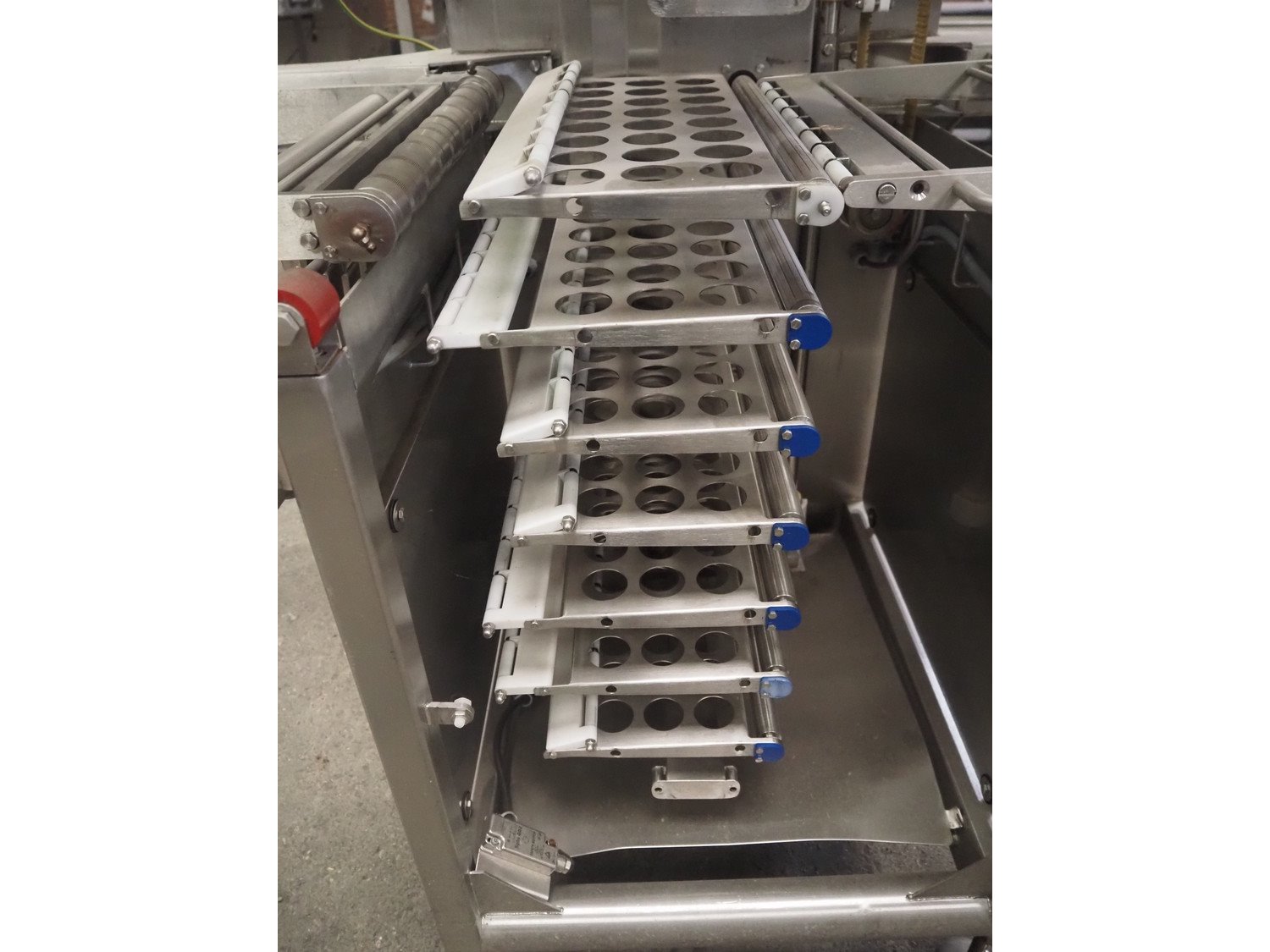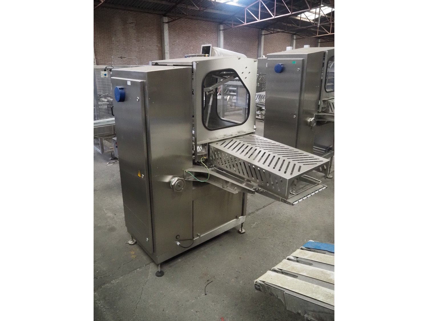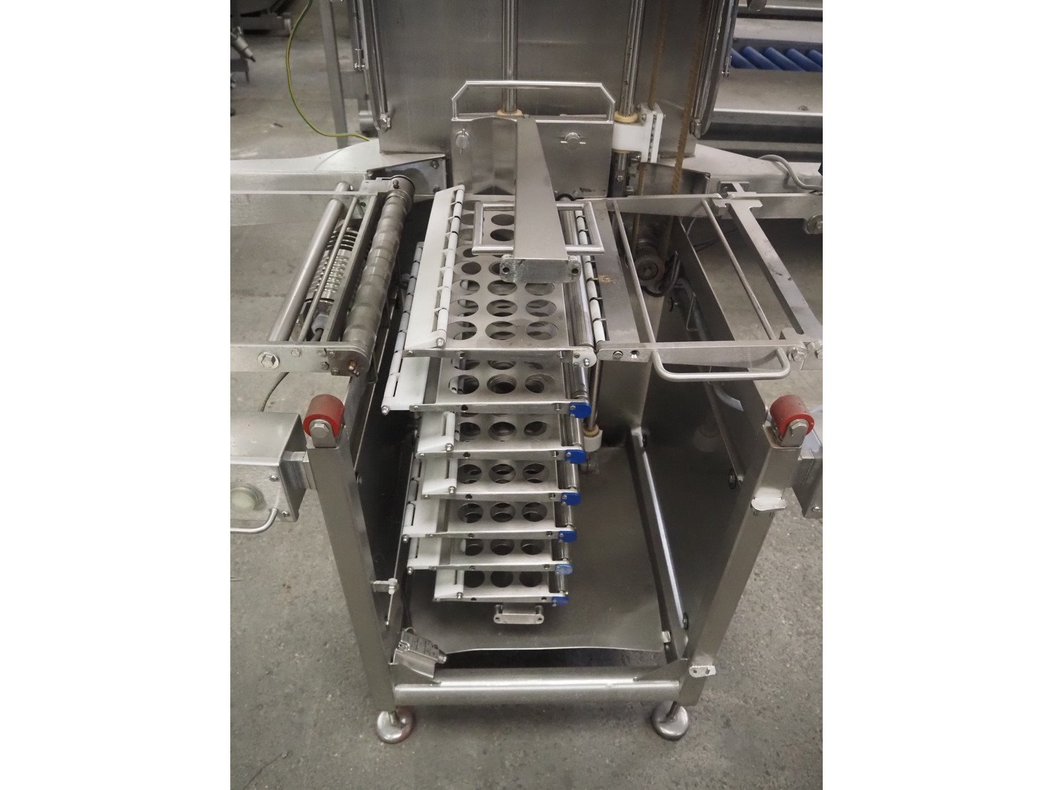 Marel Limited vertical buffer, model: vertical buffer, serial number: 1970010, year of construction: 10-01-2011, 400 V, 3 Ph, 50 Hz, 6/10 A, weight: 410 Kg, belt width: 400 mm, 7 floors, dye: (24x each floor) Ø 40 mm, total dimensions: 2050 mm x 1200 mm x 1900 mm. Incomplete.