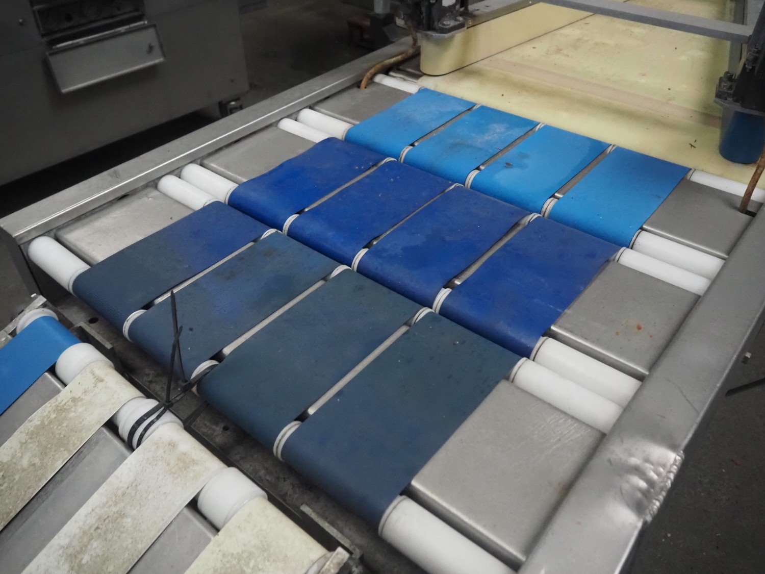 4 to 1 inliner, plastic belts, belt width: (4x) 80 mm, (12x) 120 mm, (2x) 75 mm, (1x) 660 mm, total dimensions: 2300 mm x 1100 mm x 1150 mm.