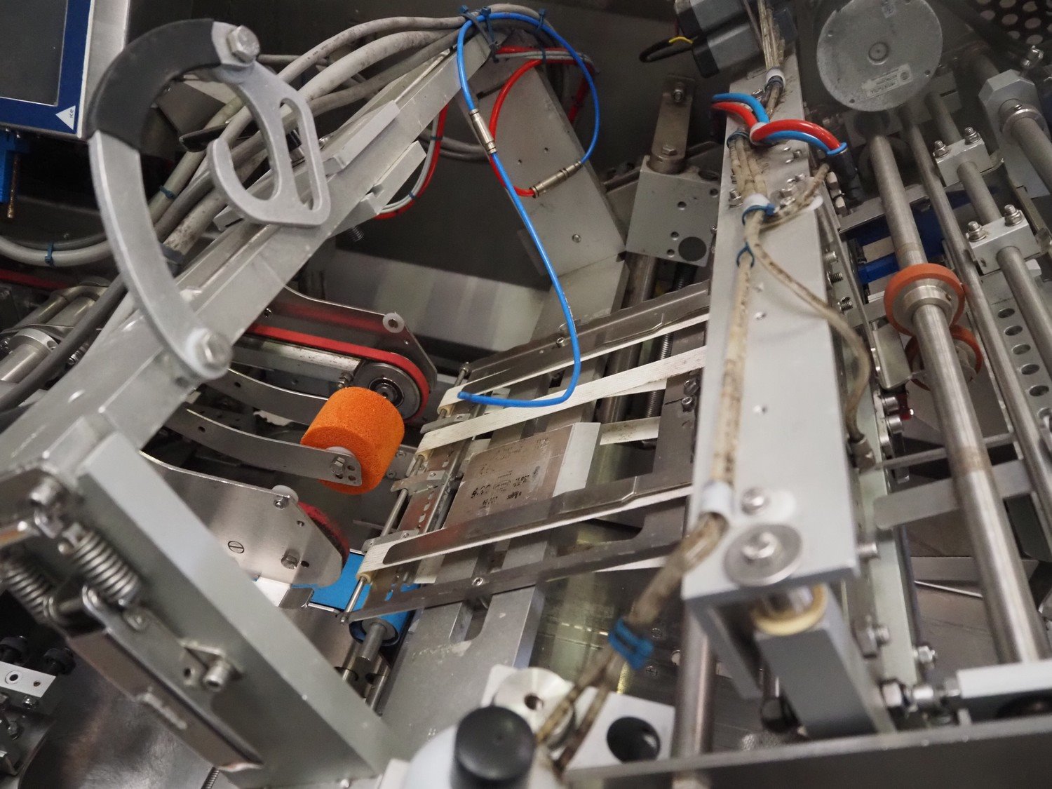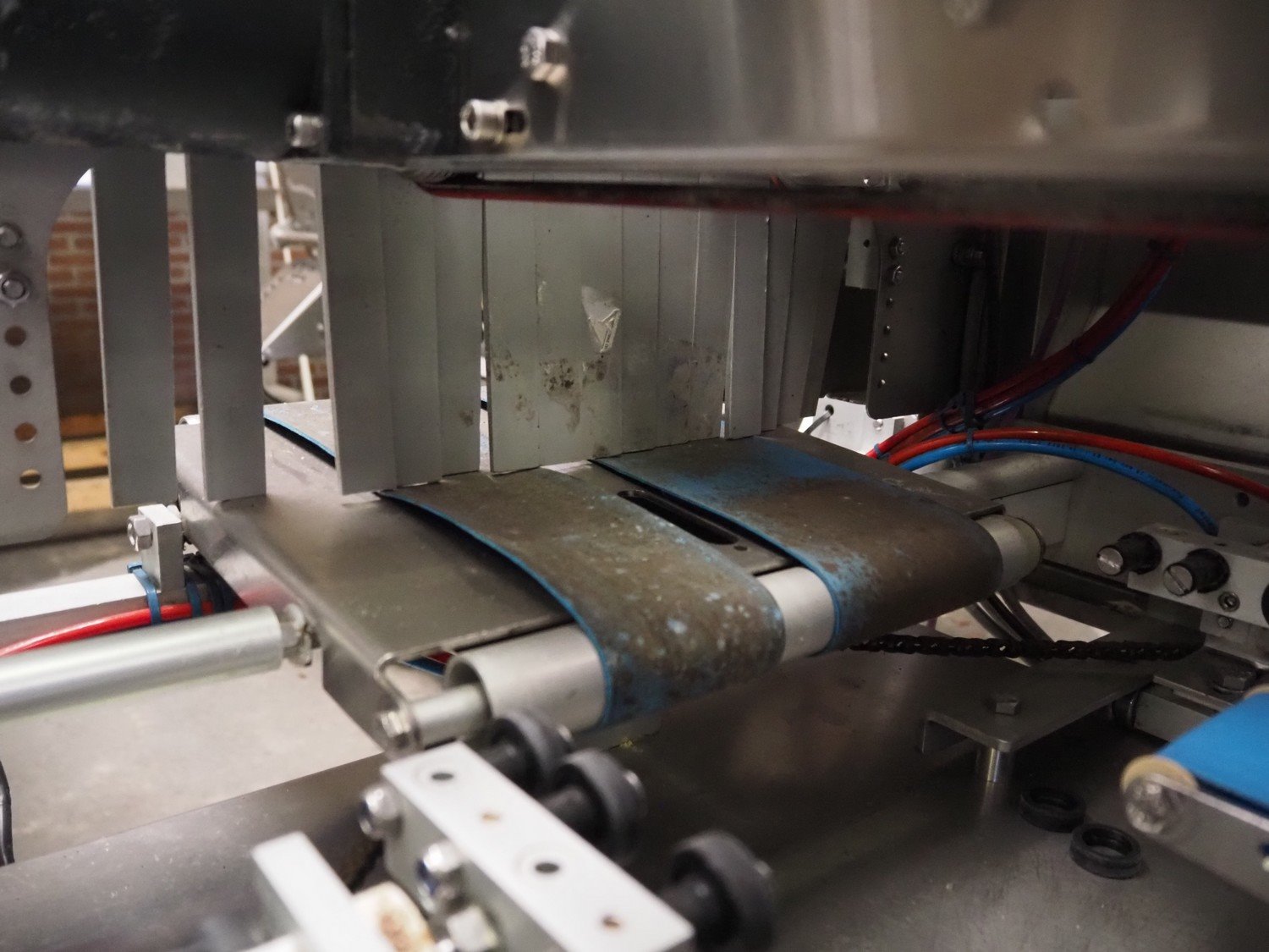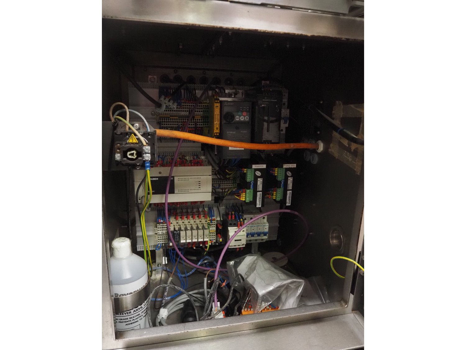 Ravenwood Packaging LTD linerless label applicator with ZodiacHS inkjet printer, serial number: 0801/2015, 220/240 V, 1 Ph, 50/60 Hz, 11 A, total dimensions: 1300 mm x 800 mm x 1600 mm. Missing belts.