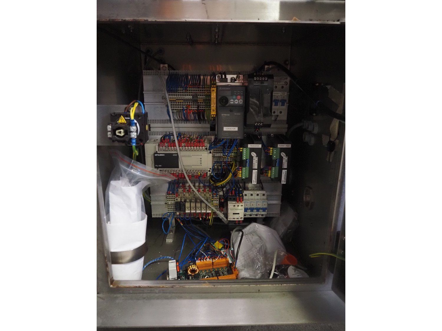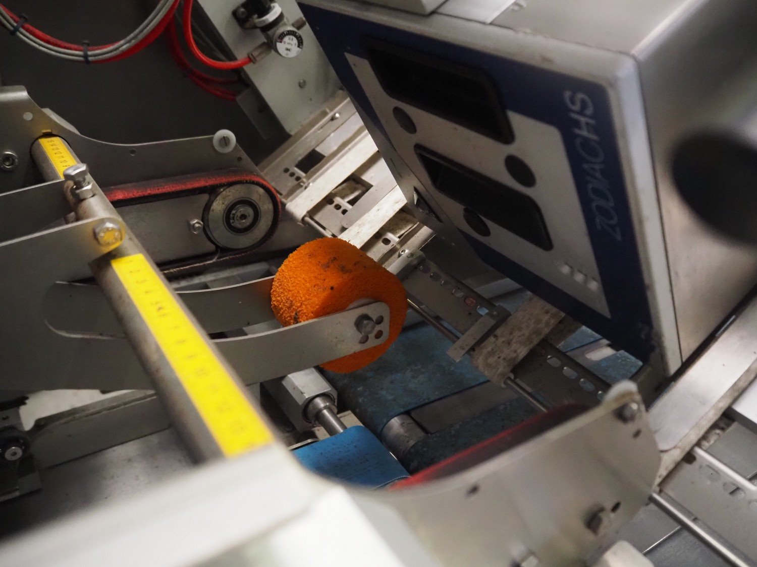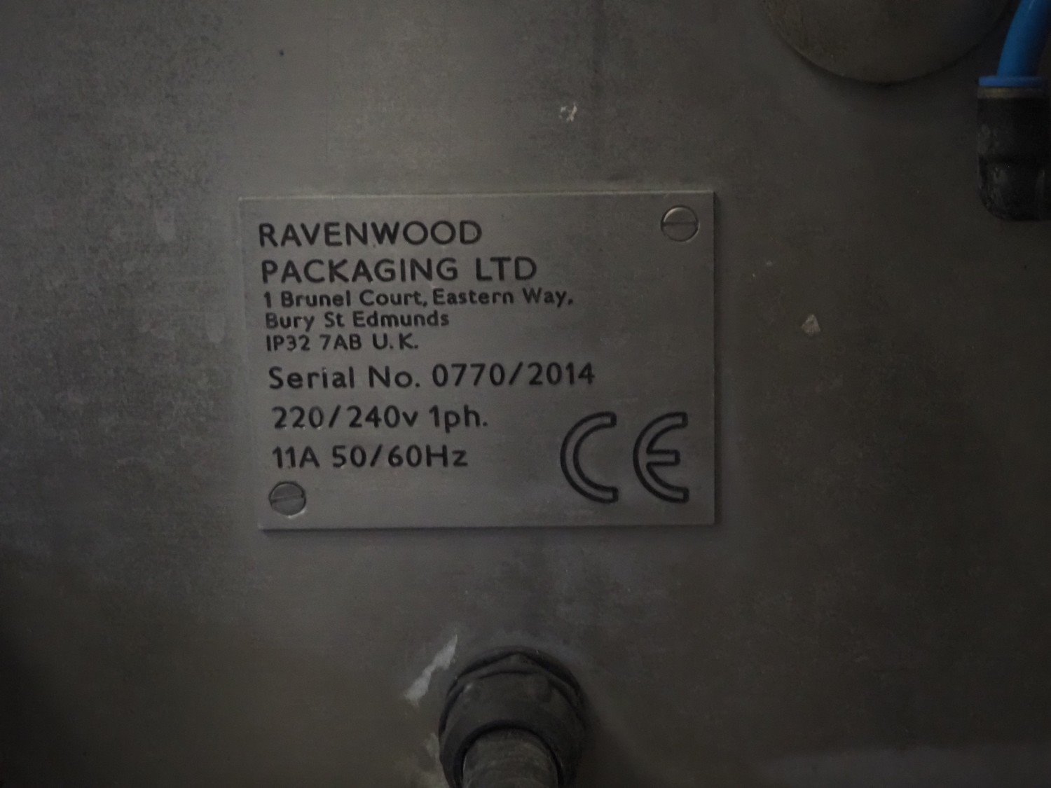 Ravenwood Packaging LTD lineless label applicator with ZodiacHS inkjet printer, serial number: 0770/2014, 220/240 V, 1 Ph, 50/60 Hz, 11 A, plastic belt, belt width: (2x) 100 mm, total dimensions: 1200 mm x 1050 mm x 1550 mm. Incomplete.