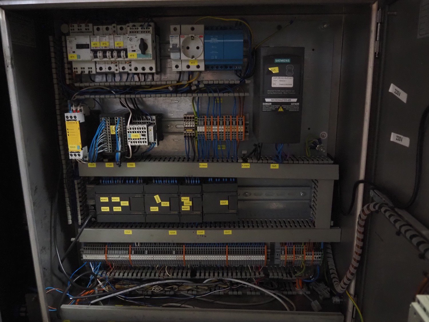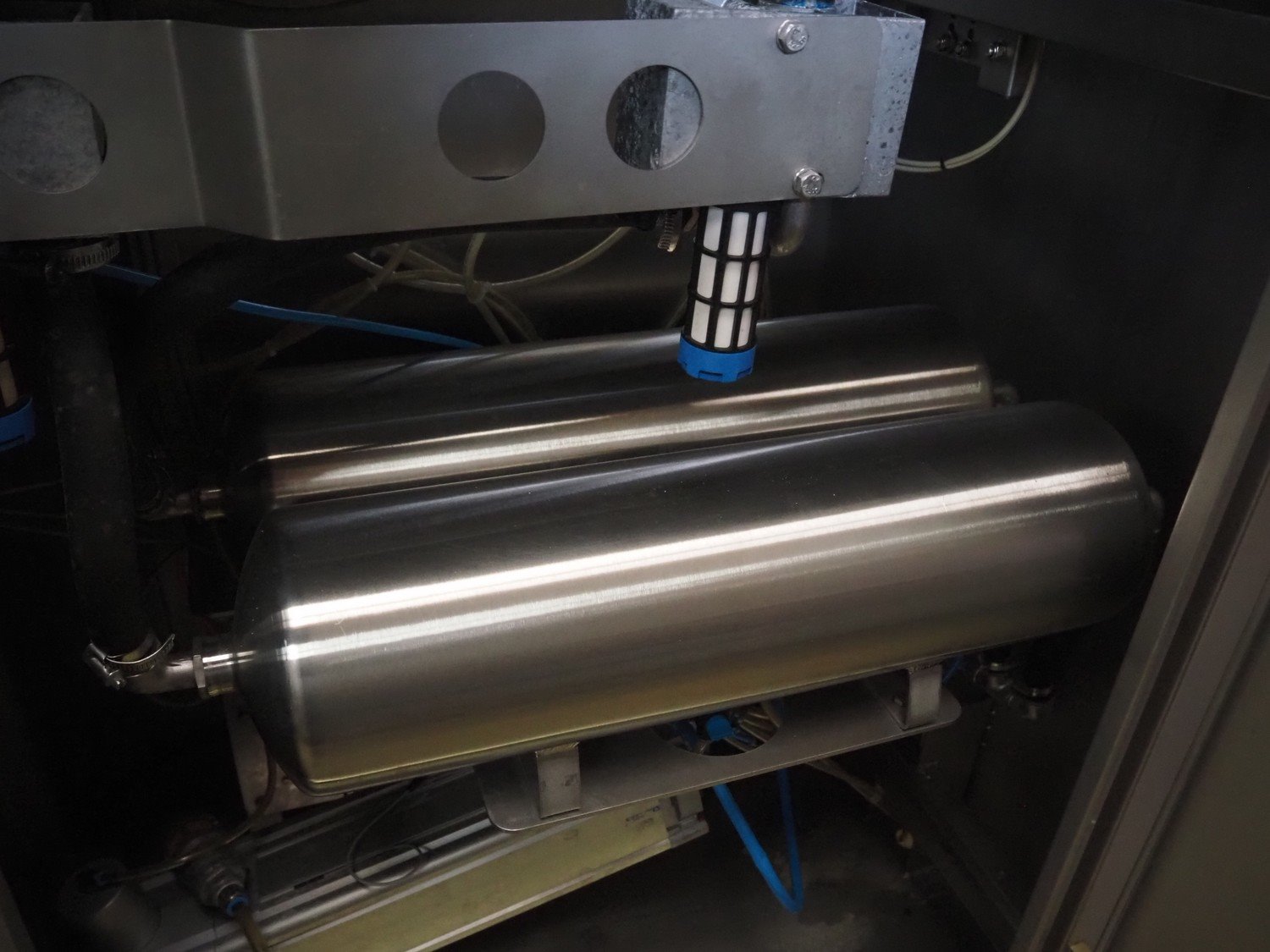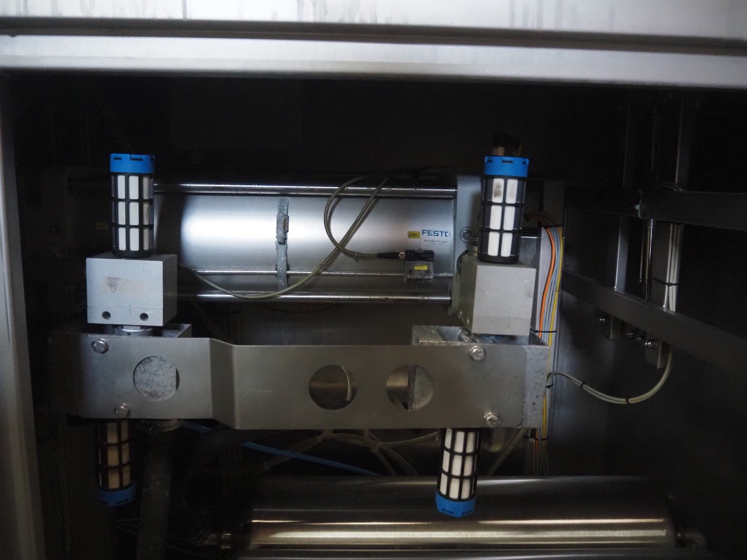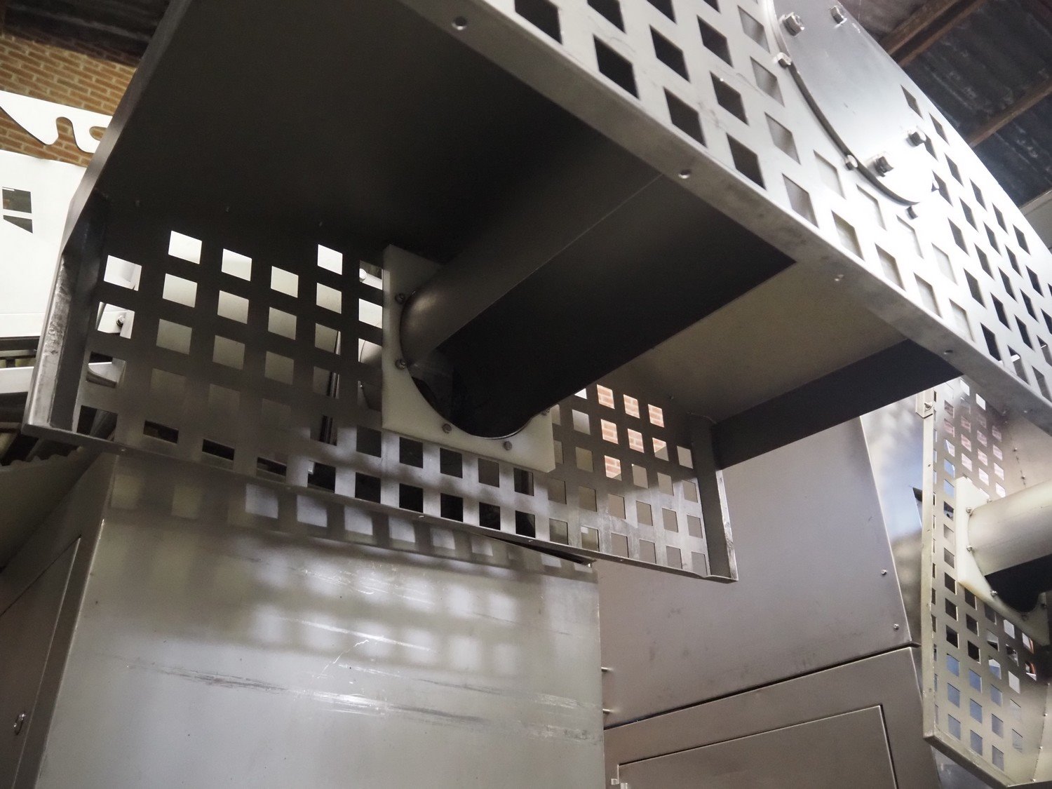 Marel meat press, type: Presso-Automat V4.2, number: 123107, diameter form: 170 mm, plastic belt, belt width: 600 mm, total dimensions: 3050 mm x 2400 mm x 1800 mm.