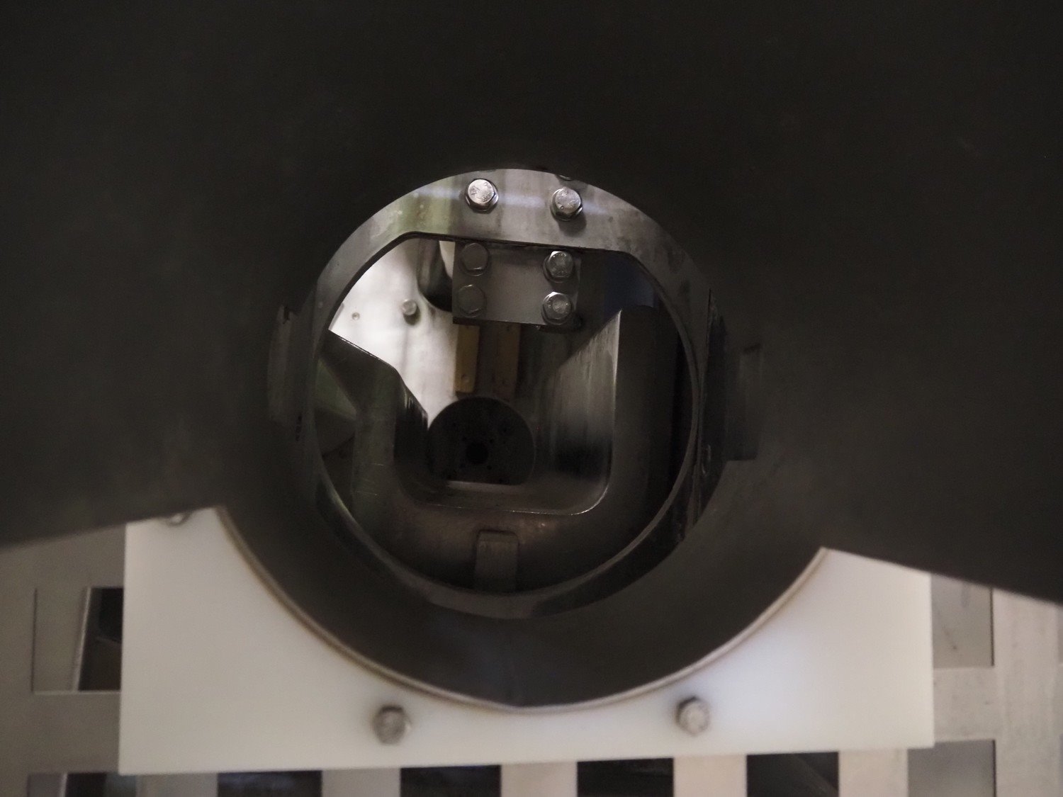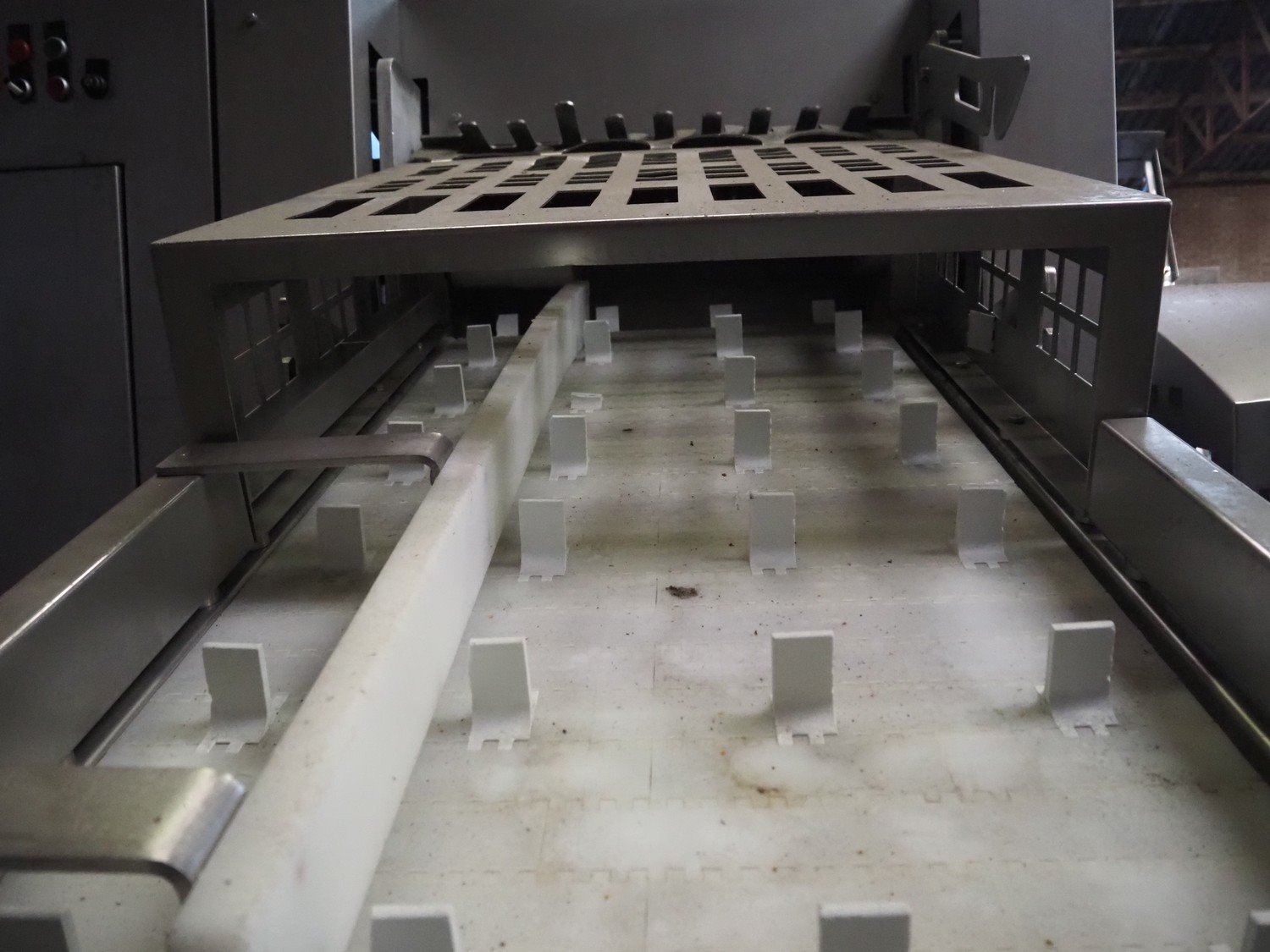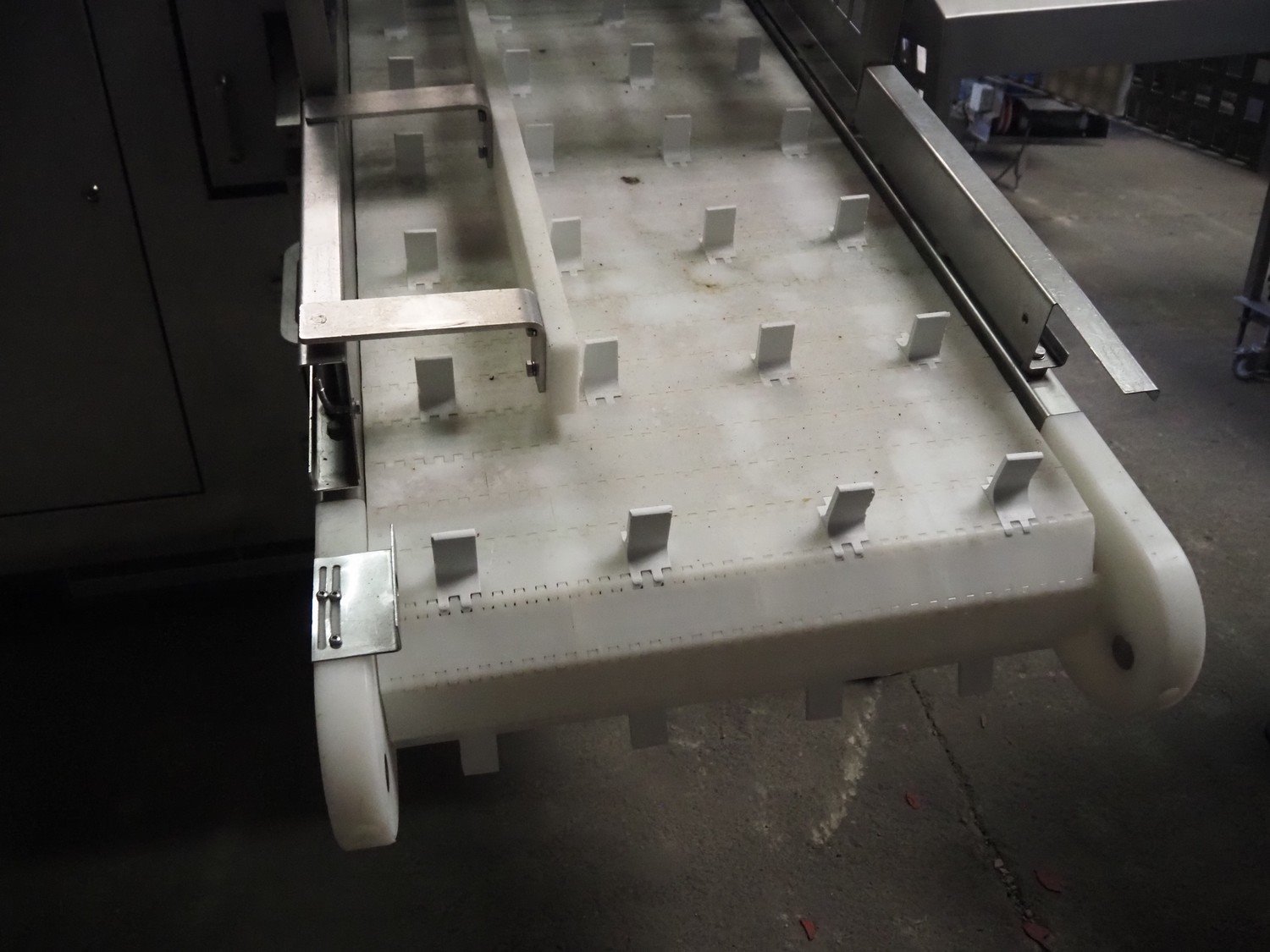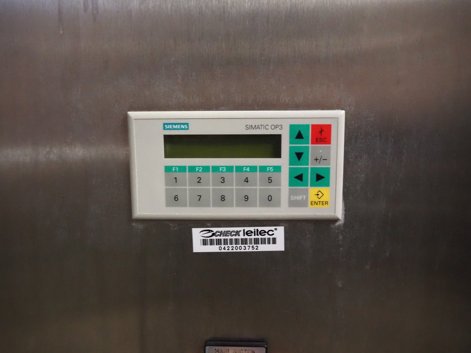 Marel meat press, type: Presso-Automat V4.2, number: 123107, diameter form: 170 mm, plastic belt, belt width: 600 mm, total dimensions: 3050 mm x 2400 mm x 1800 mm.