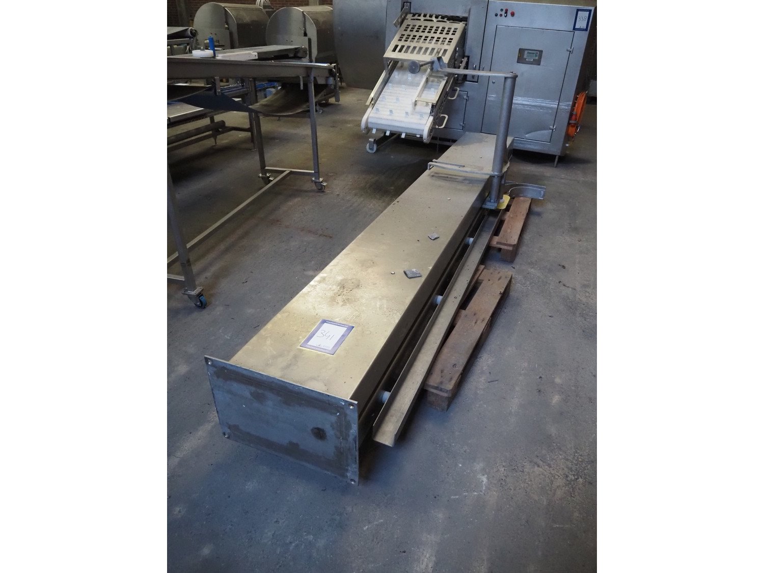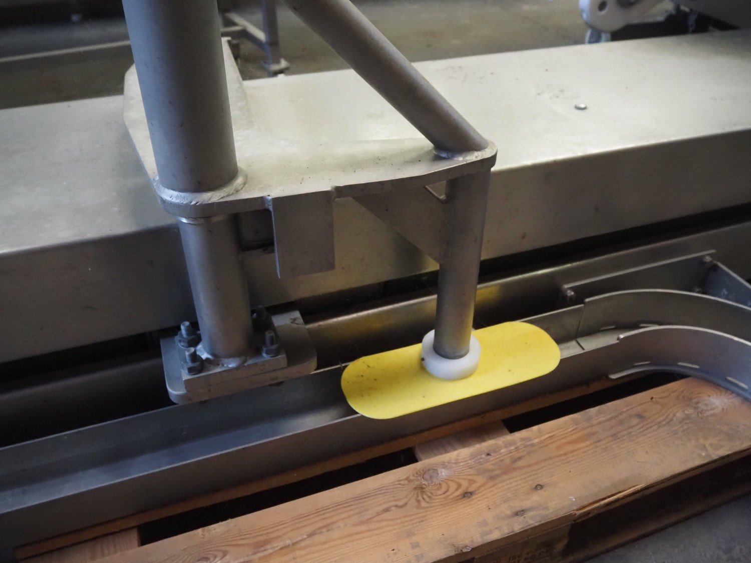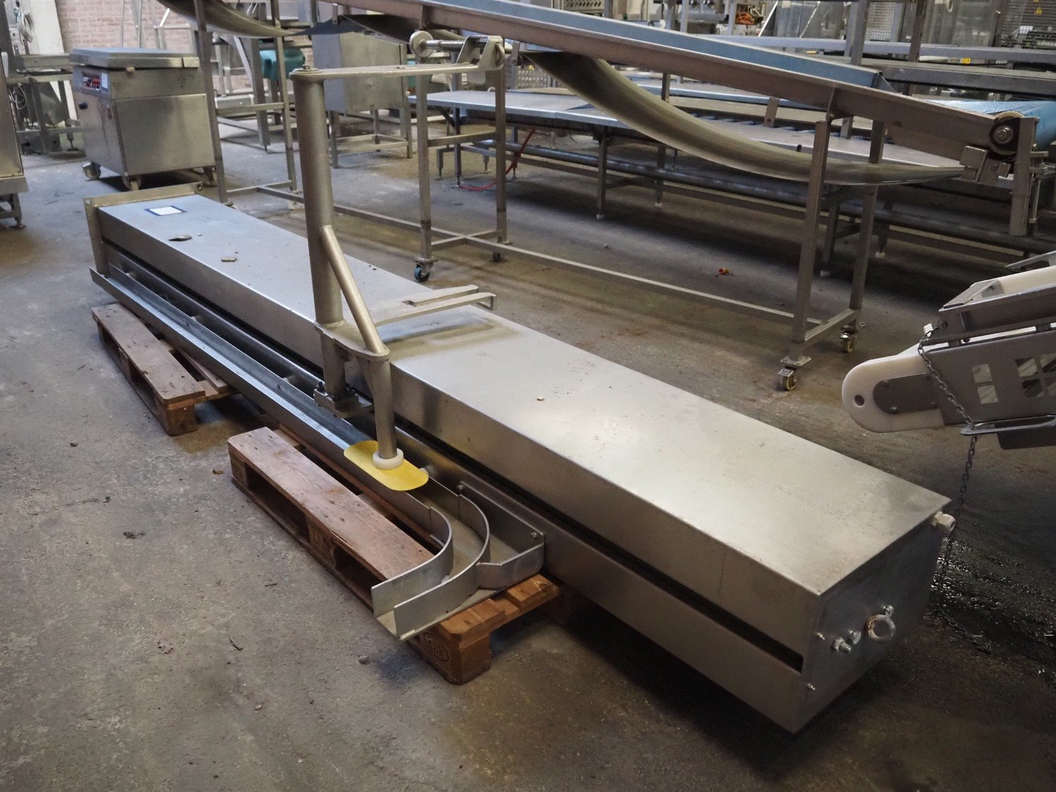 Lachnit lifter for 200 litres meat bins, type: 300, serial number: 1282, year of construction: 1999, 400 V, 50 Hz, 1.1 kW, loading capacity: 300 kg, elevating height: 3300 mm, total dimensions: 4000 mm x 650 mm x 1300 mm.