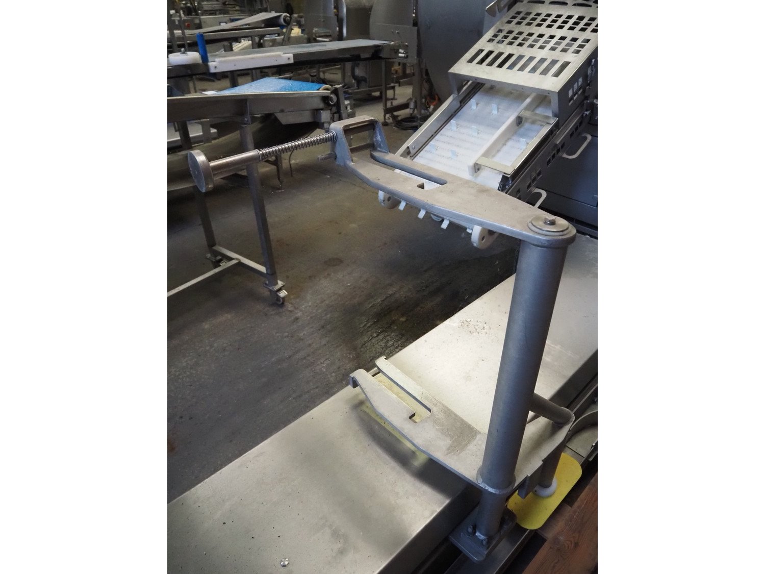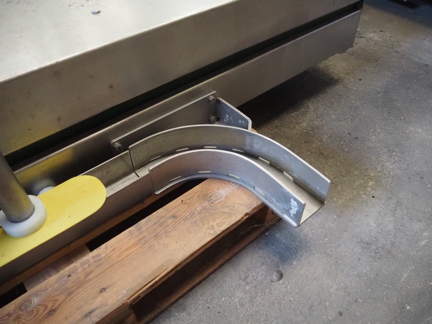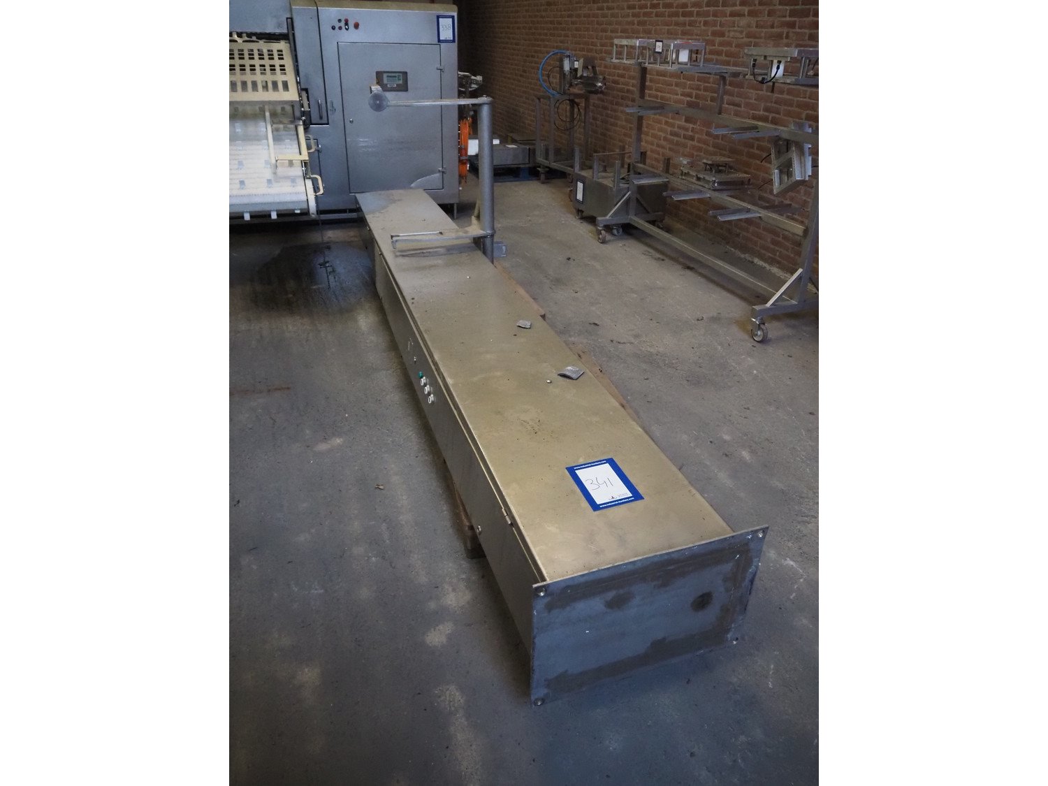 Lachnit lifter for 200 litres meat bins, type: 300, serial number: 1282, year of construction: 1999, 400 V, 50 Hz, 1.1 kW, loading capacity: 300 kg, elevating height: 3300 mm, total dimensions: 4000 mm x 650 mm x 1300 mm.