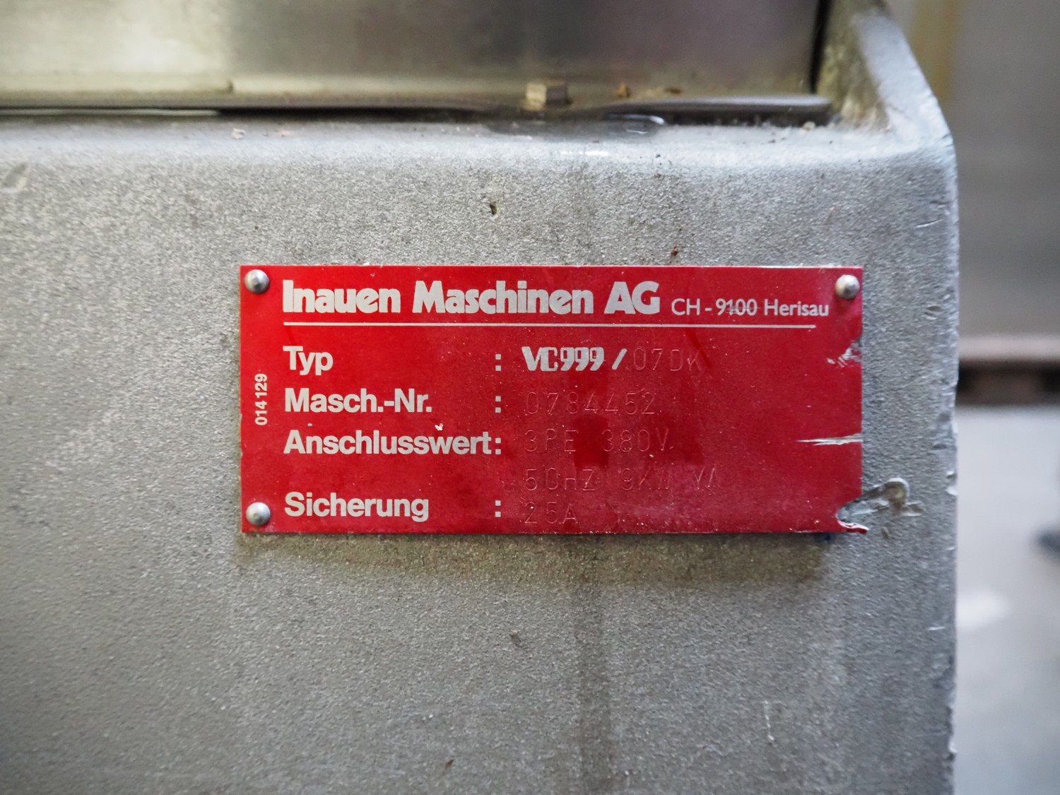 Inauen Maschinen AG mobile vacuum machine, type: VC999/ 07DK, machine number: 0784452, 380 V, 3 Ph, 50 Hz, 25 A, 9 kW, with Rietschle vacuum pump, total dimensions: 1200 mm x 850 mm x 1100 mm.