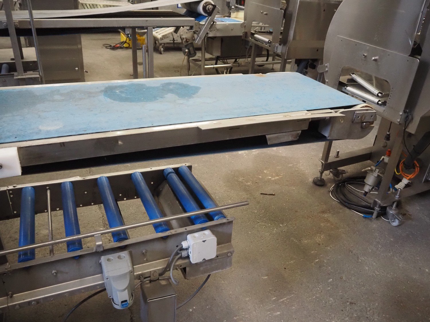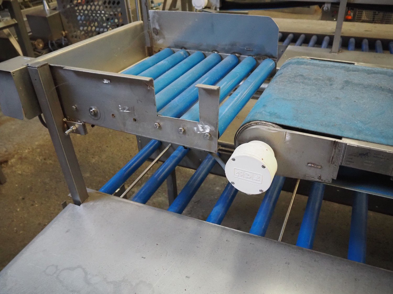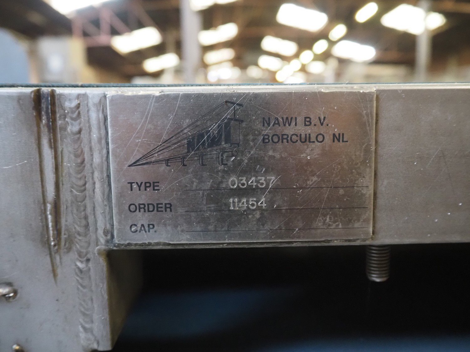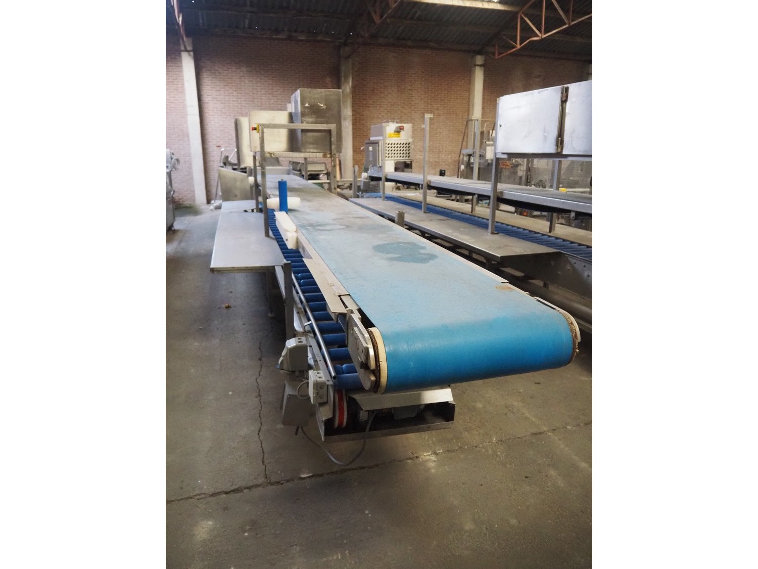 Nawi b.v. transport belt ,type: 03437, plastic belt, belt width: 465 mm, plastic rollers, rollers width: 530 mm and 440 mm, total dimensions: 7000 mm x 1450 mm x 1940 mm.