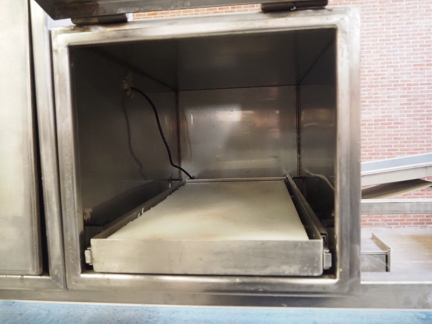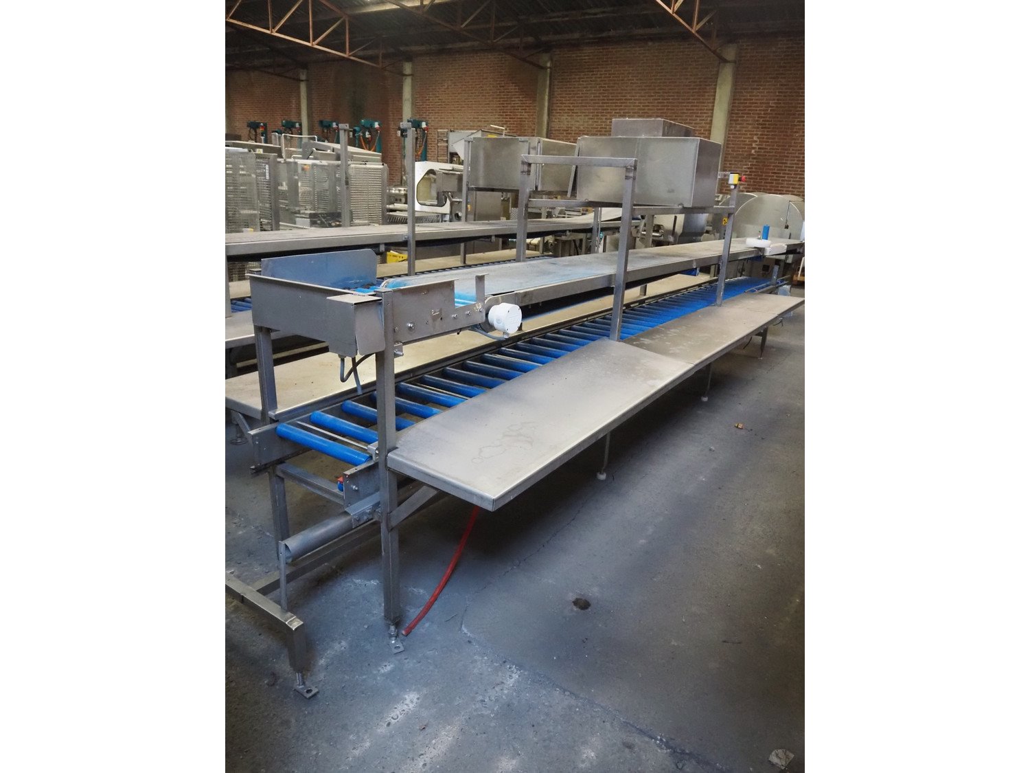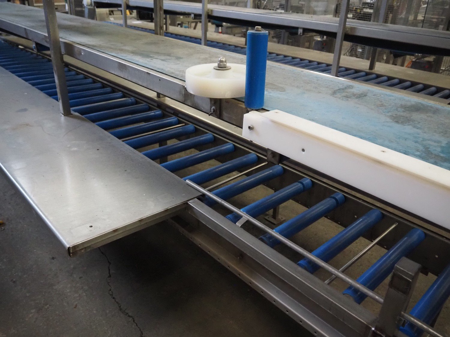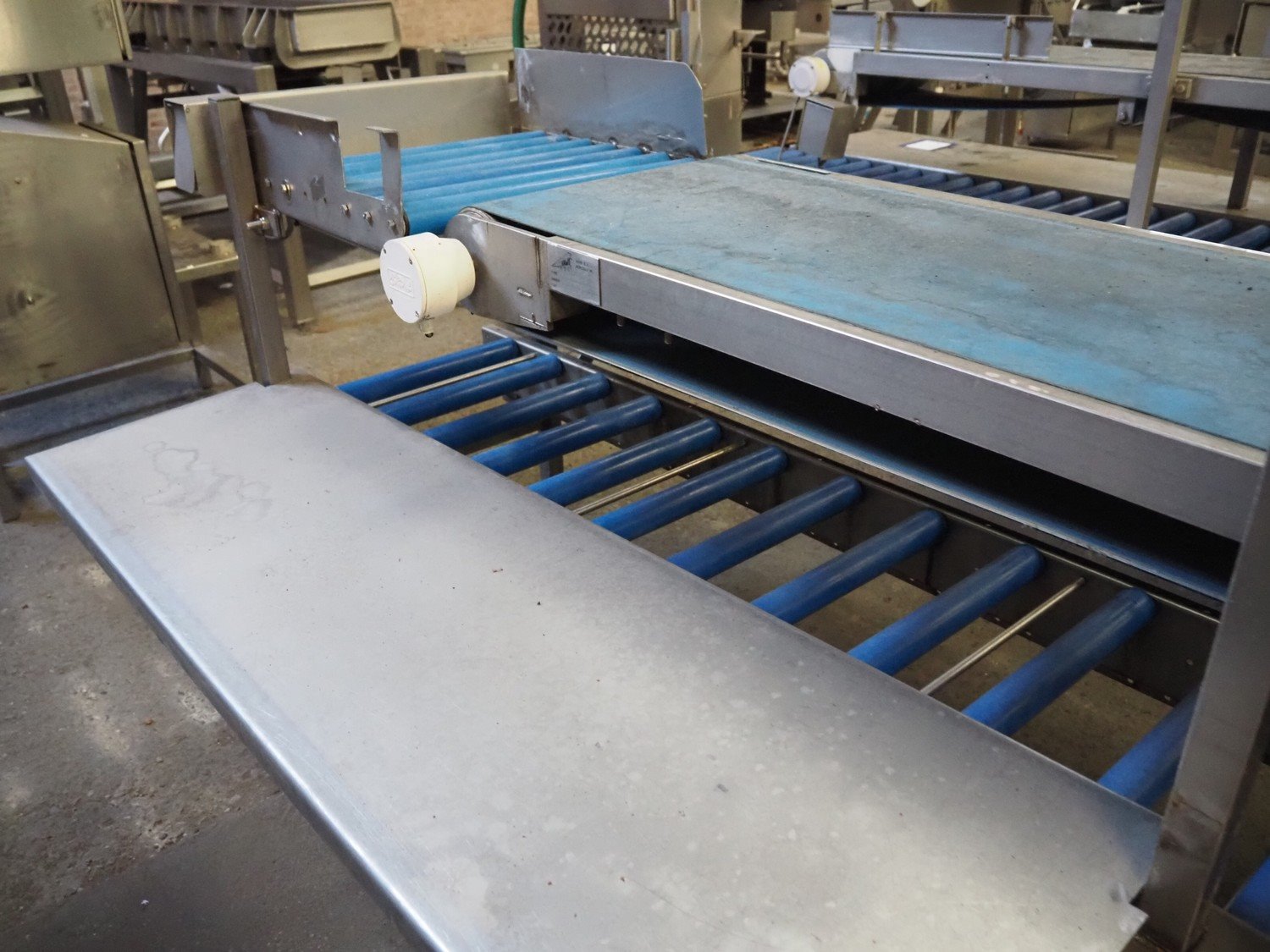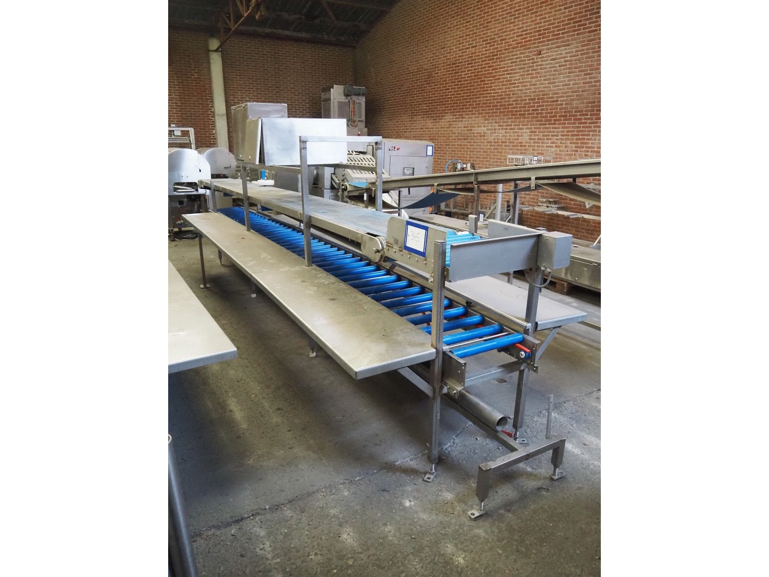 Nawi b.v. transport belt ,type: 03437, plastic belt, belt width: 465 mm, plastic rollers, rollers width: 530 mm and 440 mm, total dimensions: 7000 mm x 1450 mm x 1940 mm.