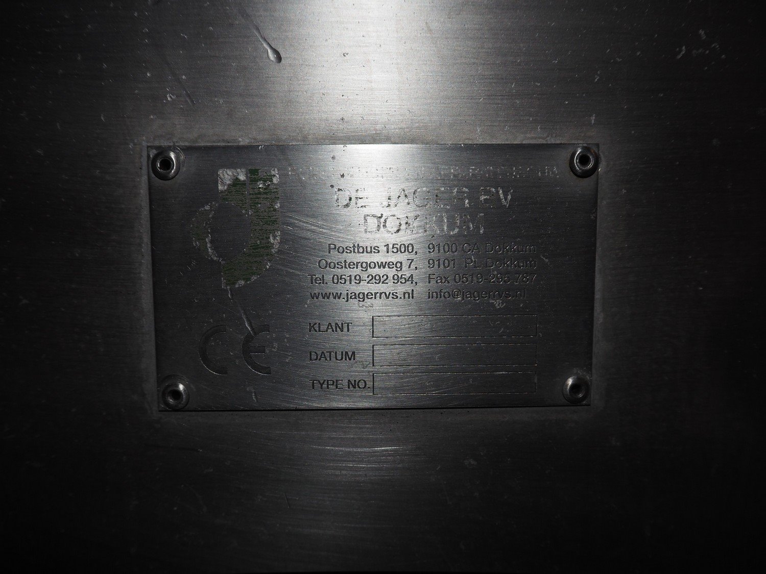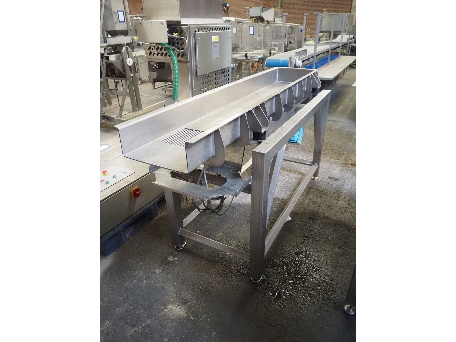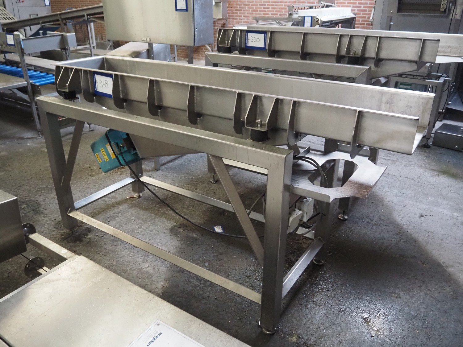 De Jager BV s/s vibrating gutter, dimensions: 2250 mm x 780 mm x 1220 mm.