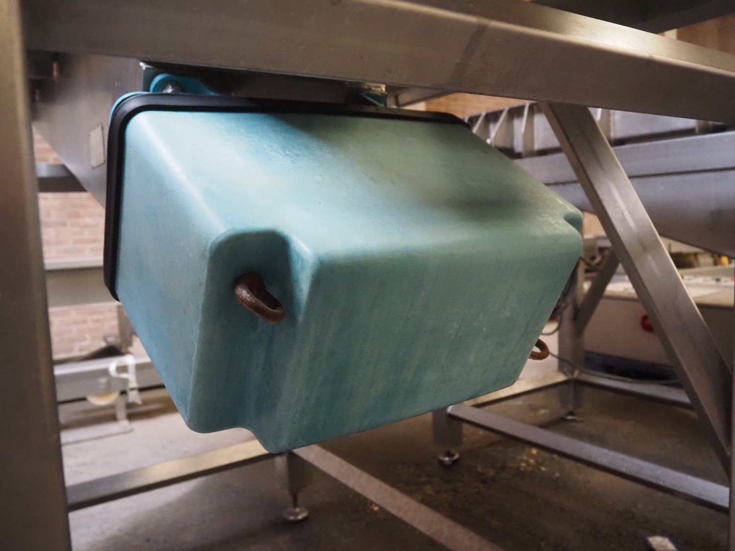De Jager BV s/s vibrating gutter, dimensions: 2080 mm x 880 mm x 1380 mm.