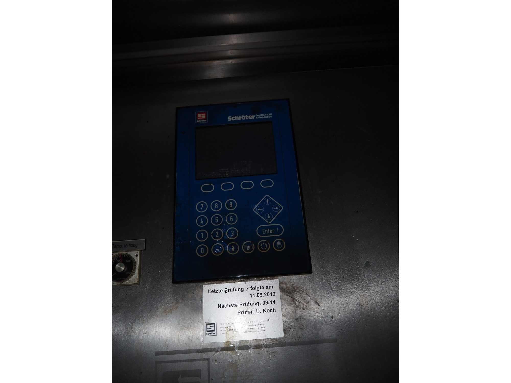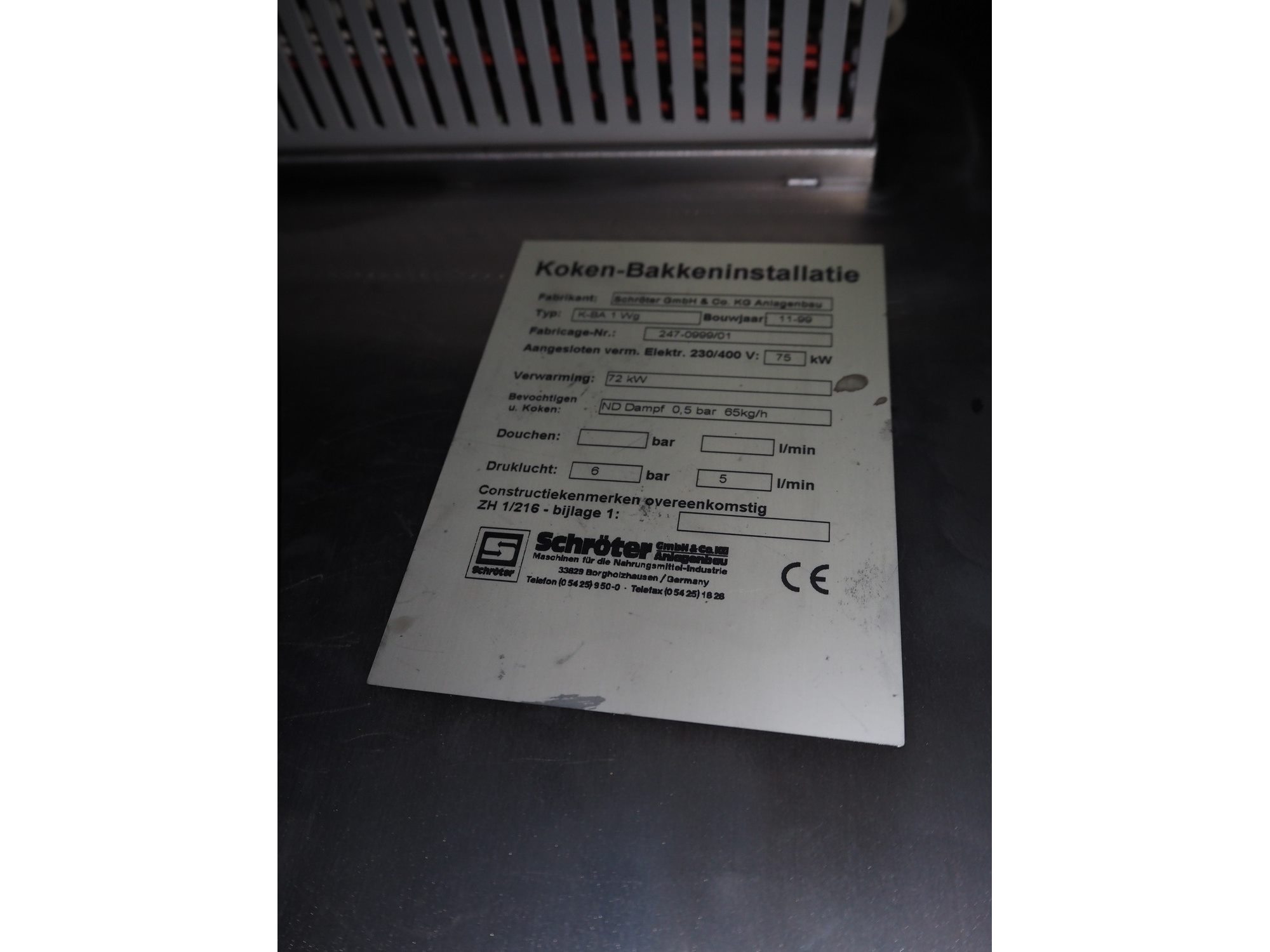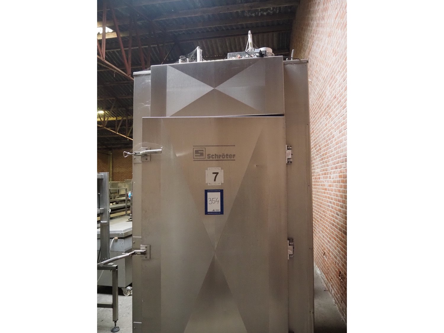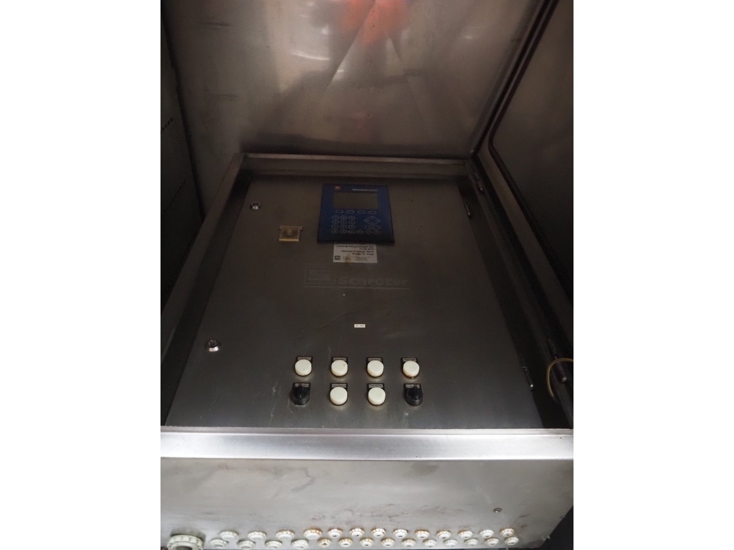 Schröter GmbH cooking chamber, type: K-BA 1 Wg, number: 247-0999/01, year of construction: 11-1999, inside dimensions: 1100 mm x 1100 mm x 2250 mm, total dimensions: 1620 mm x 1520 mm x 3200 mm. Including 2 switch cabinets, dimensions: (2x) 1000 mm x 750 mm x 350 mm.