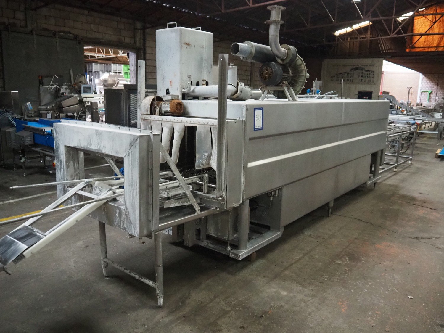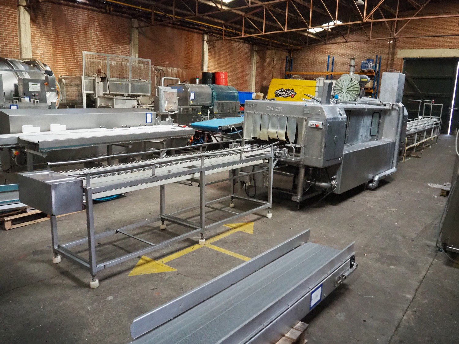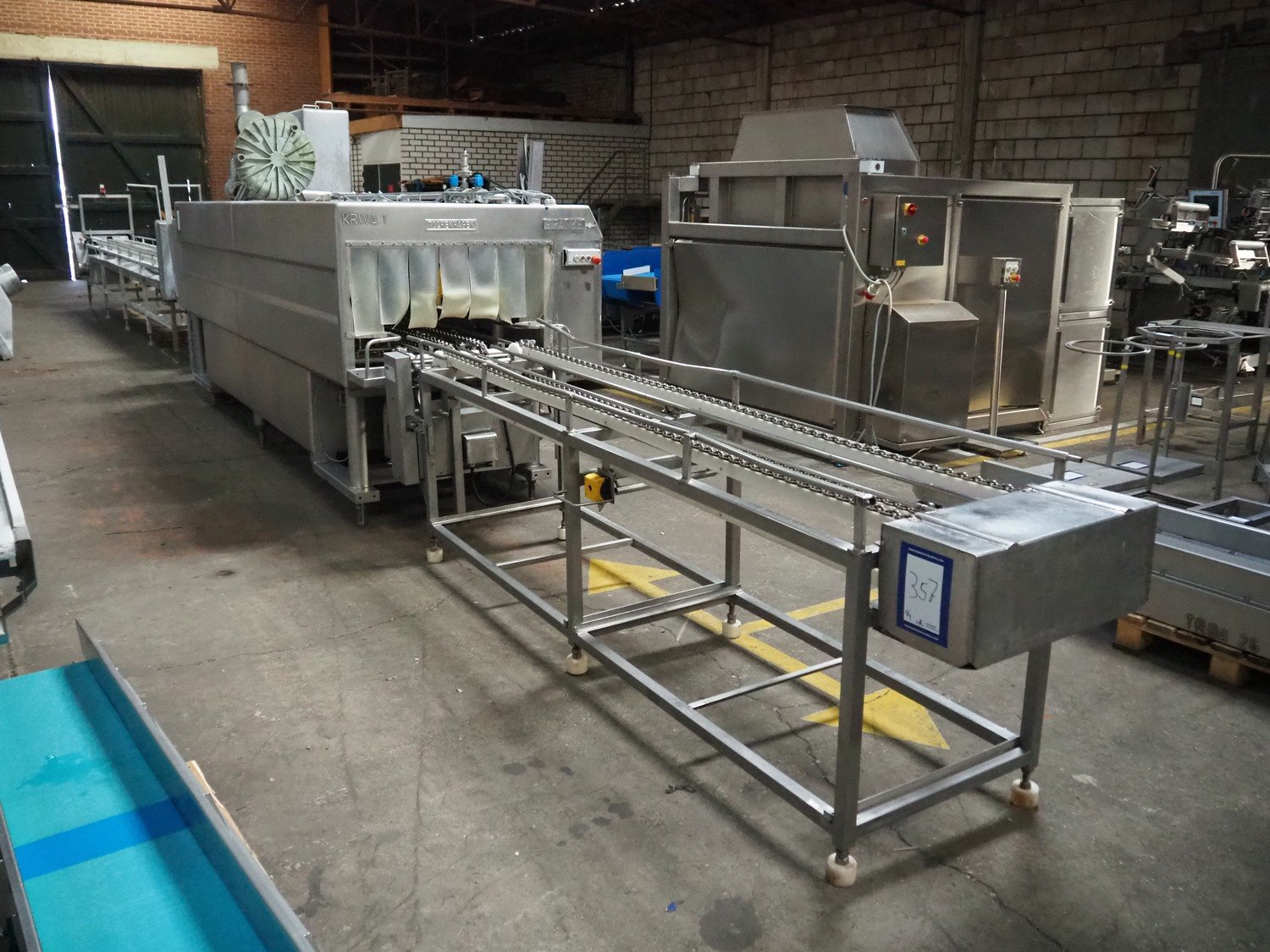 Tuchenhagen crate washing machine, type: KT 120L, number: 550, clearance: 610 mm x 450 mm, total dimensions: 16400 mm x 1600 mm x 2300 mm.