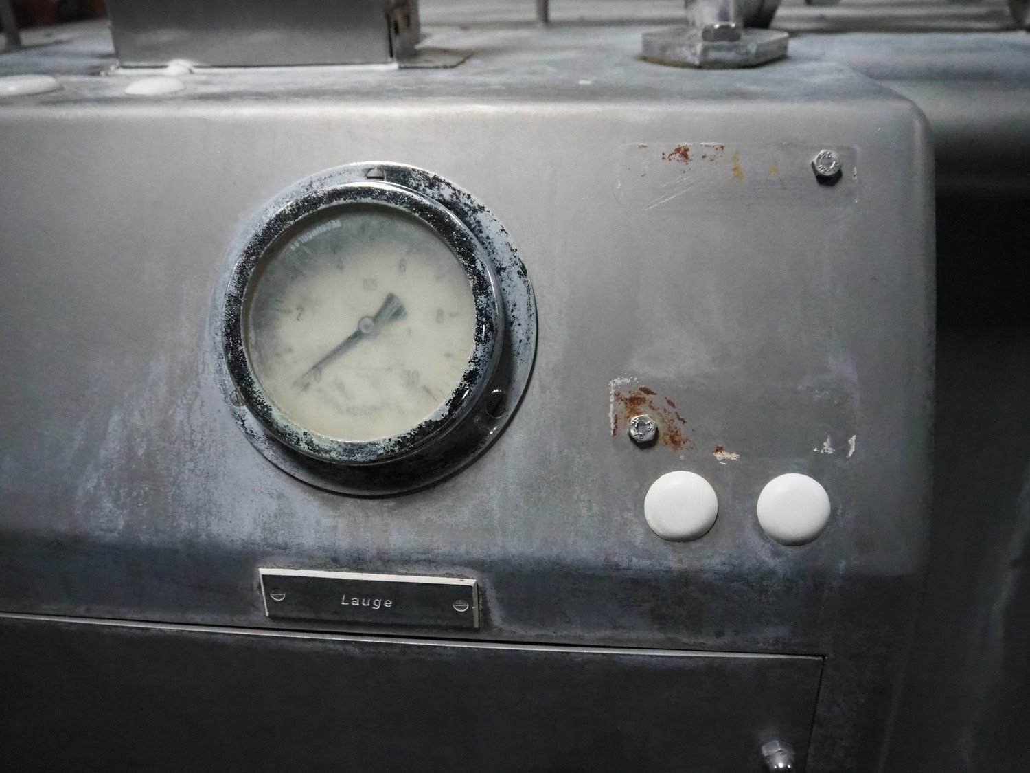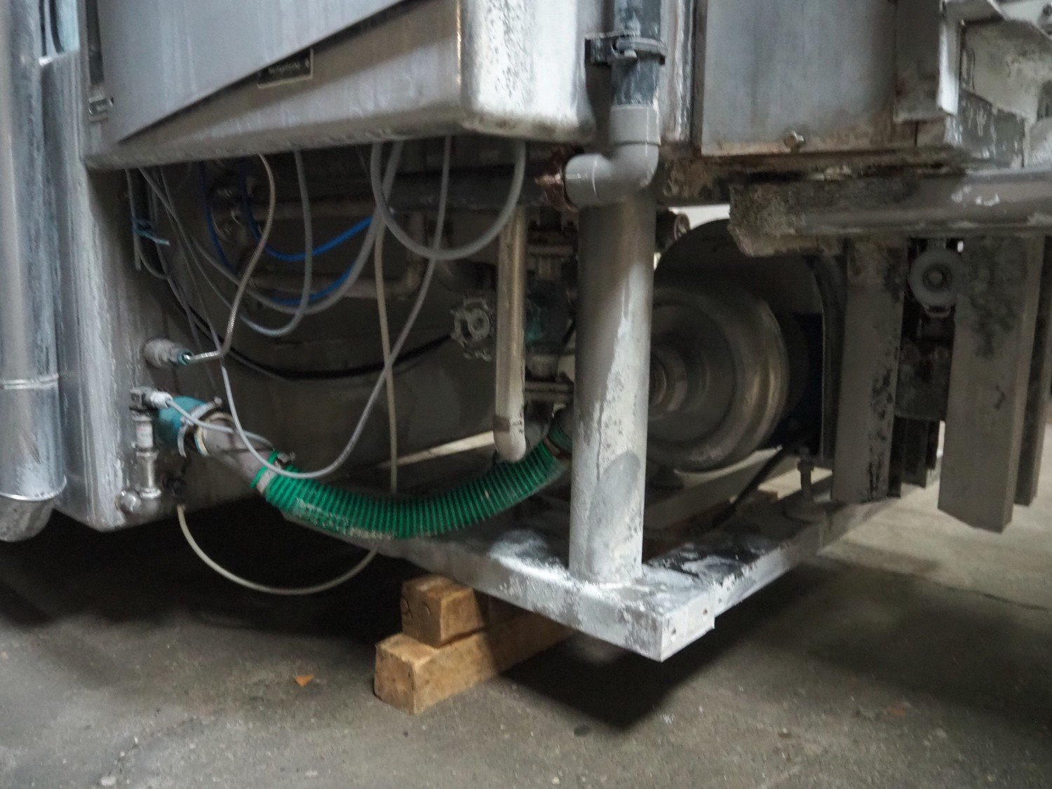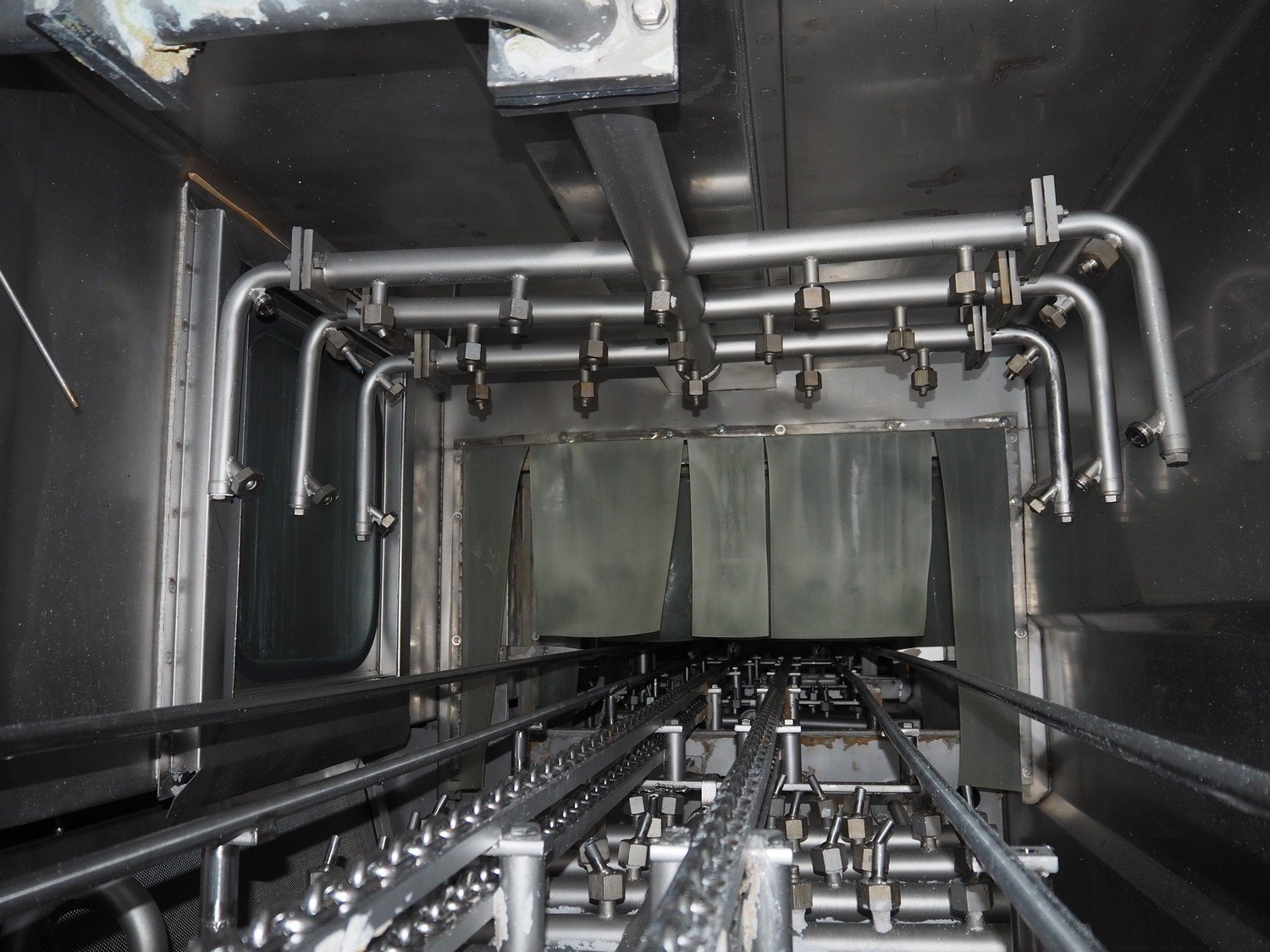 Tuchenhagen crate washing machine, type: KT 120L, number: 550, clearance: 610 mm x 450 mm, total dimensions: 16400 mm x 1600 mm x 2300 mm.
