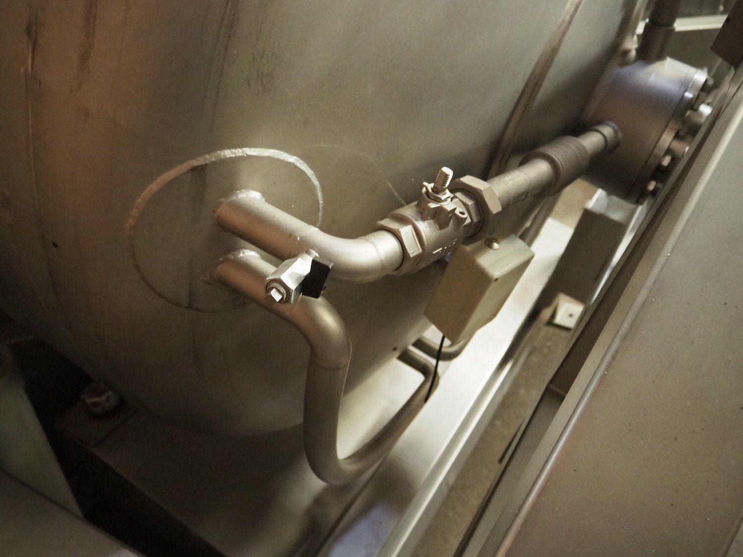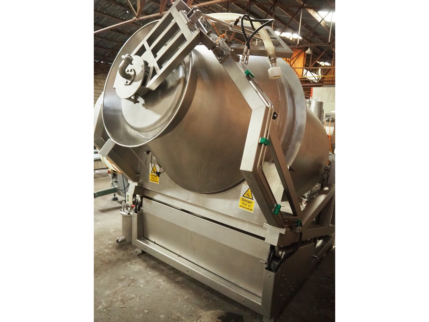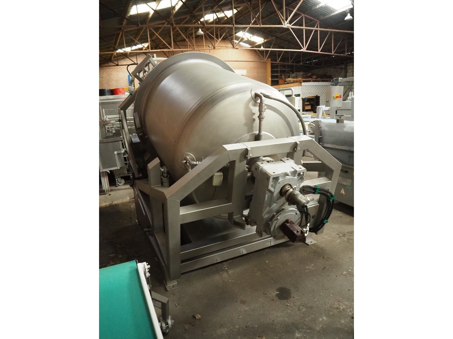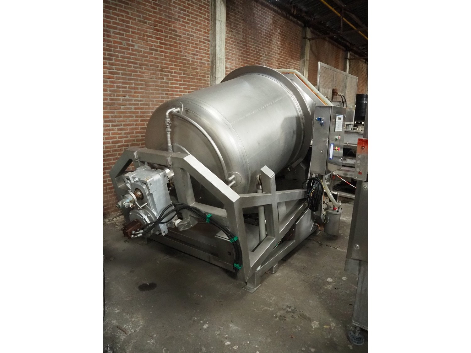 Danfotech vacuum tumbler, type: MA3000SDC, serial number: 845, year of construction: 2000, 415 V, 3 Ph, 50 Hz, 2.2/7.5/1.5 kW, capacity: 3000 liter, total dimensions: 3750 mm x 2250 mm x 2500 mm. Without vacuum pump.
