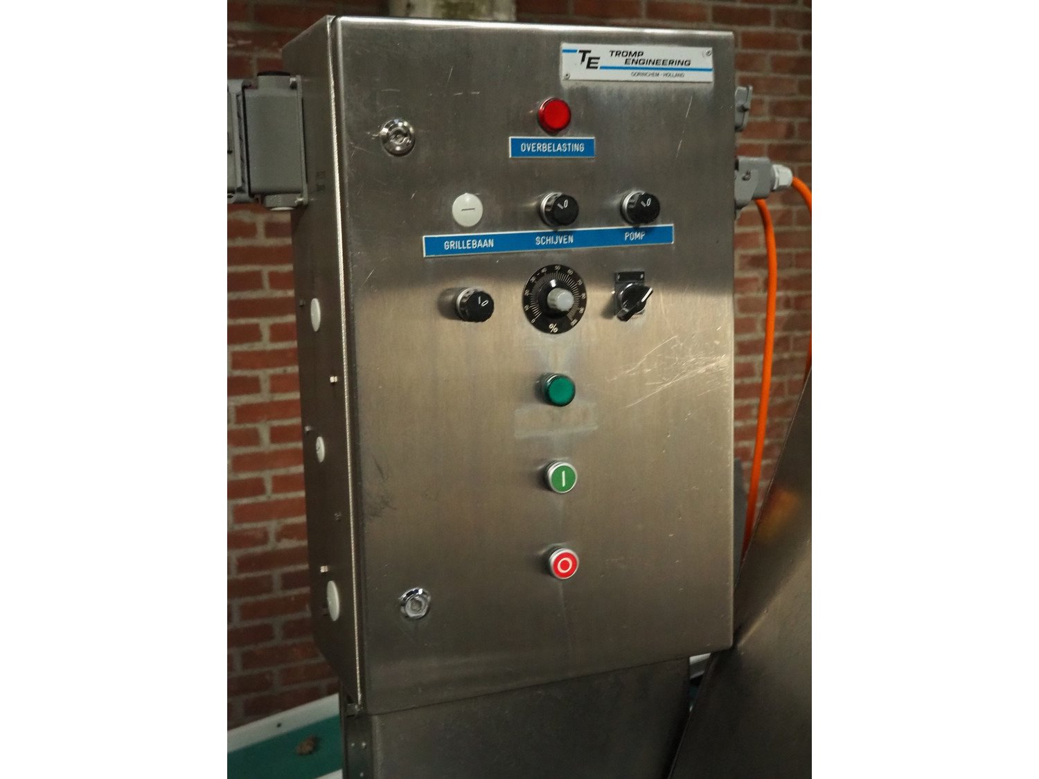 Tromp Engineering wet coating machine, type: PR 519 / PR 529, s/s mesh belt, belt width: 600 mm, total dimensions: 1060 mm x 2420 mm x 1800 mm.