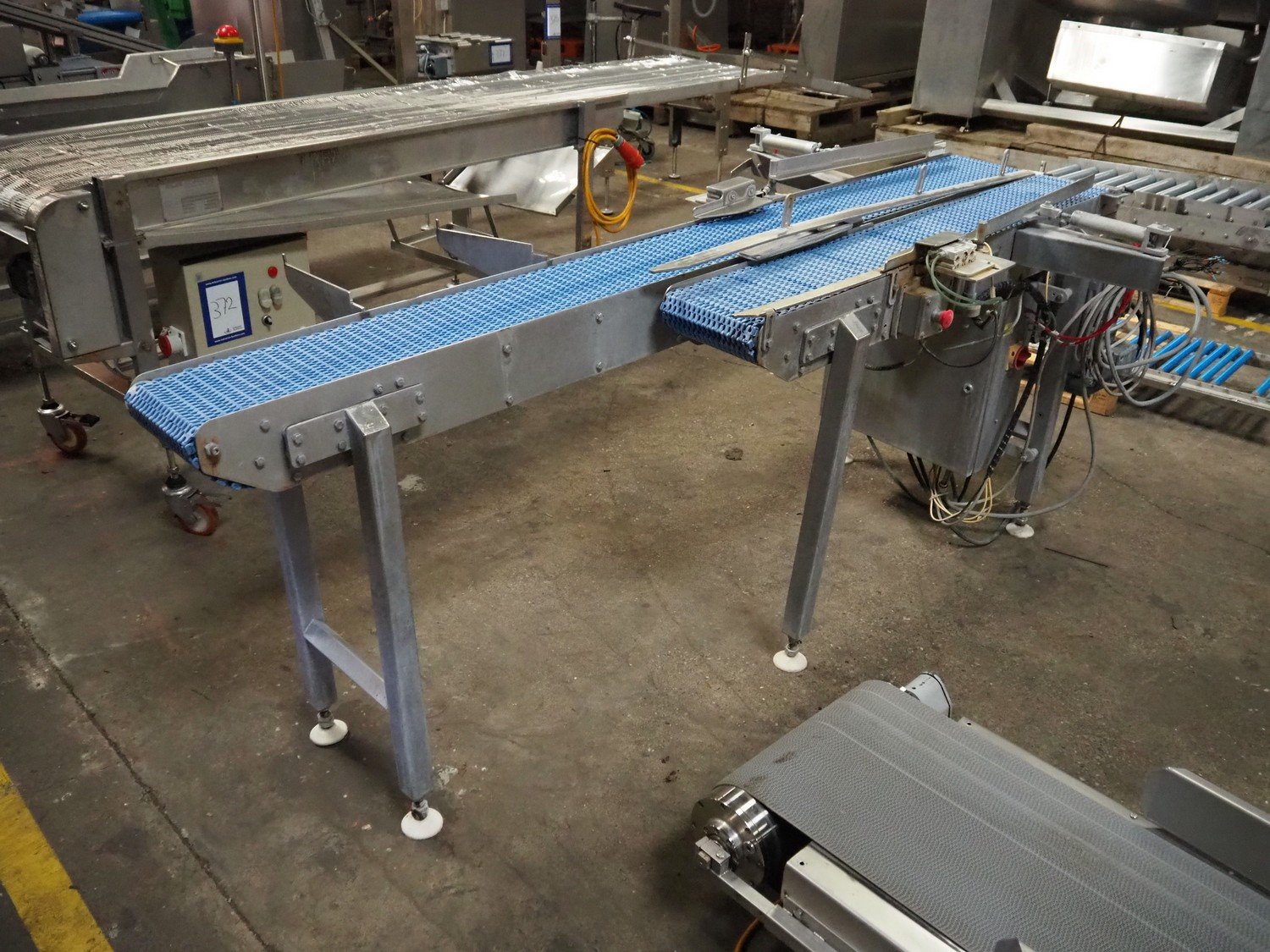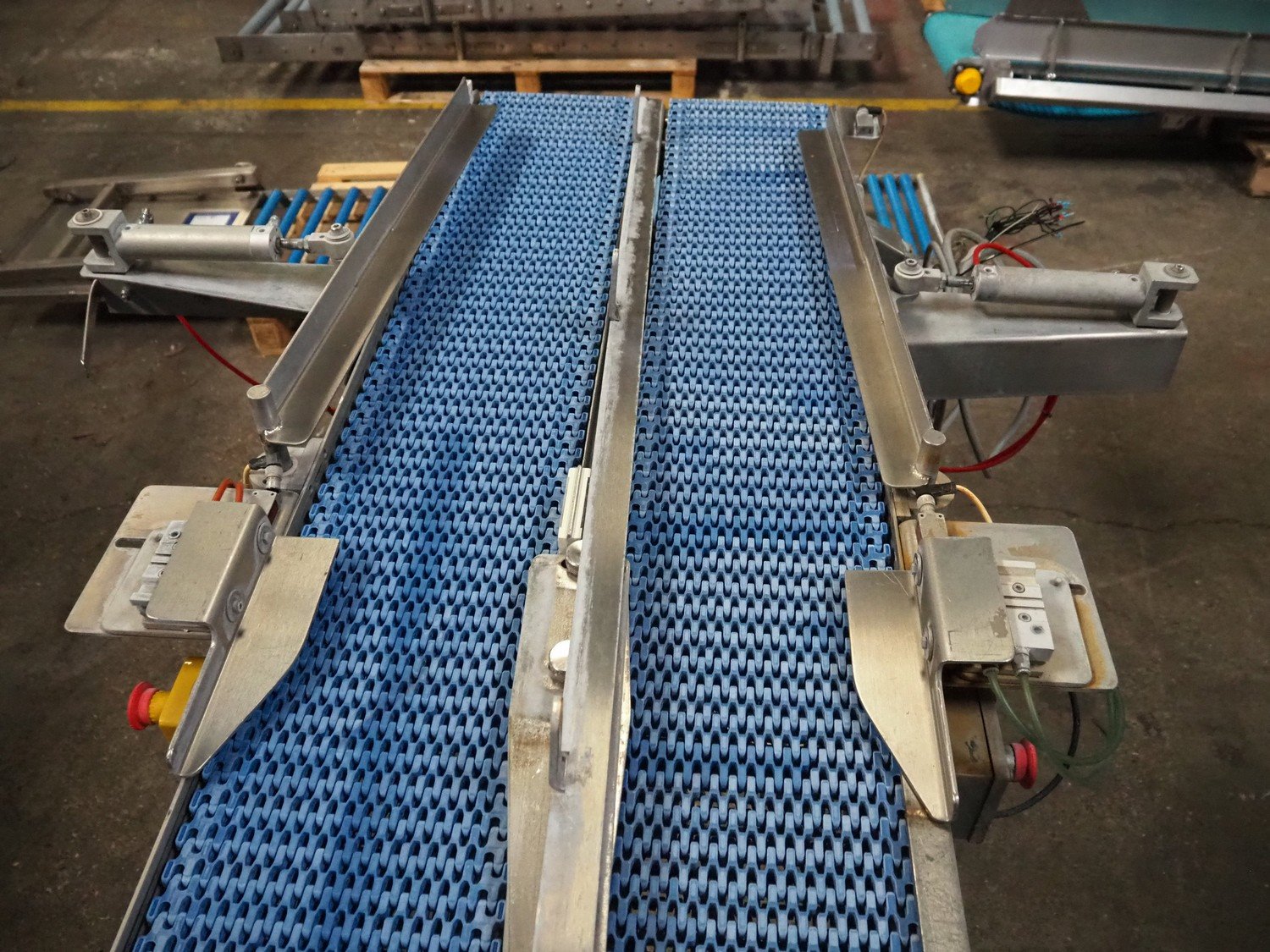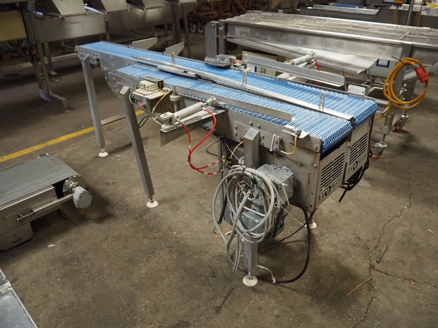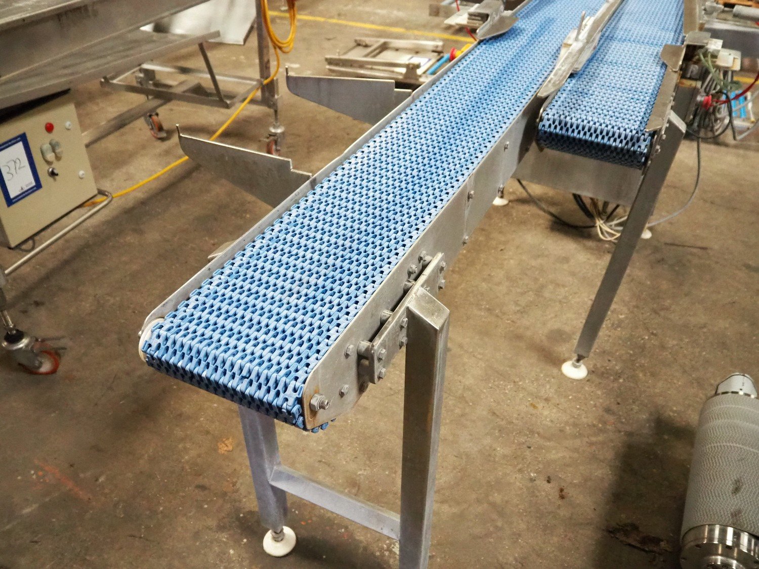 Proseal double transport belt, s/s frame, plastic mesh belt, belt width: (2x) 230 mm, belt length: 2450 mm / 1550 mm, total dimensions: 2500 mm x 1200 mm x 1070 mm.