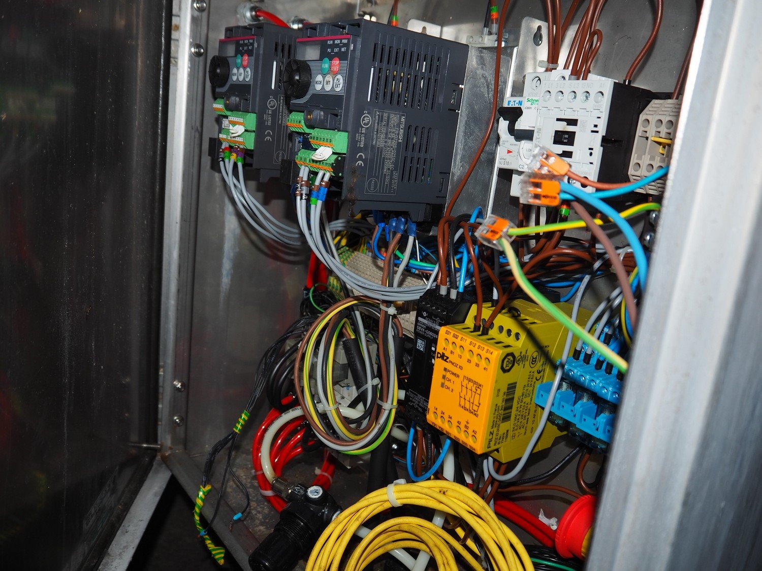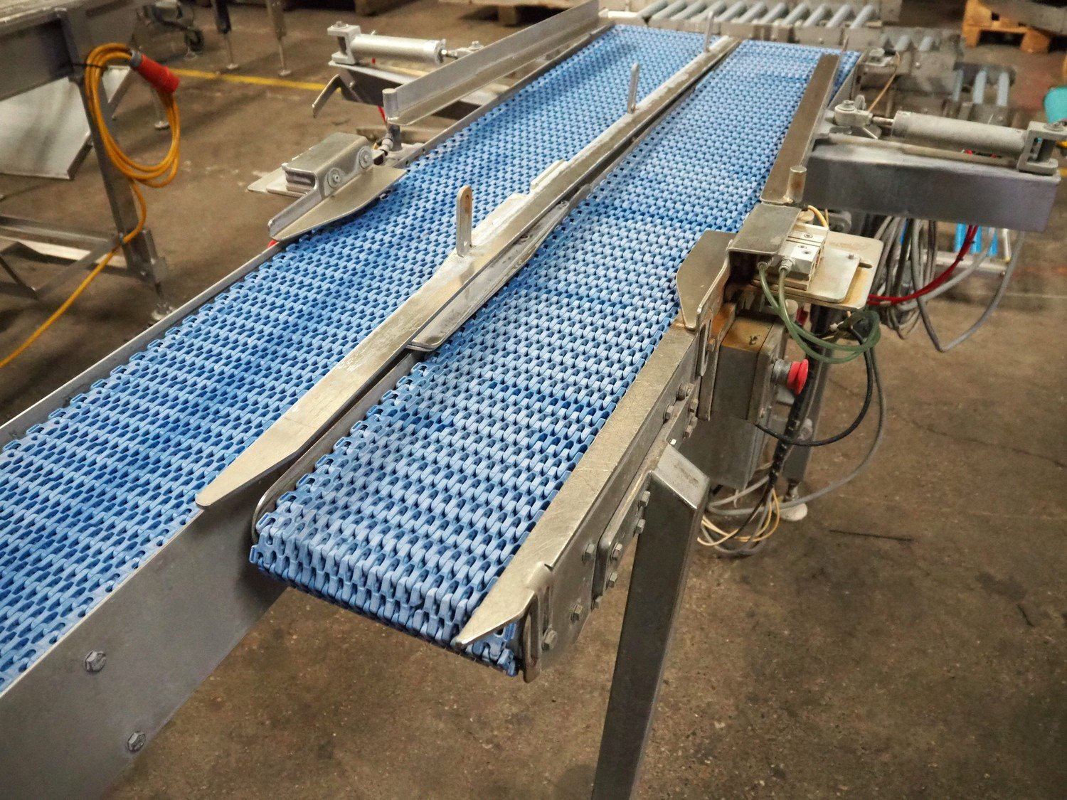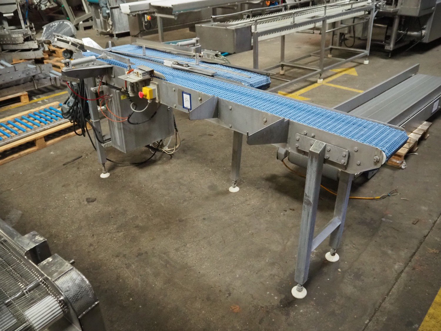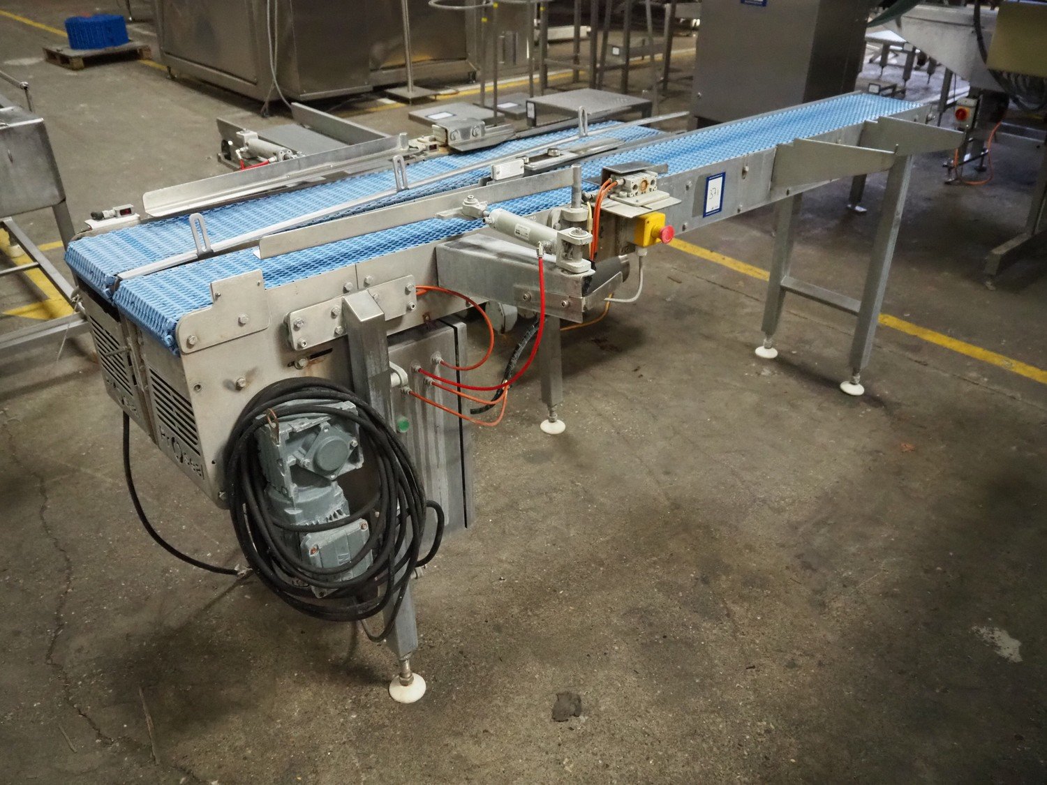 Proseal double transport belt, s/s frame, plastic mesh belt, belt width: (2x) 230 mm, belt length: 2450 mm / 1550 mm, total dimensions: 2500 mm x 1200 mm x 1070 mm.
