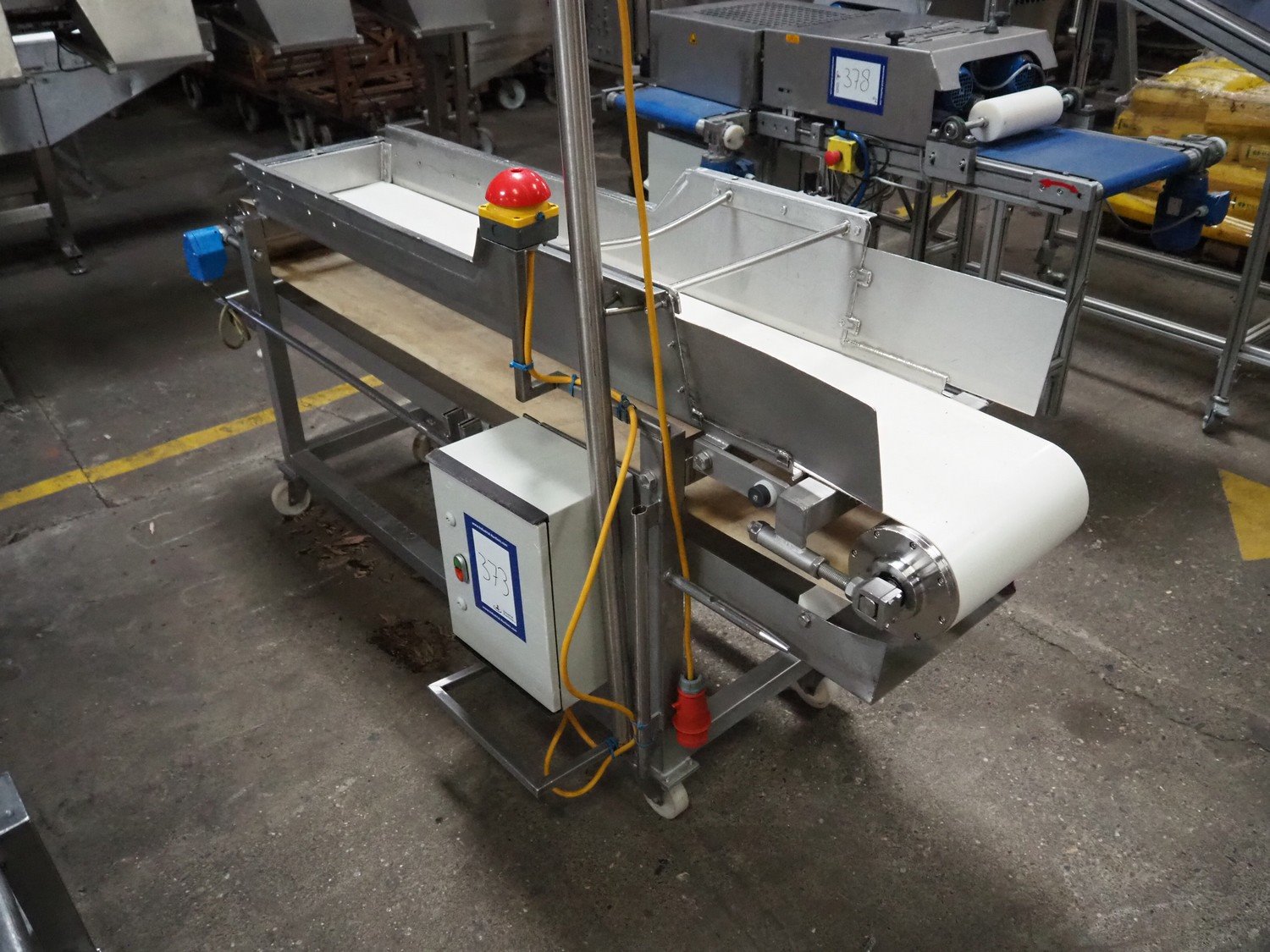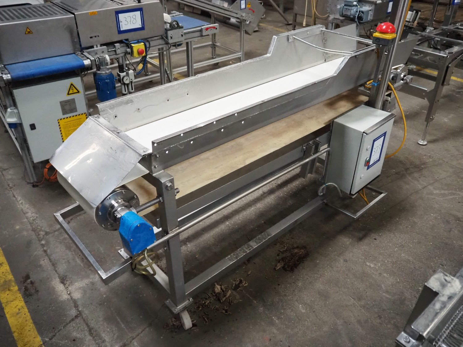 Mobile transport belt, plastic belt, belt width: 325 mm, total dimensions: 2300 mm x 700 mm x 2000 mm.