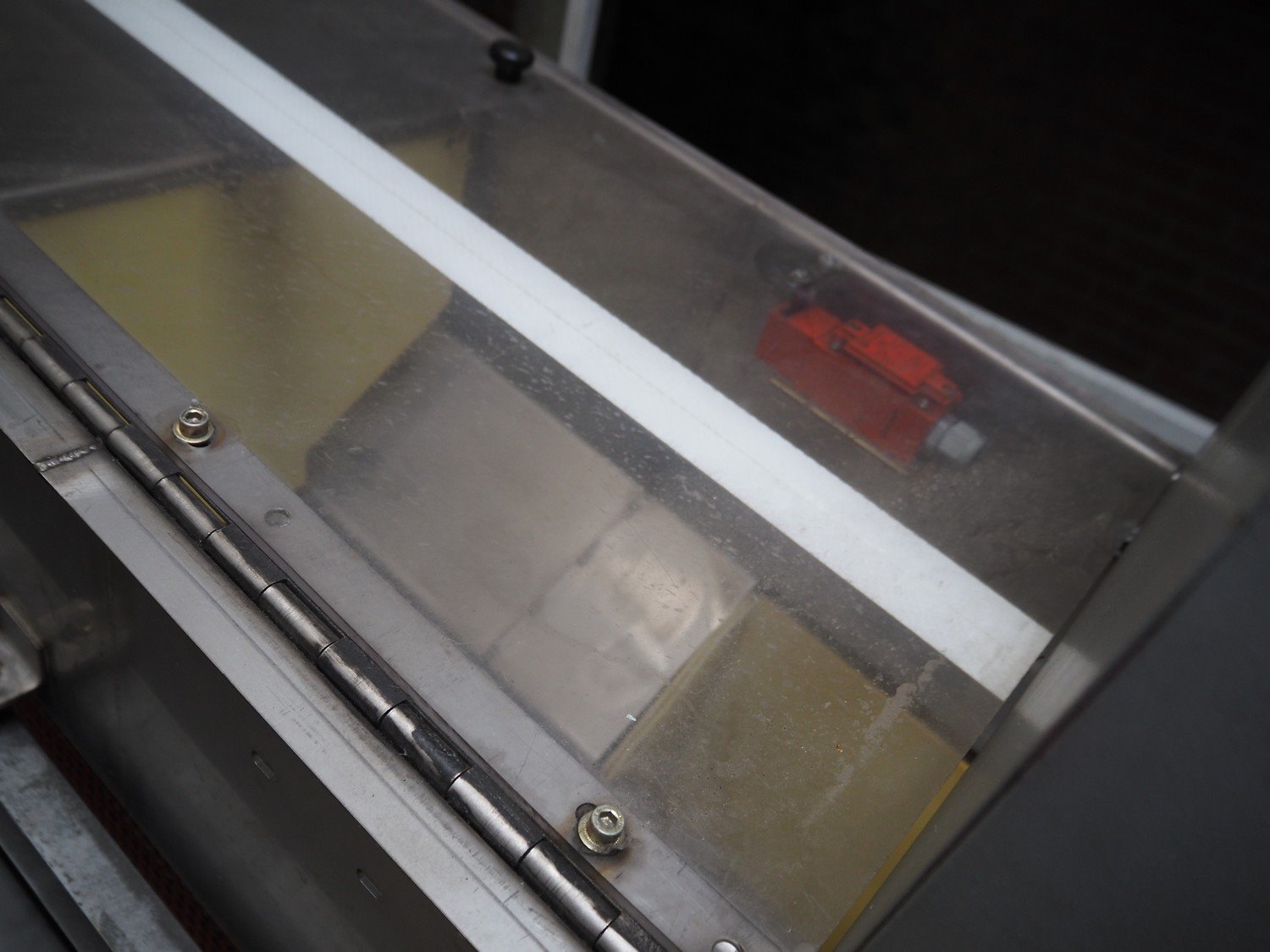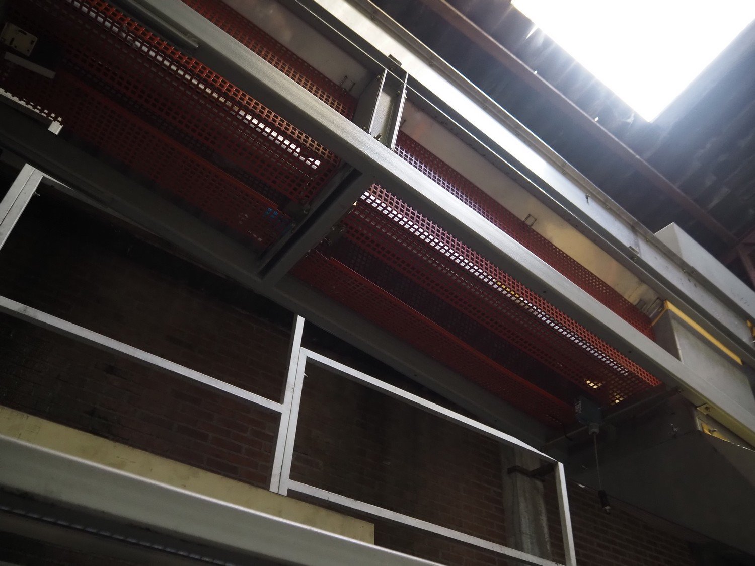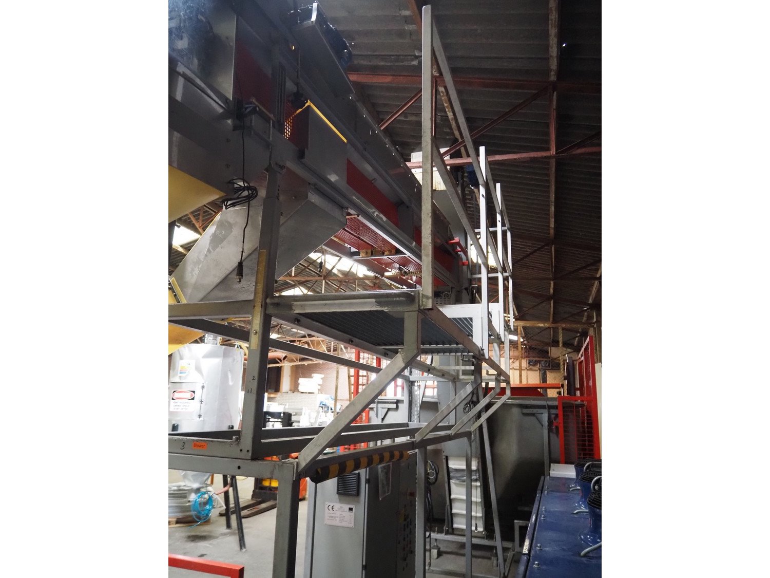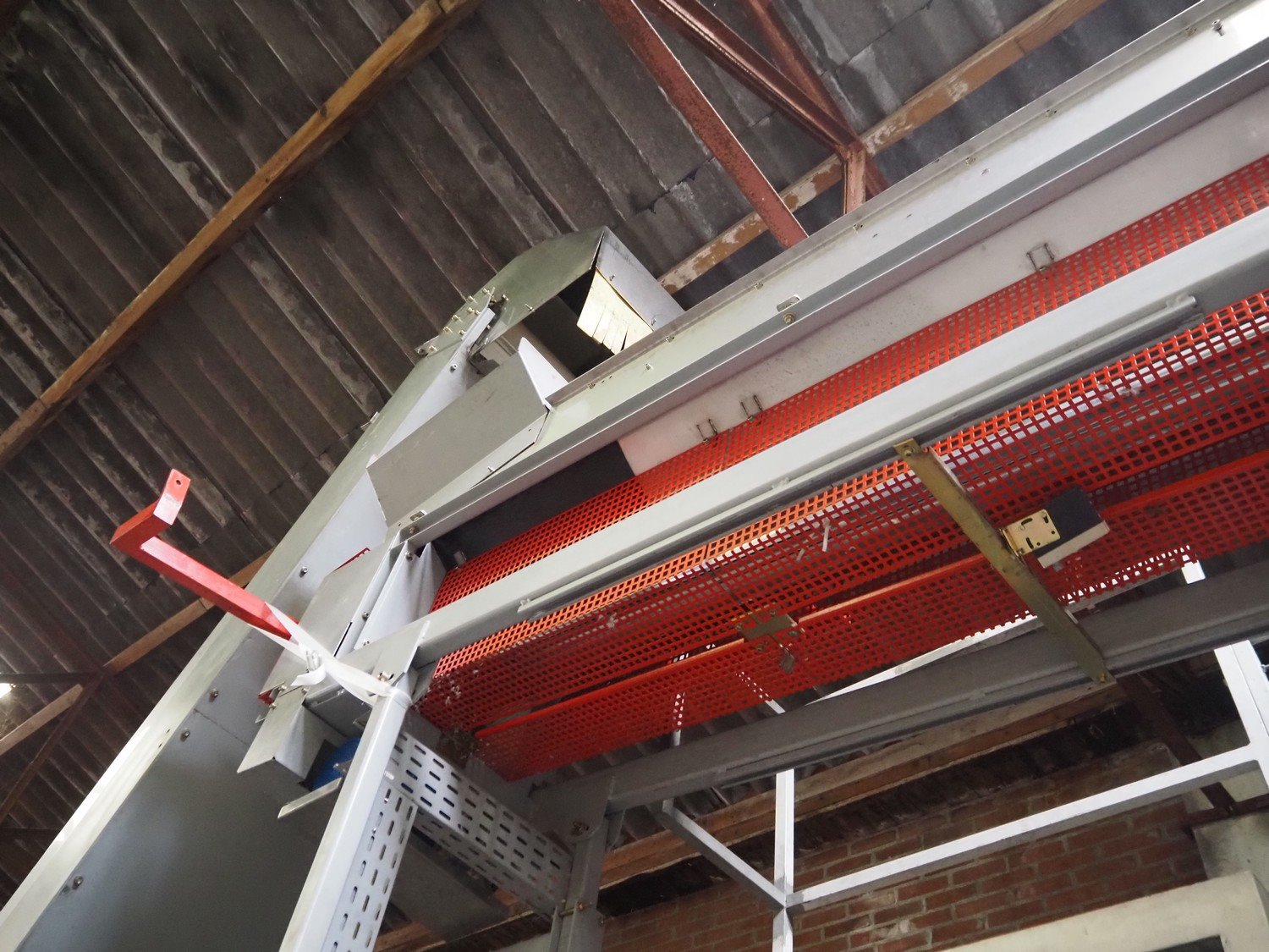 Sidel sorting conveyor, type: Distributeur De Preformes A3 Chassis + Coffret, machine number: DBGM 5279, year of construction: 2001, 400 V, 50/60 Hz, 5 A, 1.25 kW, 200 kg, infeed height: 3800 mm, outfeed height: 2800 mm, total dimensions: 4350 mm x 1800 mm x 3800 mm. Including 2 steel protection frames.