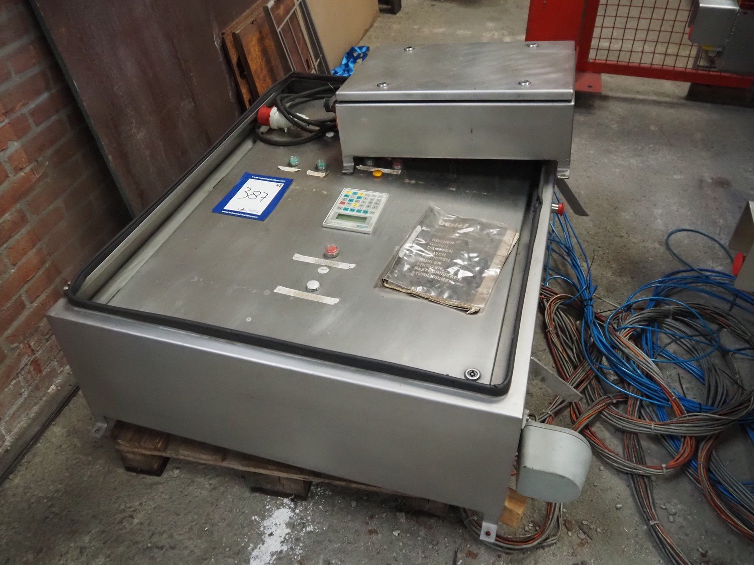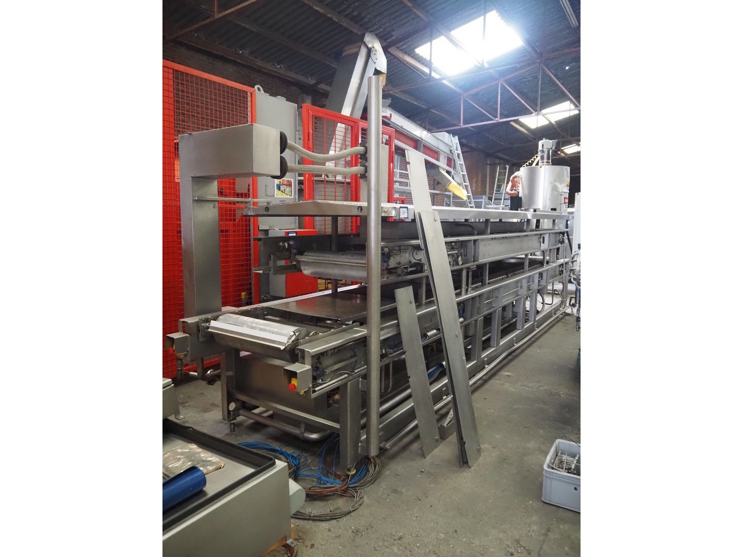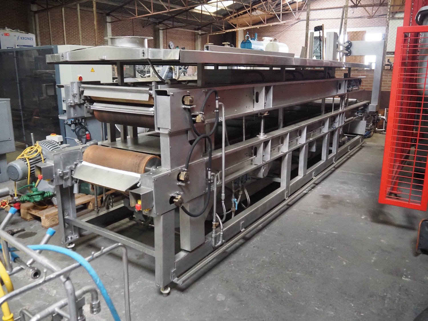Berief Teflon belt grill, belt width: 650 mm, total dimensions: 6750 mm x 1700 mm x 2300 mm, switch cabinet, dimensions: 1200 mm x 950 mm x 320 mm. Missing Teflon belt.