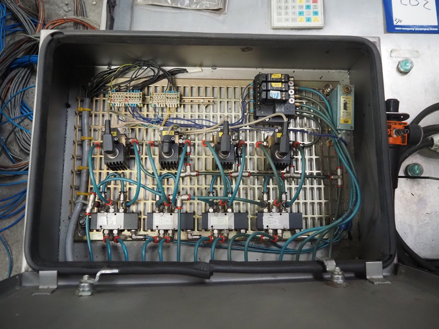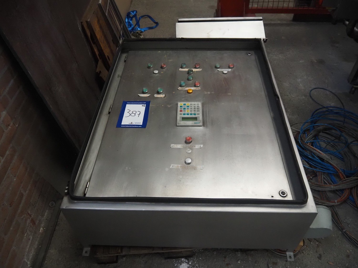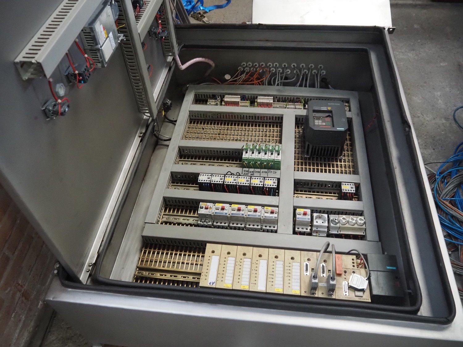 Berief Teflon belt grill, belt width: 650 mm, total dimensions: 6750 mm x 1700 mm x 2300 mm, switch cabinet, dimensions: 1200 mm x 950 mm x 320 mm. Missing Teflon belt.