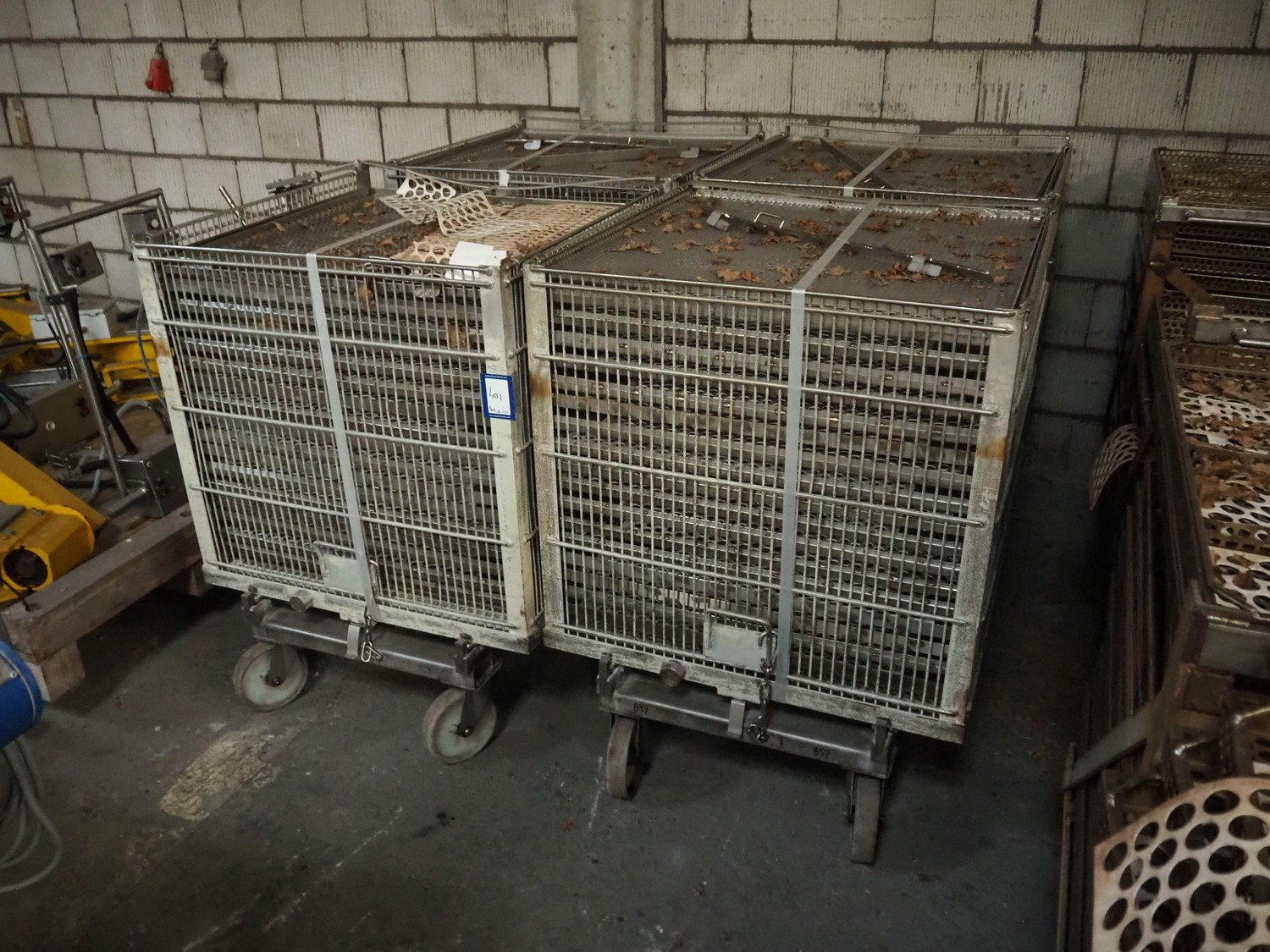 4 autoclave trolleys, plate dimensions: 915 mm x 915 mm x 20 mm, total dimensions: (4x) 1000 mm x 1060 mm x 1300 mm.