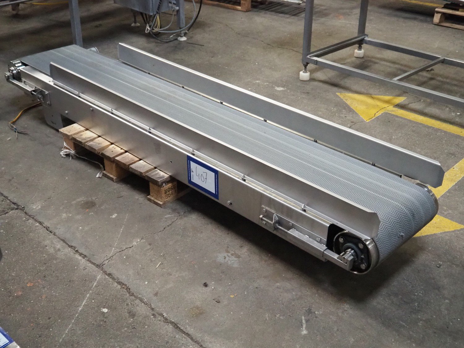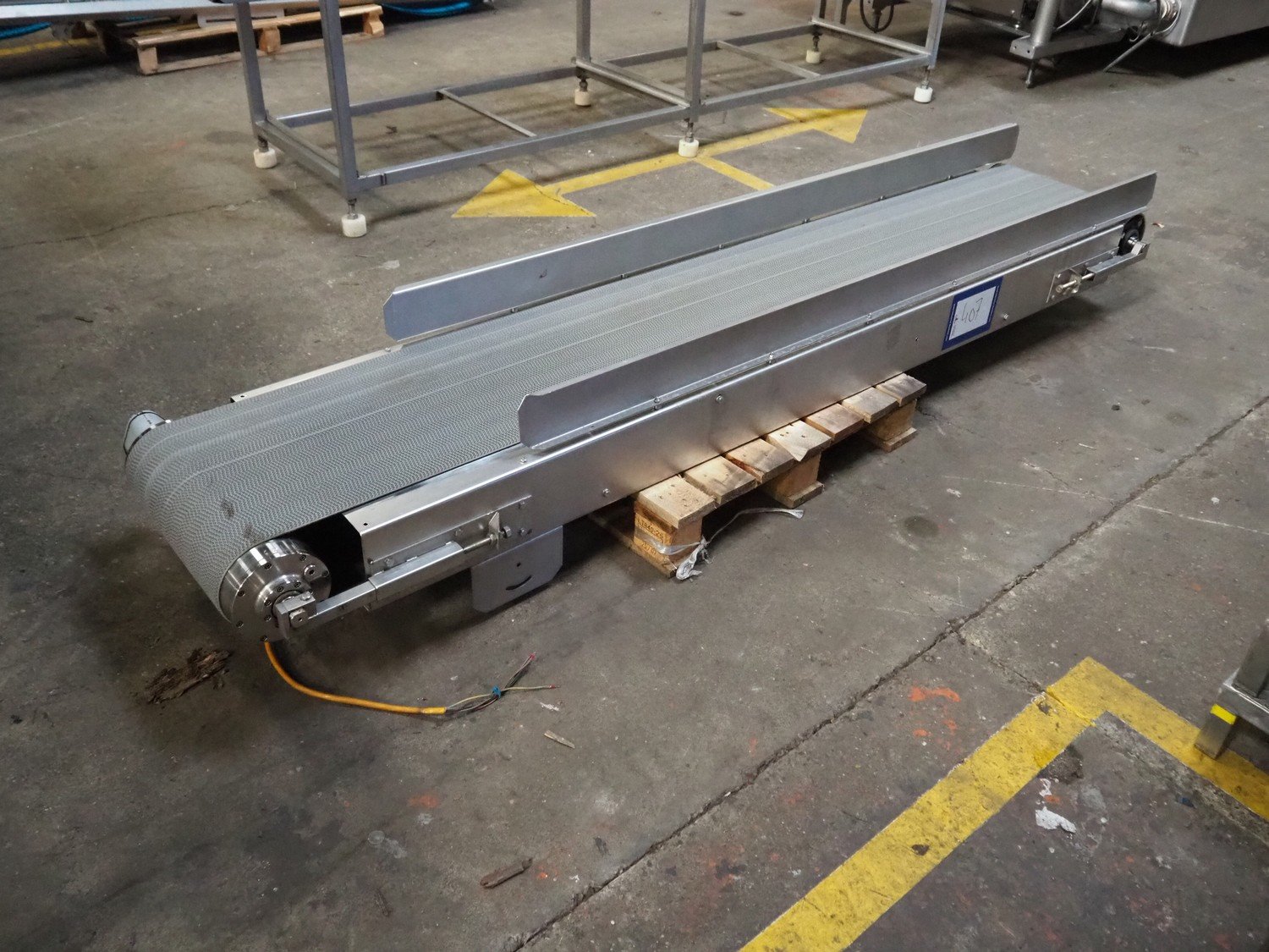 Transport belt, plastic belt, belt width: 400 mm, total dimensions: 2650 mm x 700 mm x 300 mm.