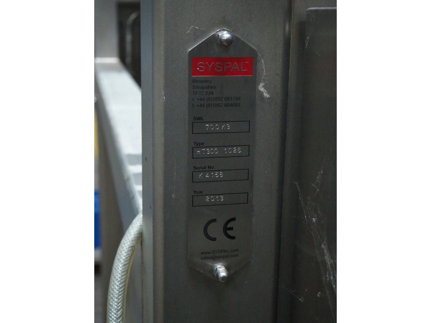 Syspal tilting device for pallet boxes, type: HT300 1026, serial number: K4158, year of construction: 2013, capacity: 700 kg, dimensions: 2620 mm x 2400 mm x 2250 mm.