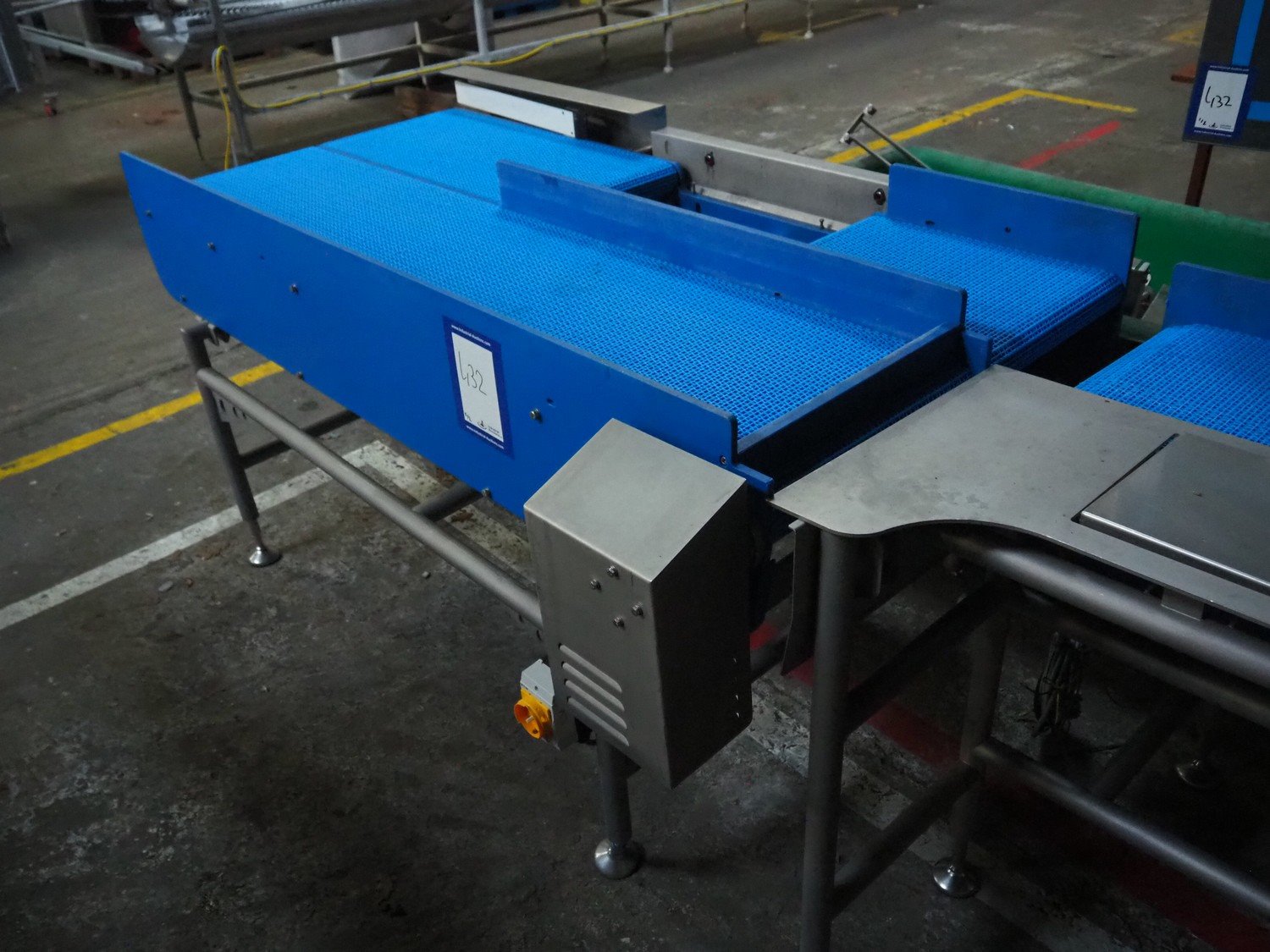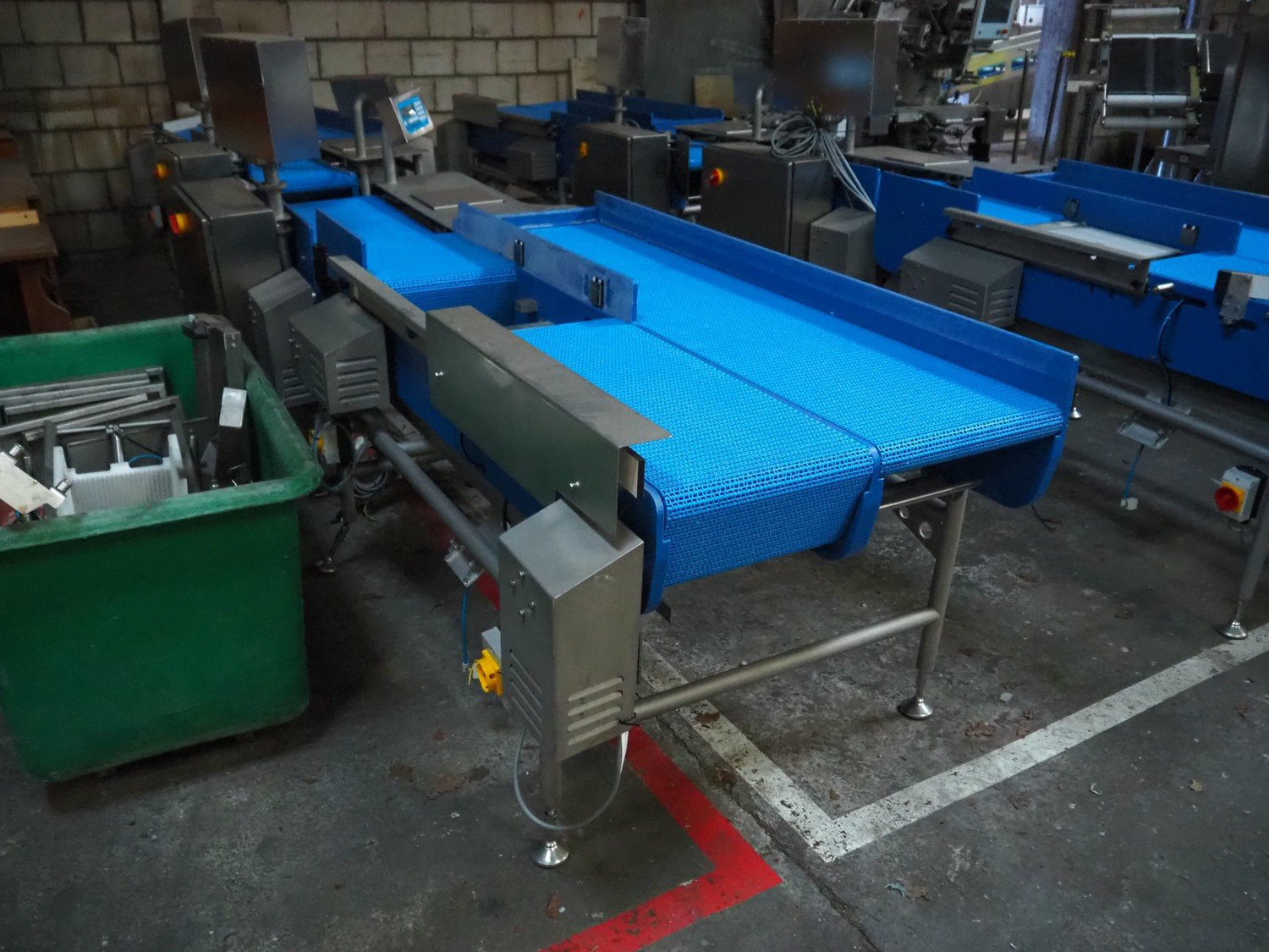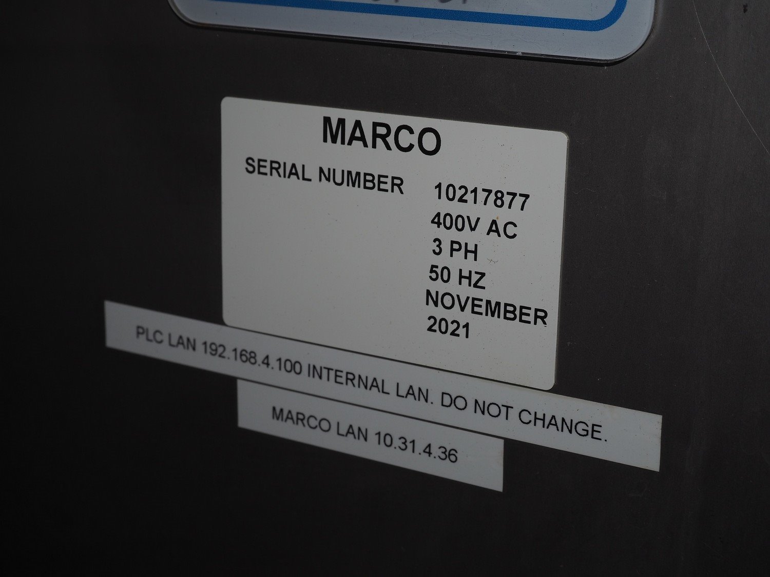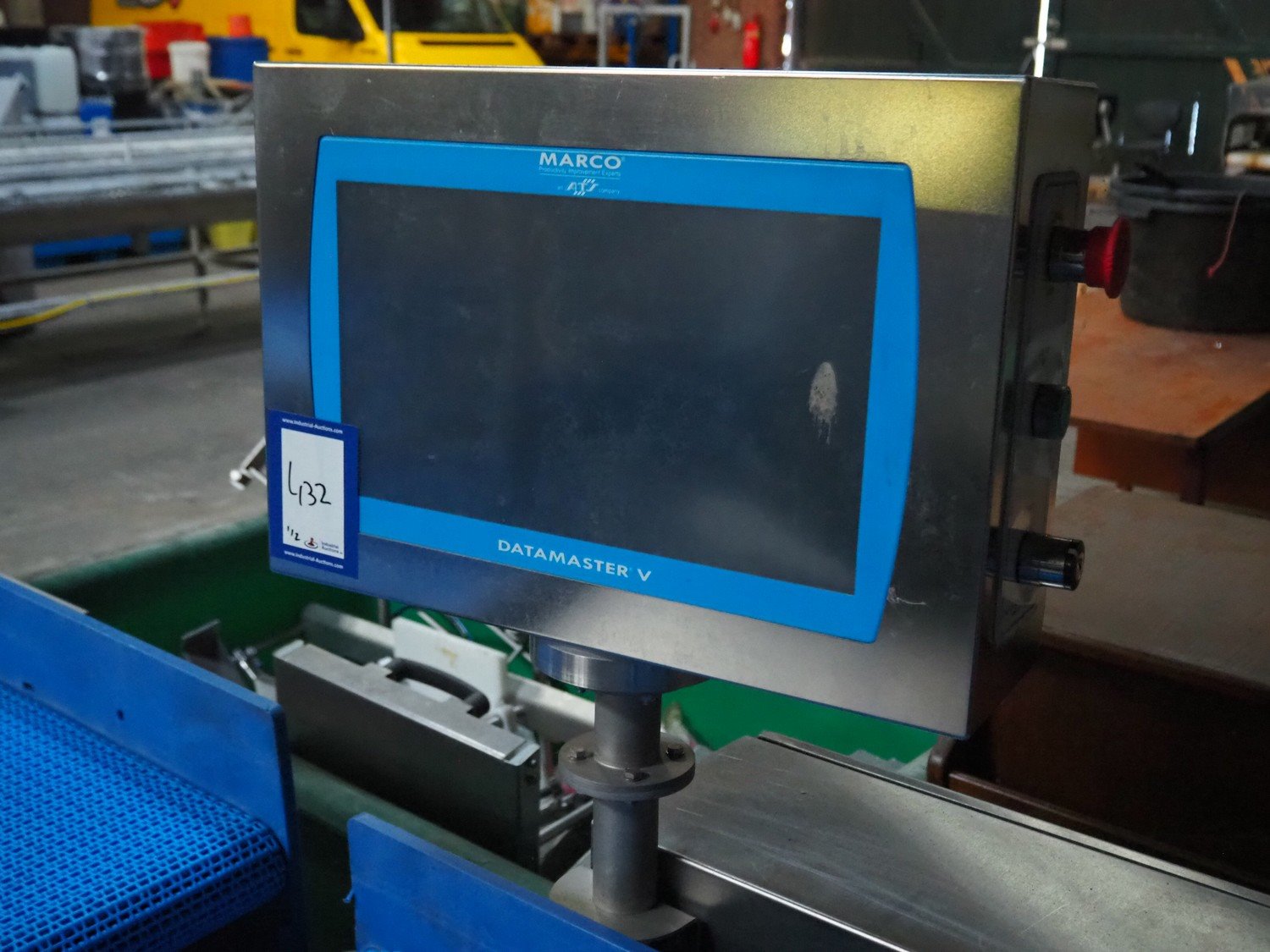 Marco checkweigher and grader, model: D135812, serial number: 10217877, year of construction: 2021, 400 V, 3 Ph, 50 Hz, plastic mesh belt, belt width: 405 mm and 455 mm, total dimensions: 2000 mm x 1200 mm x 1050 mm and 900 mm x 1200 mm x 1600 mm. Incomplete.