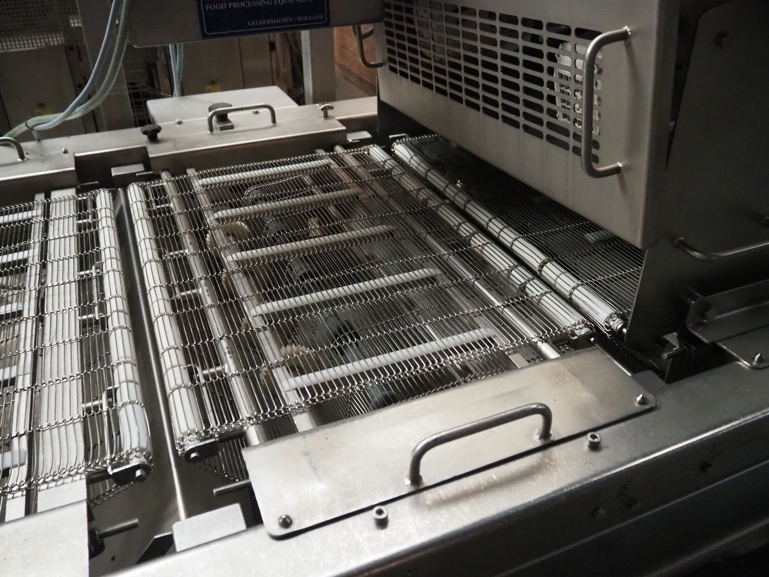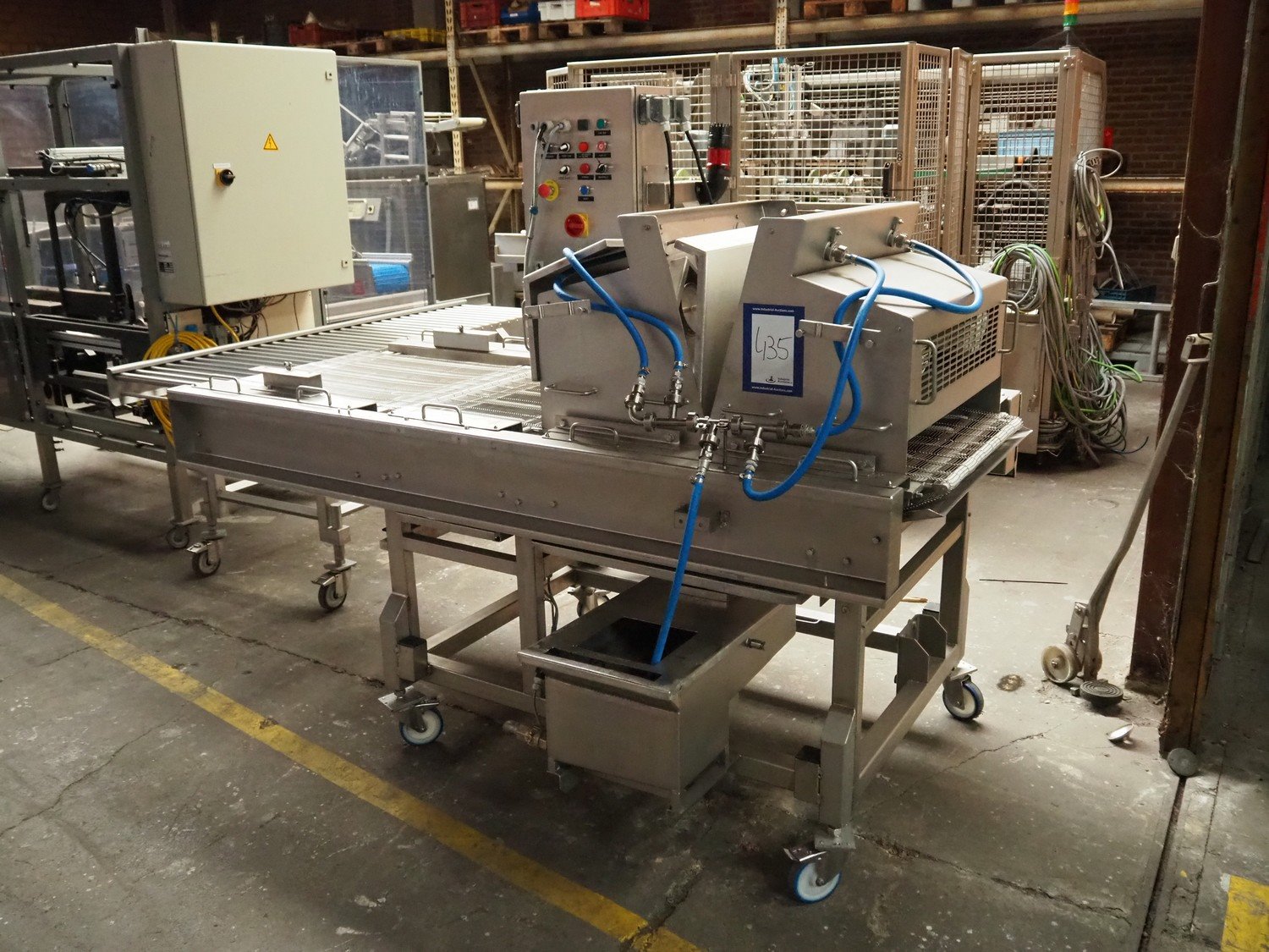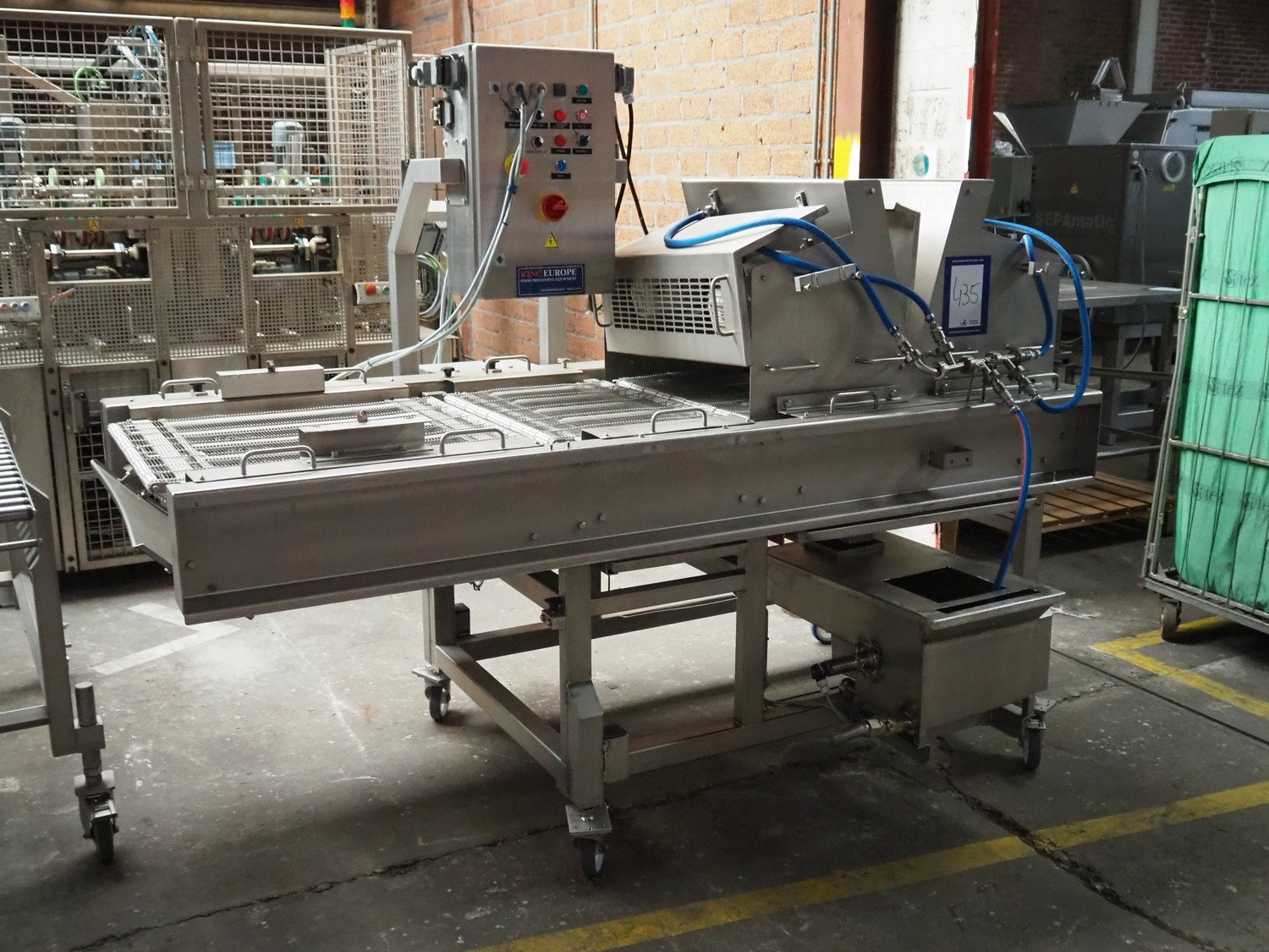 Rinc Europe wet coating machine, s/s mesh belt, belt width: 650 mm, total dimensions: 2300 mm x 1500 mm x 1800 mm.