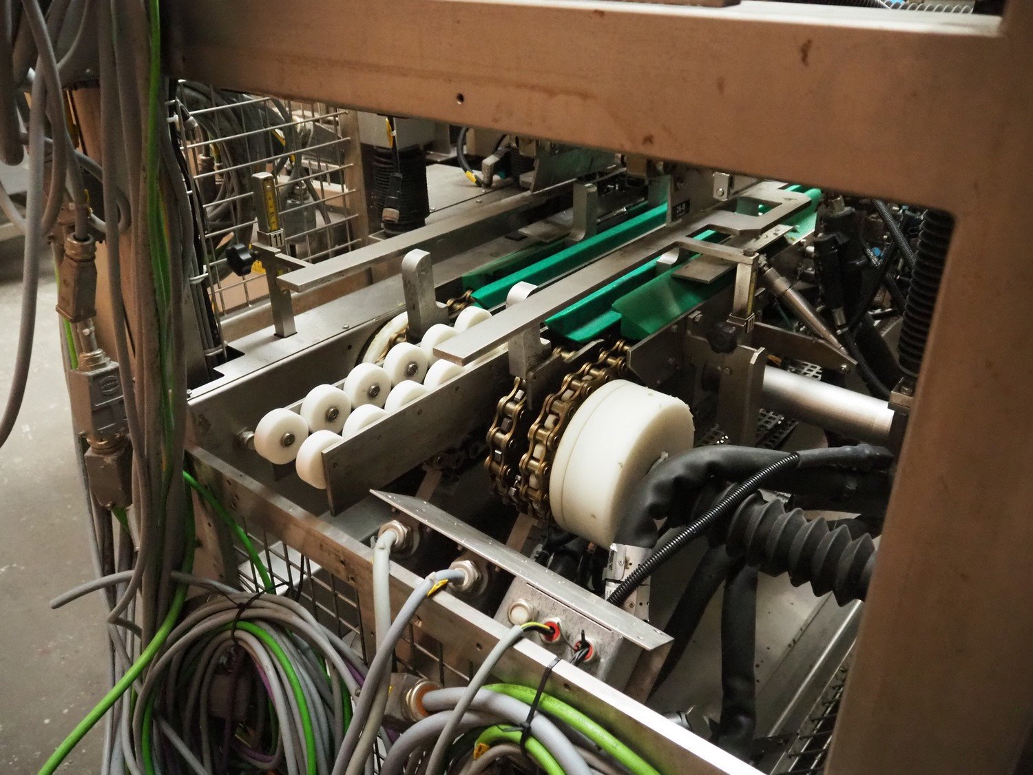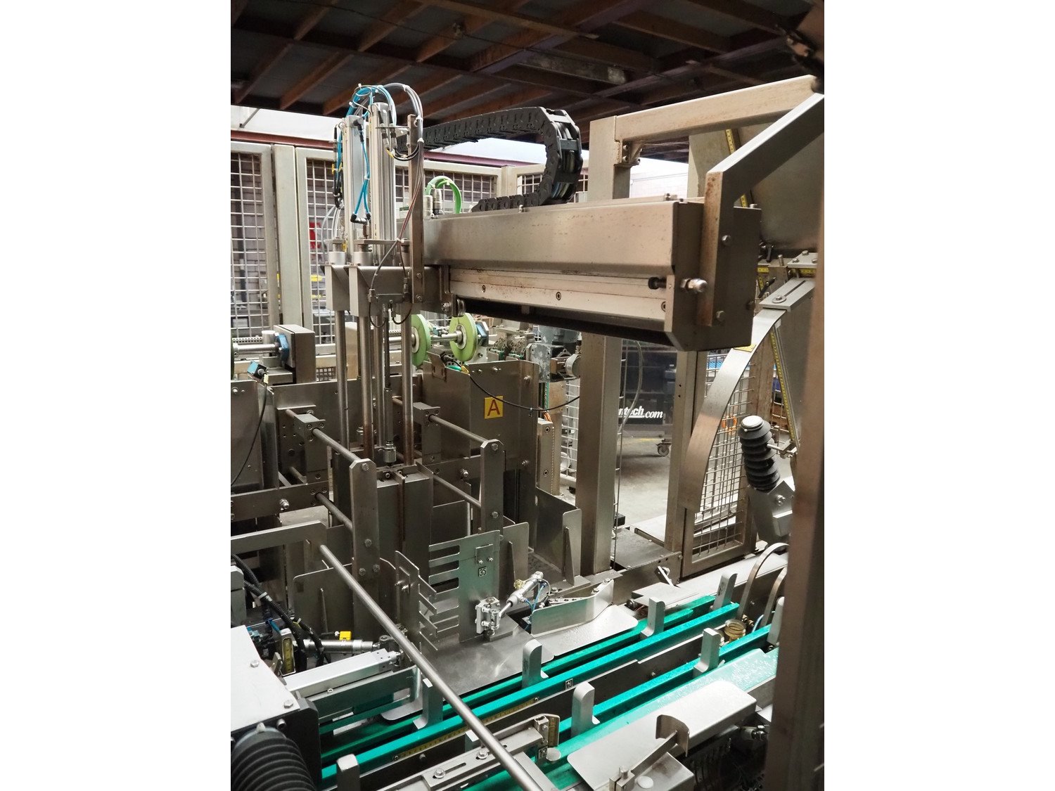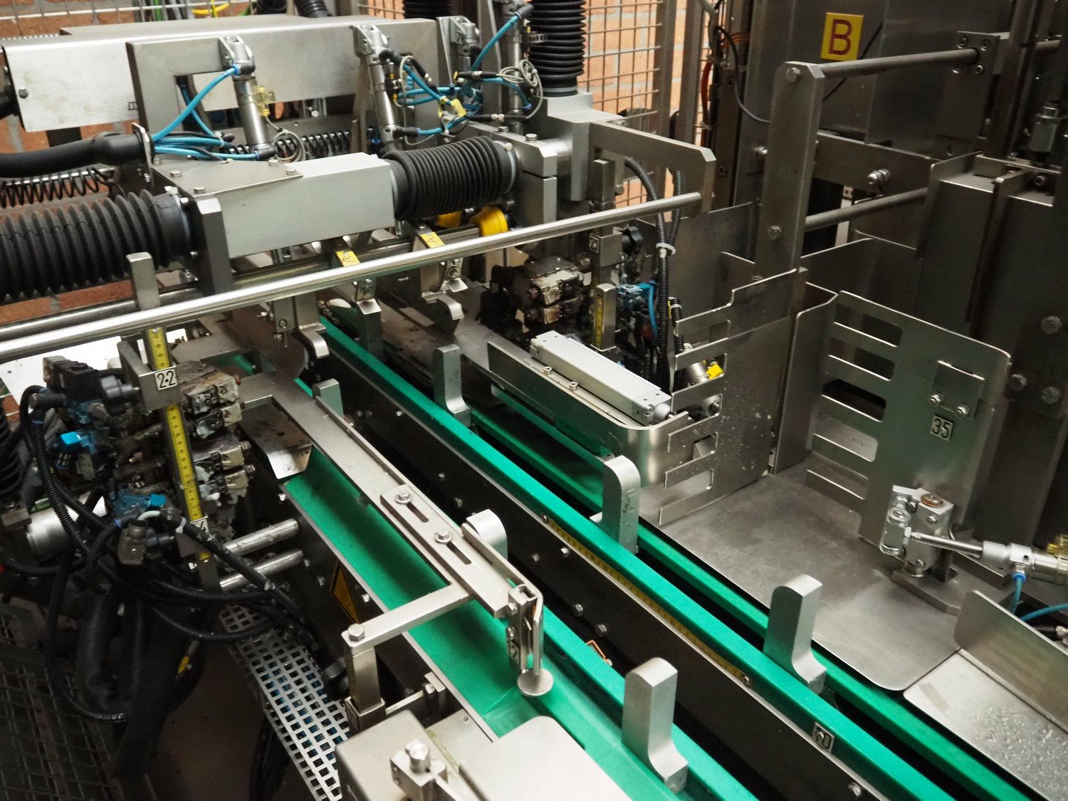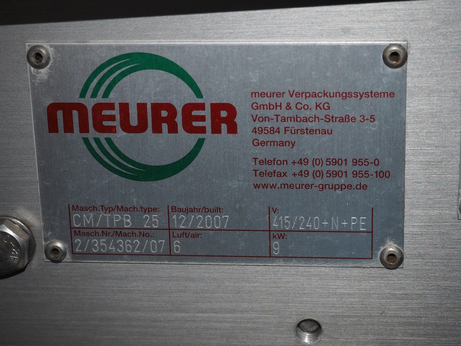 Meurer cartoner machine, type: CM/TPB 25, machine number: 27354362/07, year of construction: 12/2007, 415/240 V, 1 Ph, 9 kW, working width: 290 mm, total dimensions: 3600 mm x 2080 mm x 2080 mm.
