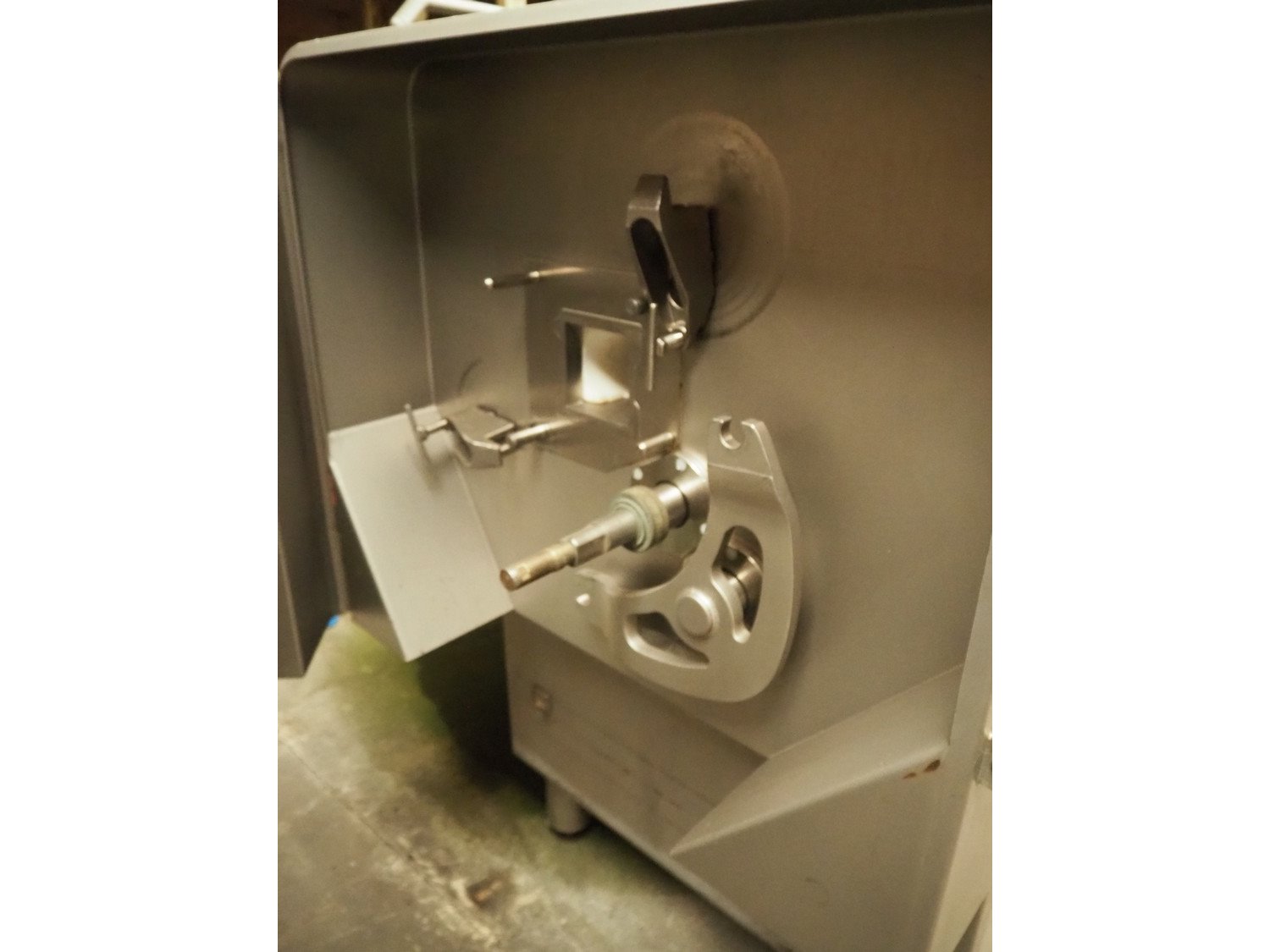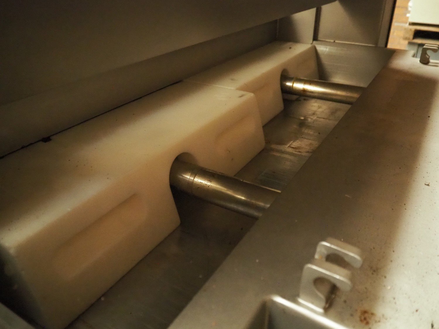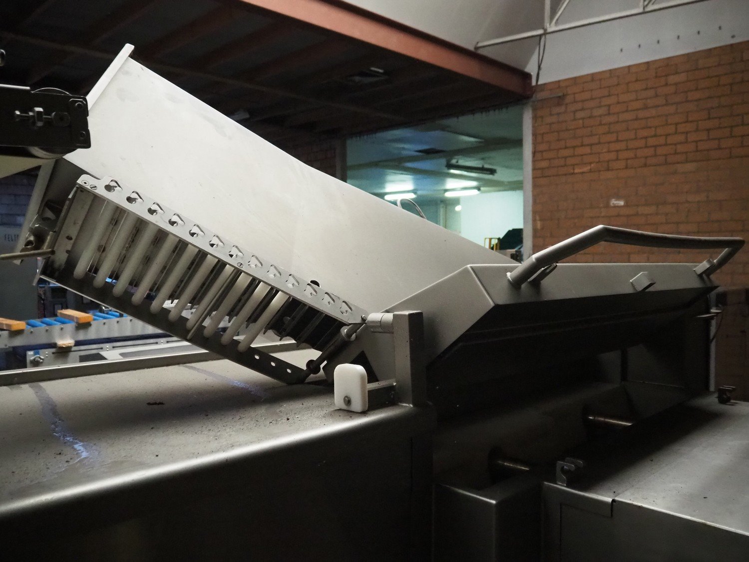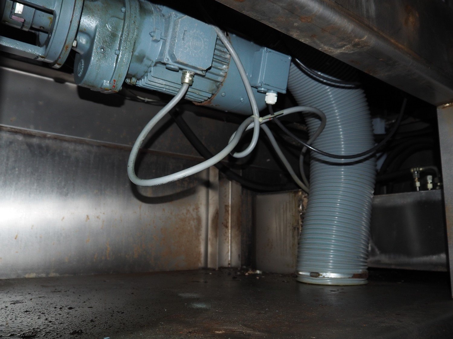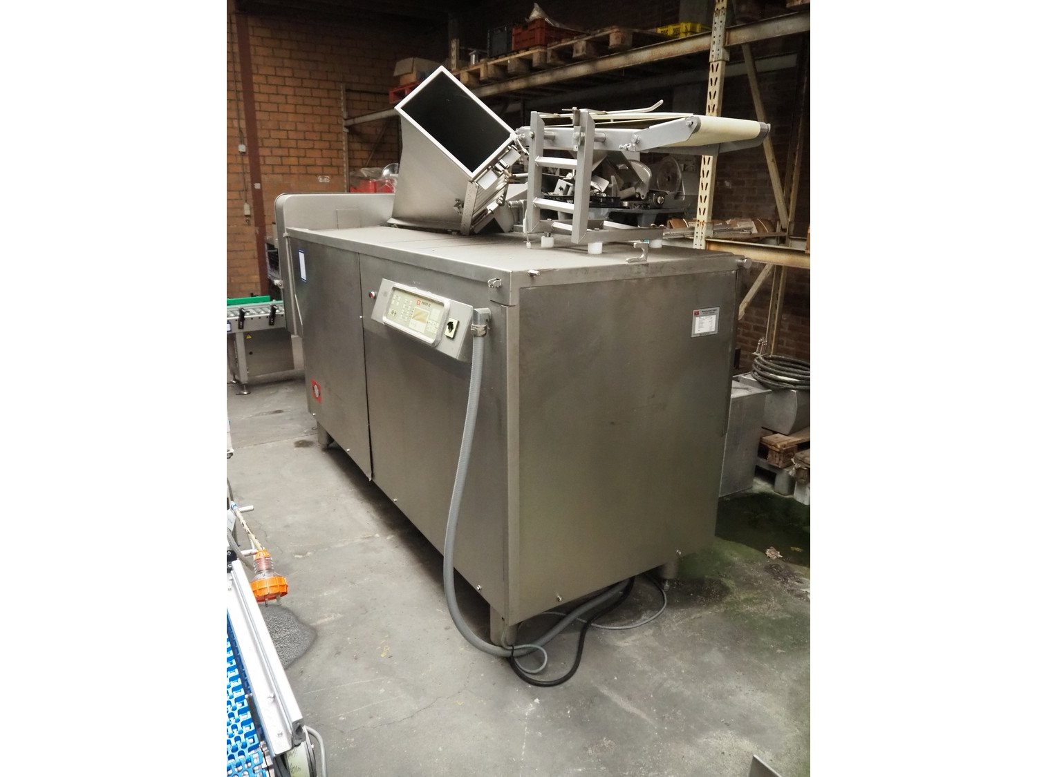 Treif dicer, model: Phoenix 120-CE SP V, number: 3050S7.130295.101489, year of construction: 2006, 400 V, 3 Ph, 50 Hz, 25 A, 9 kW, weight: 2150 KG, dimensions chamber: 120 mm x 120 mm, plastic belt, belt width: 270 mm, total dimensions: 3050 mm x 1500 mm x 2200 mm. Incomplete.