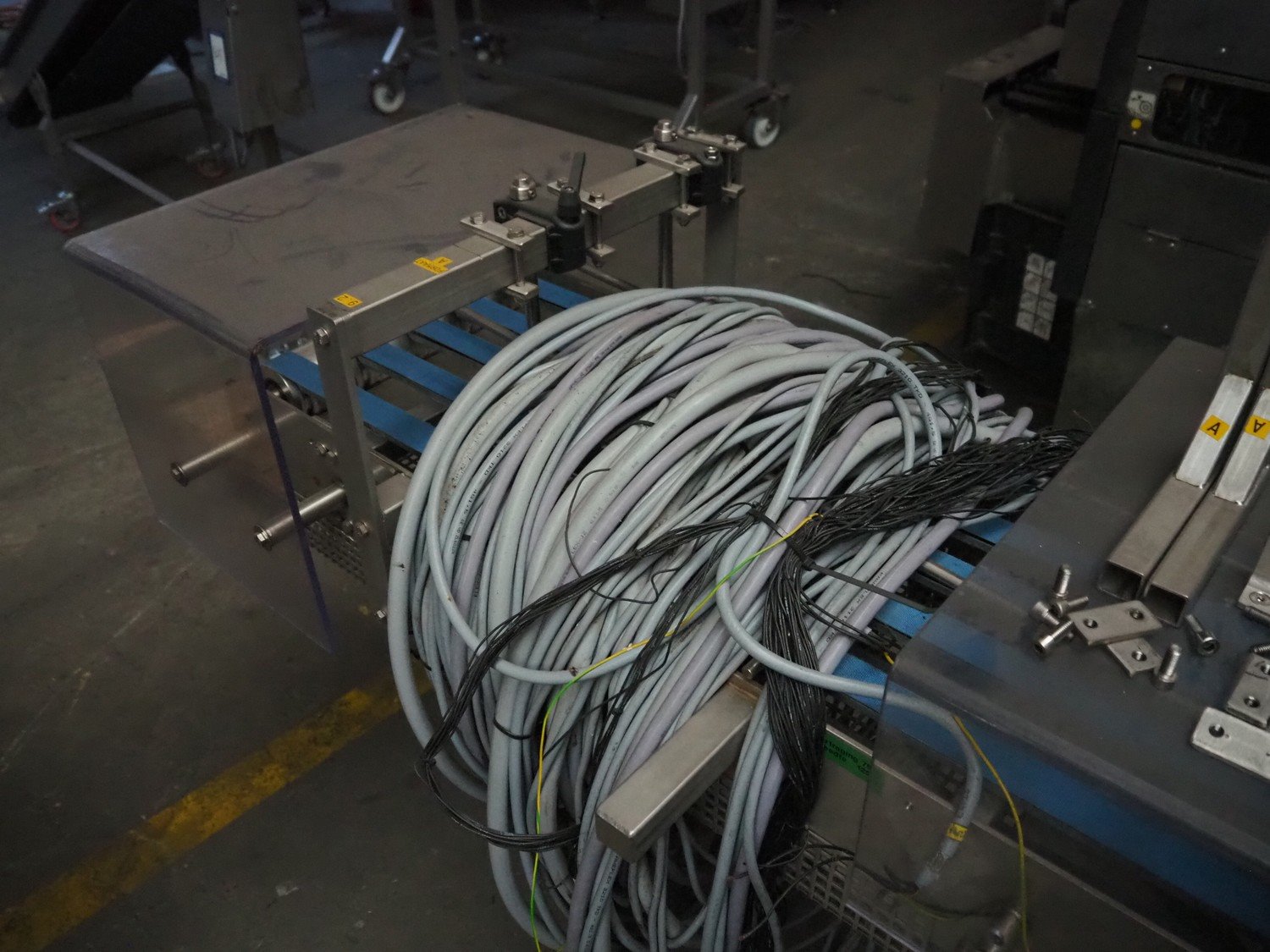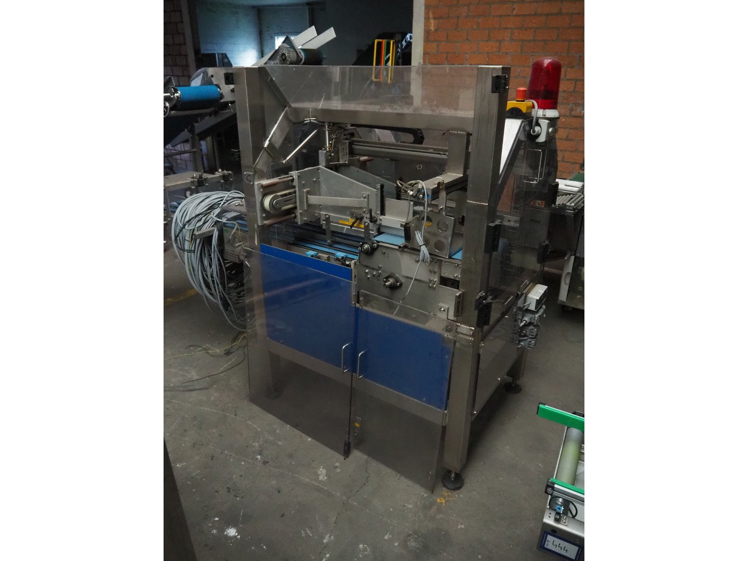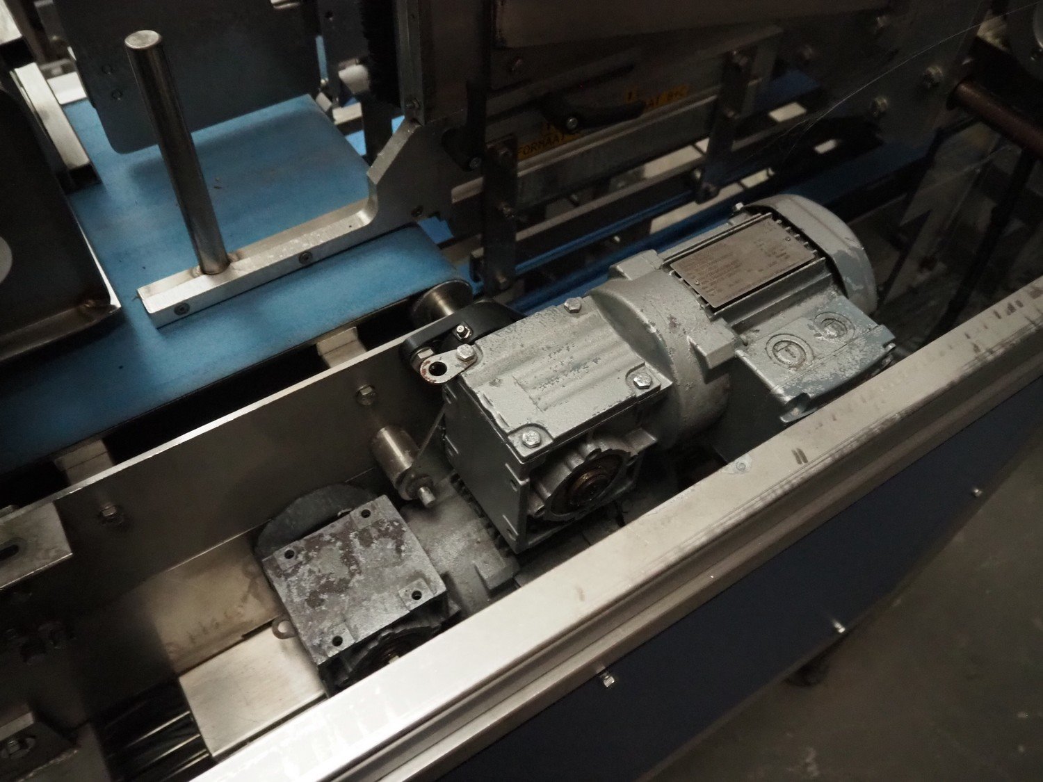 Case packer, plastic belts, belt widths: (4x) 35 mm and (1x) 350 mm, total dimensions: 2600 mm x 1100 mm x 1750 mm.