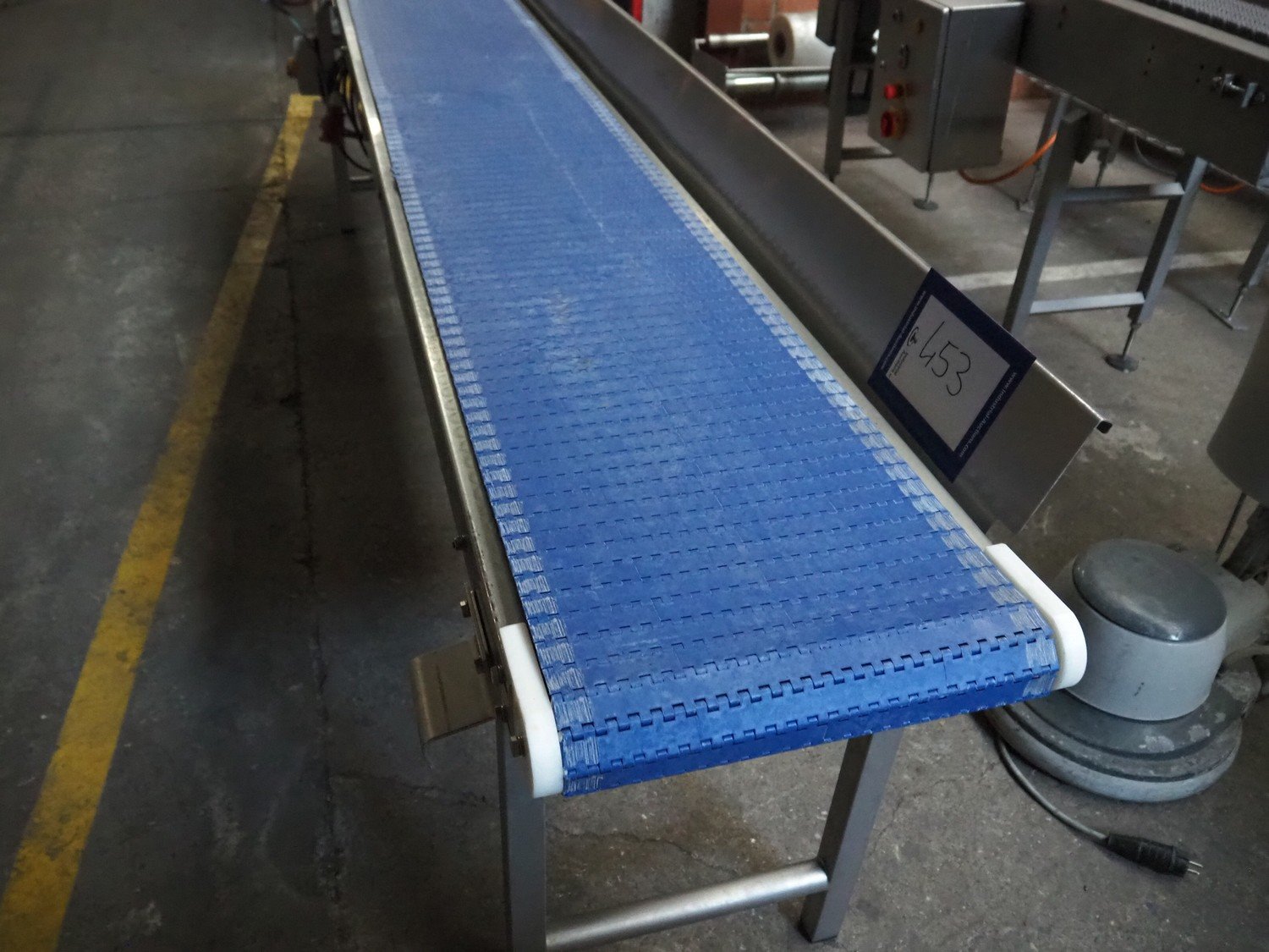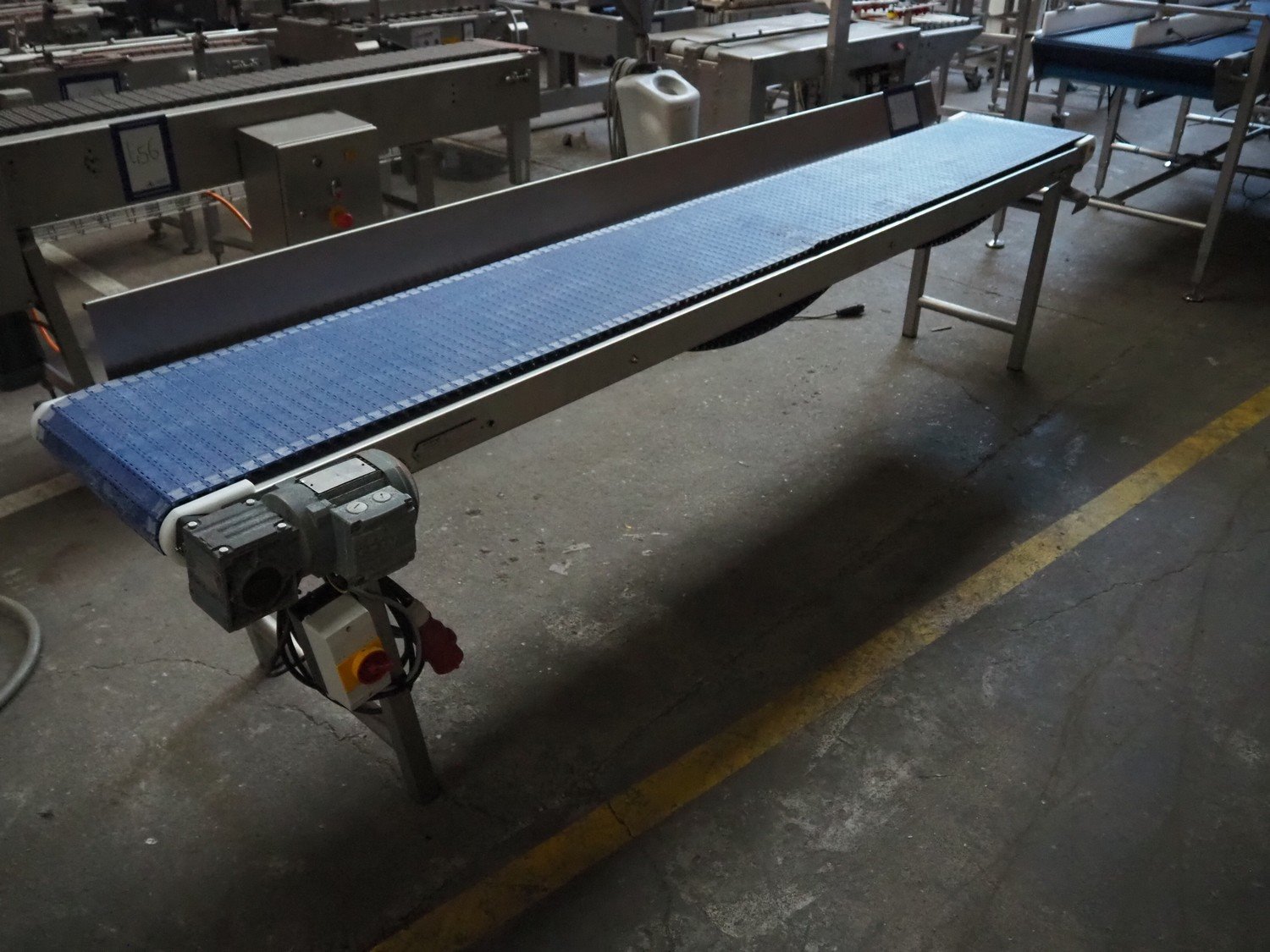 Hellings transport belt, s/s frame, plastic belt, belt width: 395 mm, total dimensions: 3000 mm x 700 mm x 845 mm.