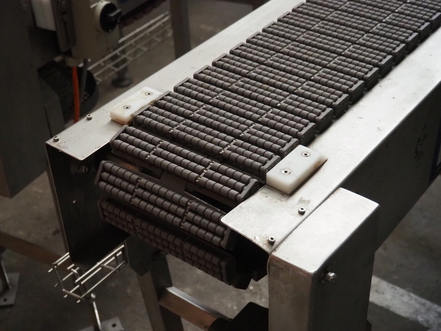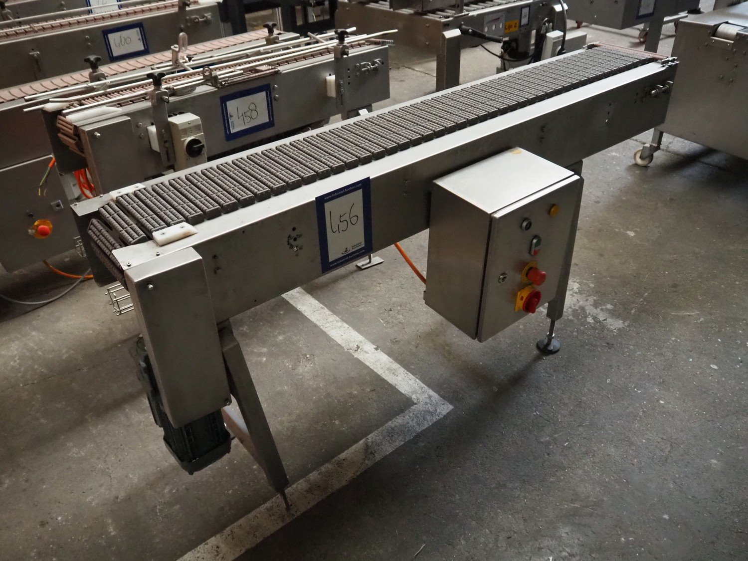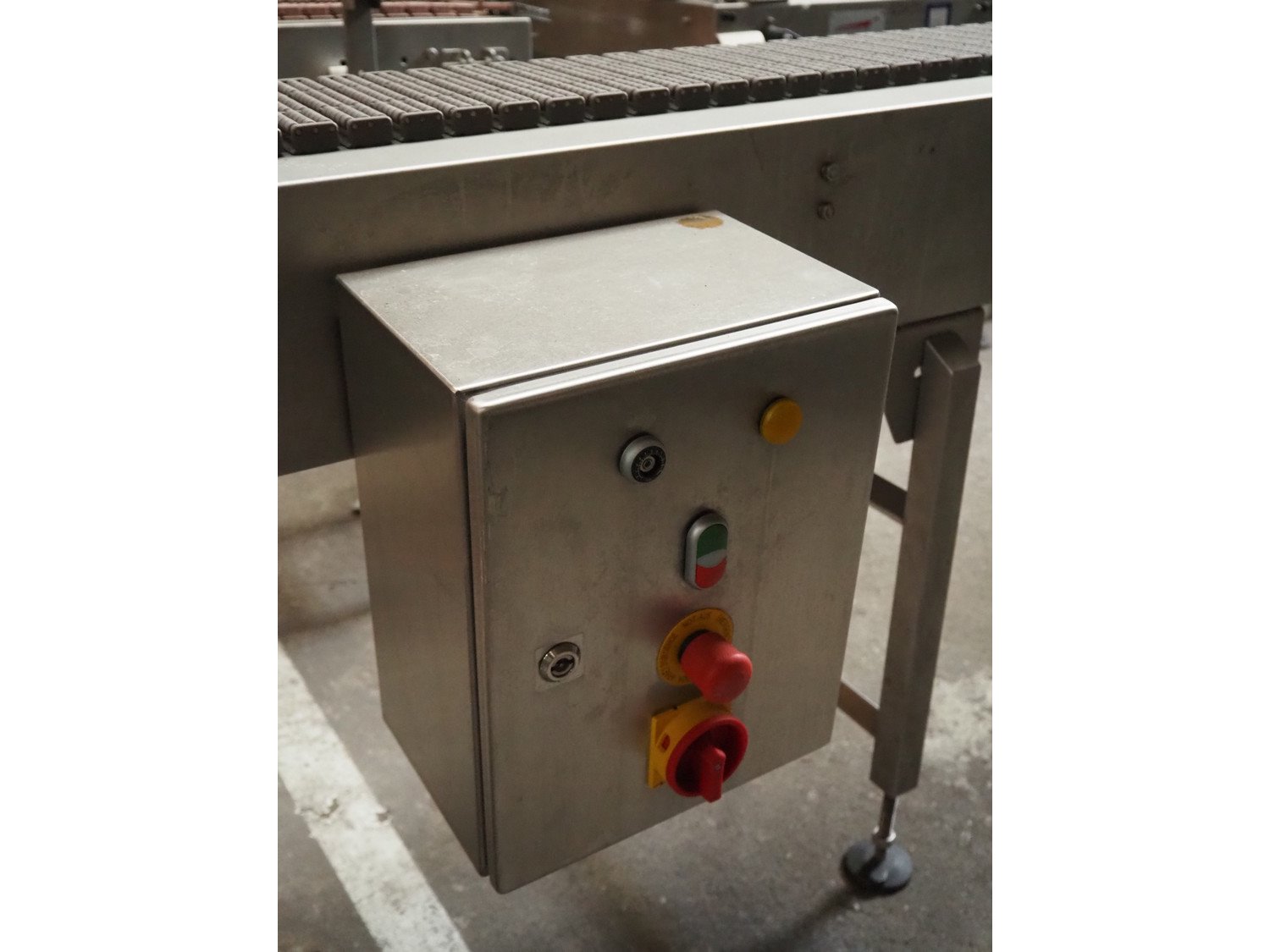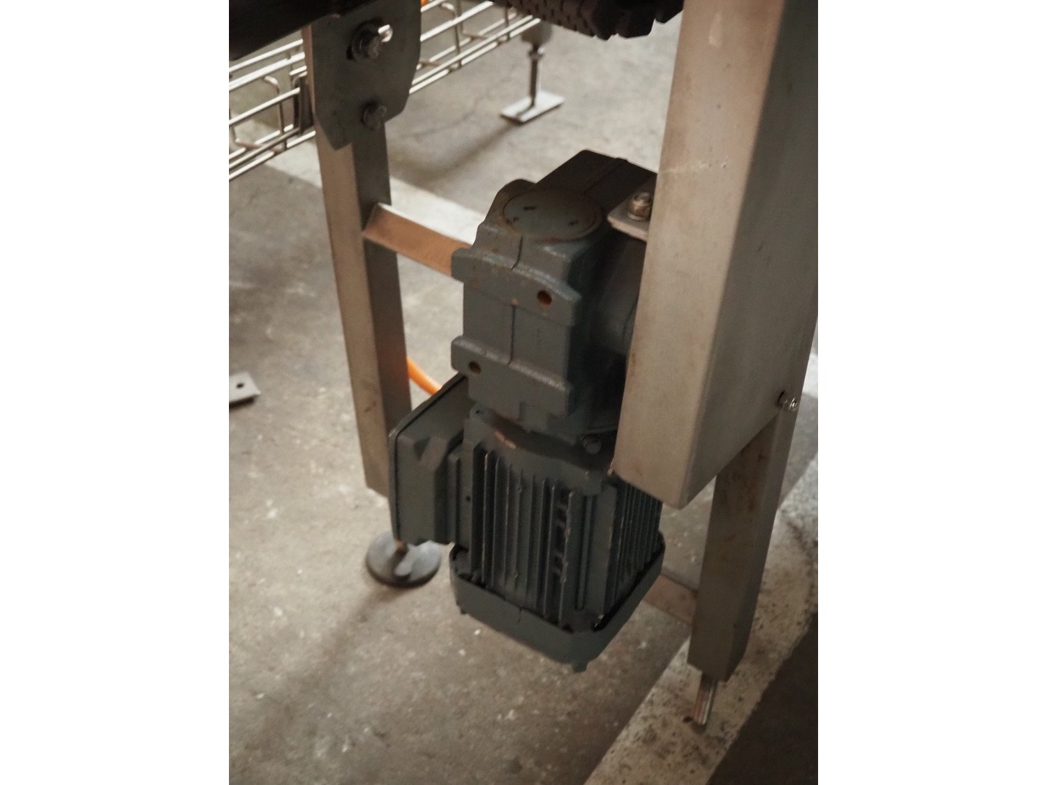 Kersting transport belt, type: Förderband, serial number: 19525, year of construction: 07-2009, 400 V, 0.37 kW, s/s frame, plastic roller belt, belt width: 190 mm, total dimensions: 1800 mm x 700 mm x 900 mm.